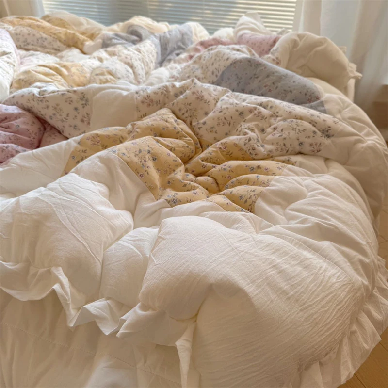Purpdrank 1Pc Korean Style Floral Pure Cotton Lightweight Thin Summer Quilt Blankets Soft Comfortable Air Condition Comforter