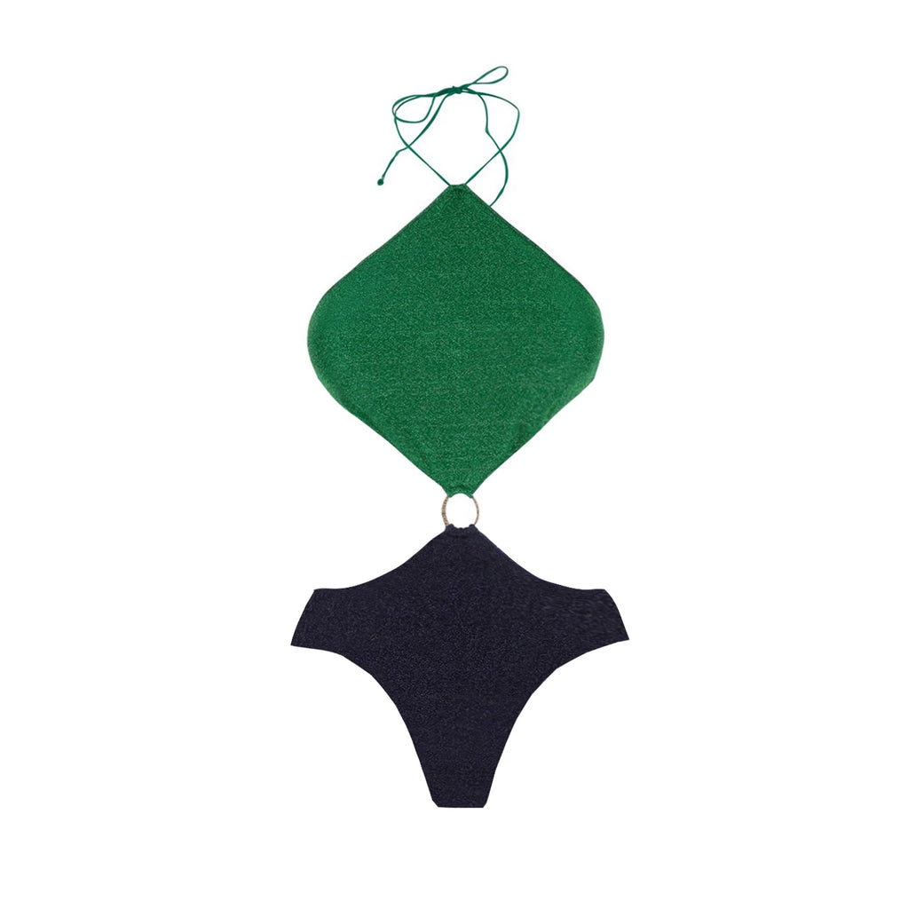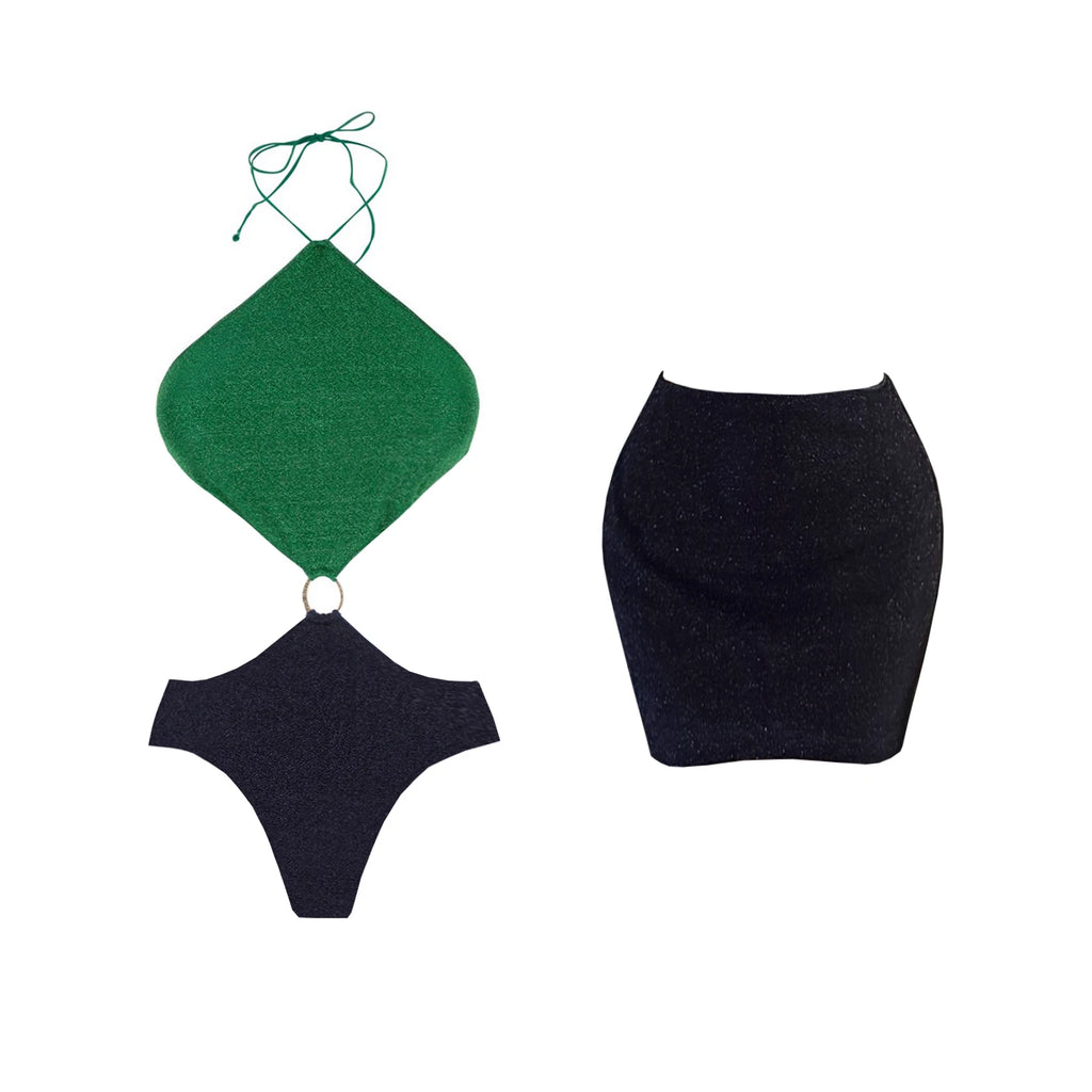 Purpdrank 2Pcs Shiny Swimsuit Women Sexy Swimwear With Mini Skirt Hollow Out Bikini Halter Bathingsuit Female Patchwork Bodysuit Beachwear