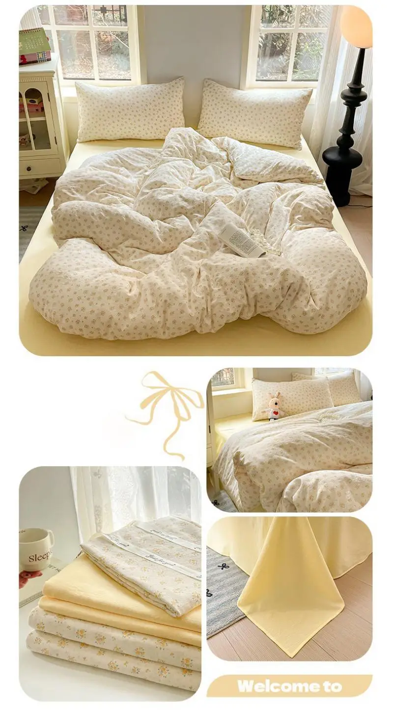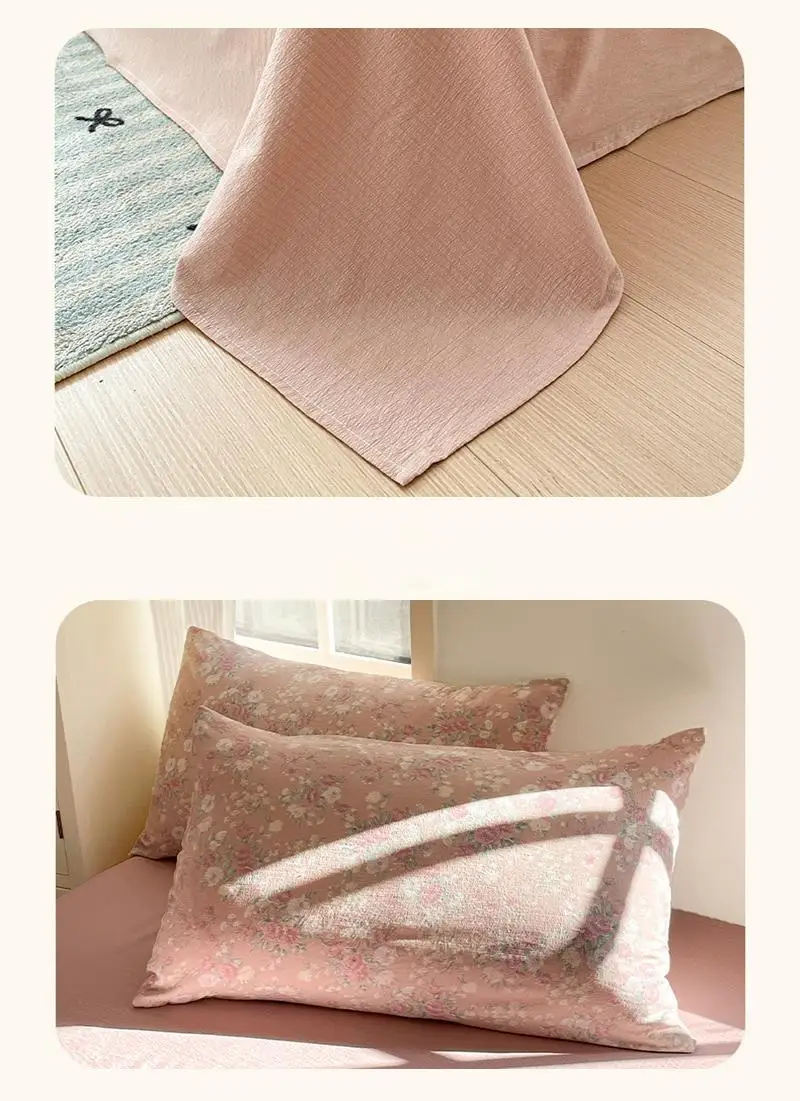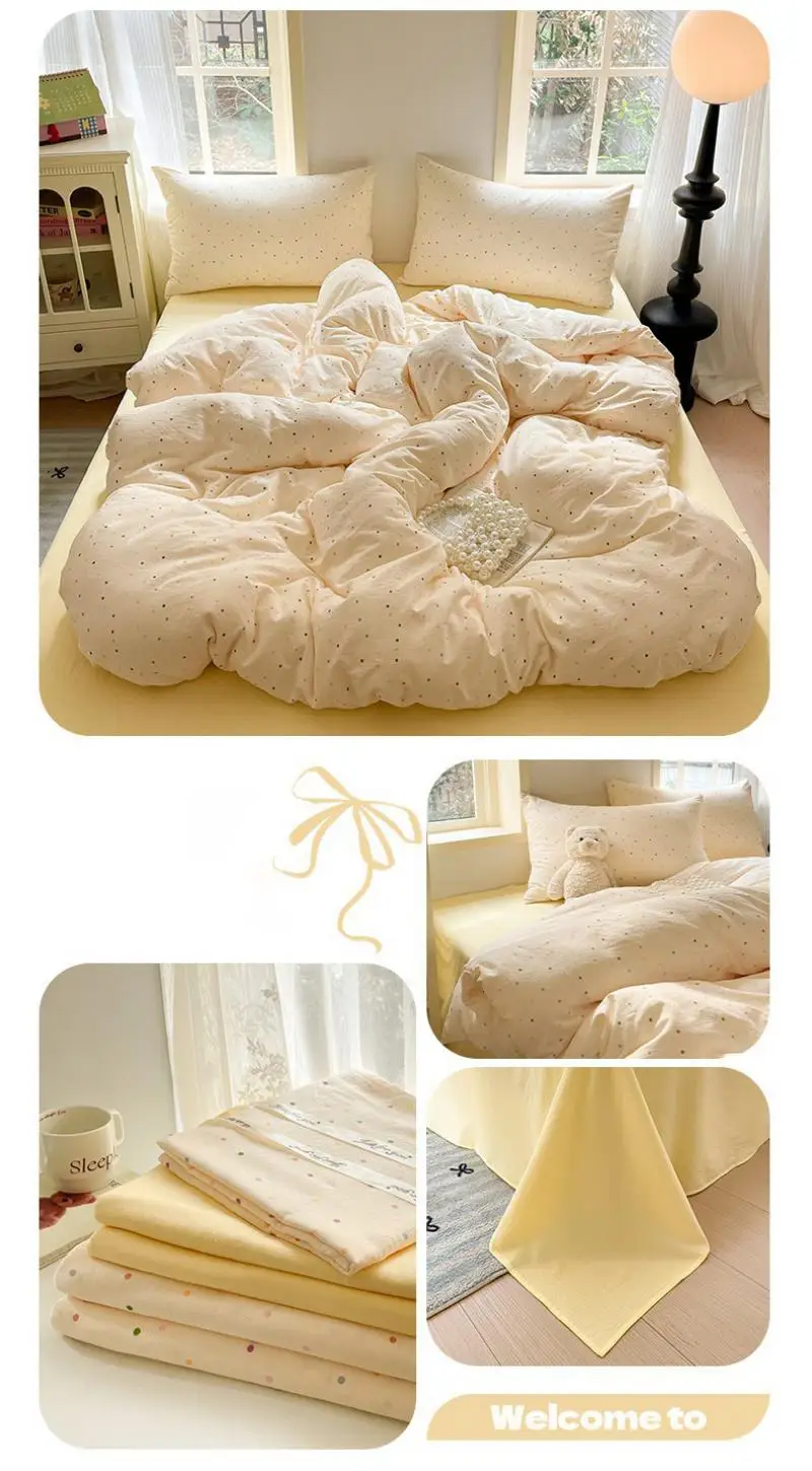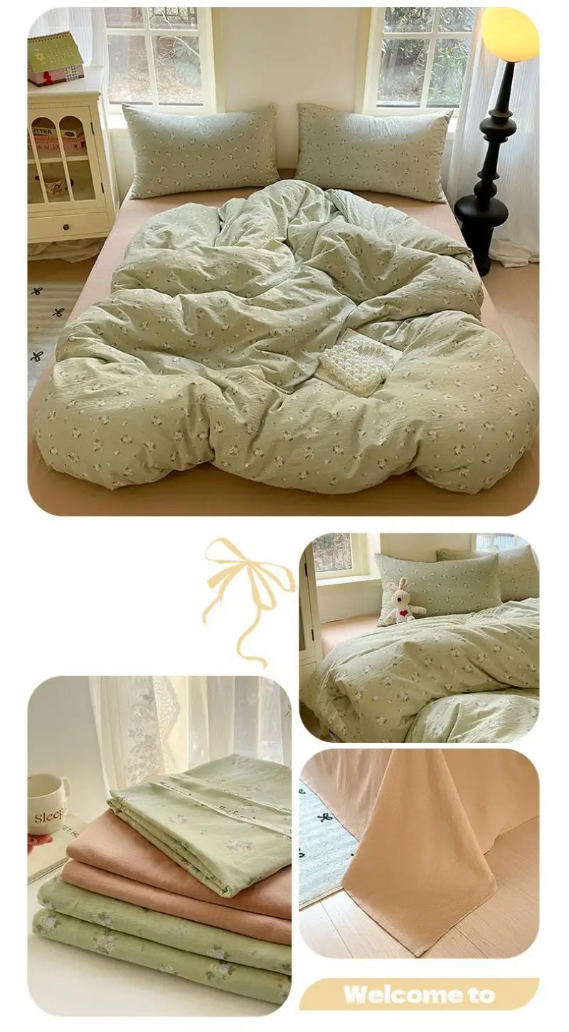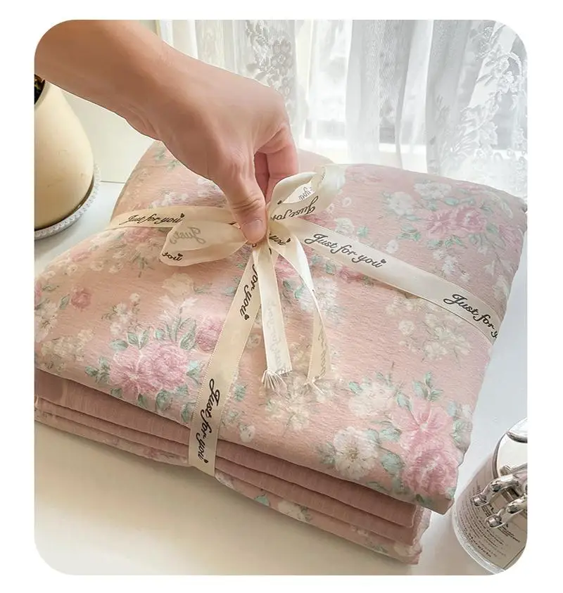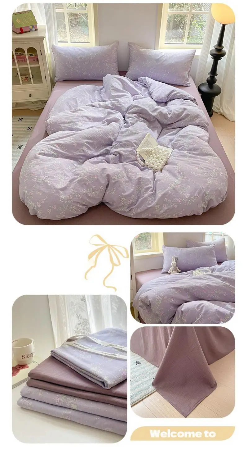 Purpdrank 4Pcs Jacquard Double-Layer Yarn Fitted Sheet Grade A Home Dormitory Bedding Set Cloud Touch Soft Skin-Friendly Bedroom Decor