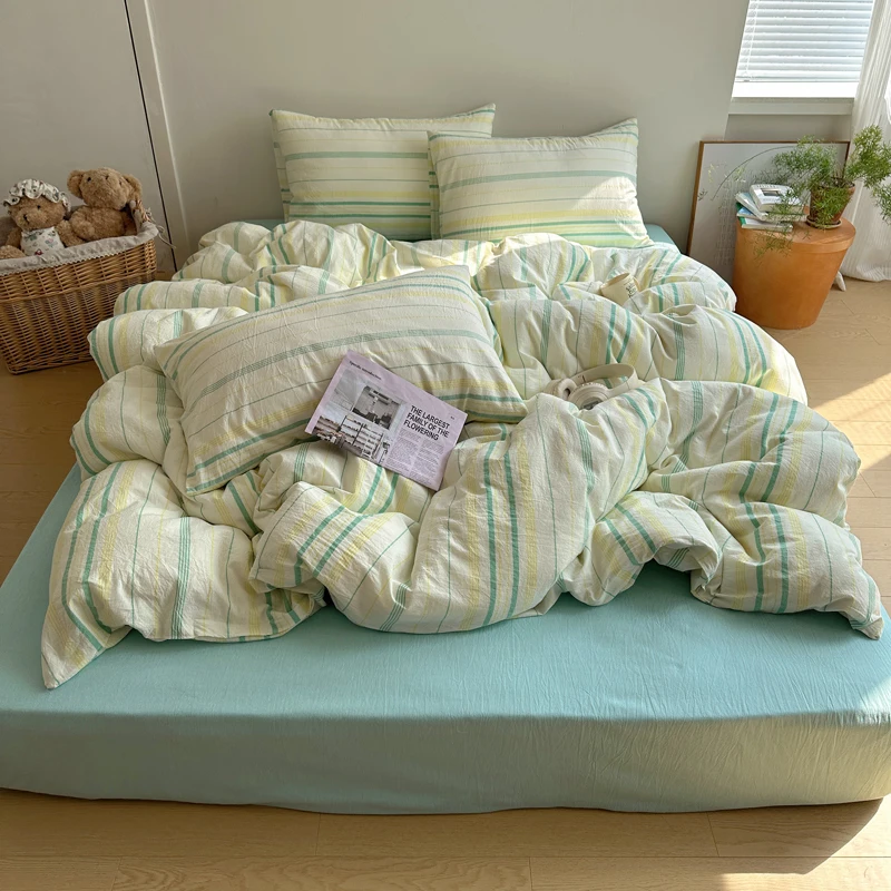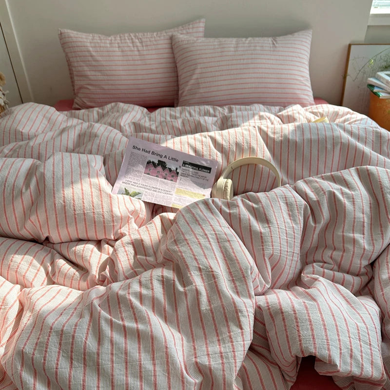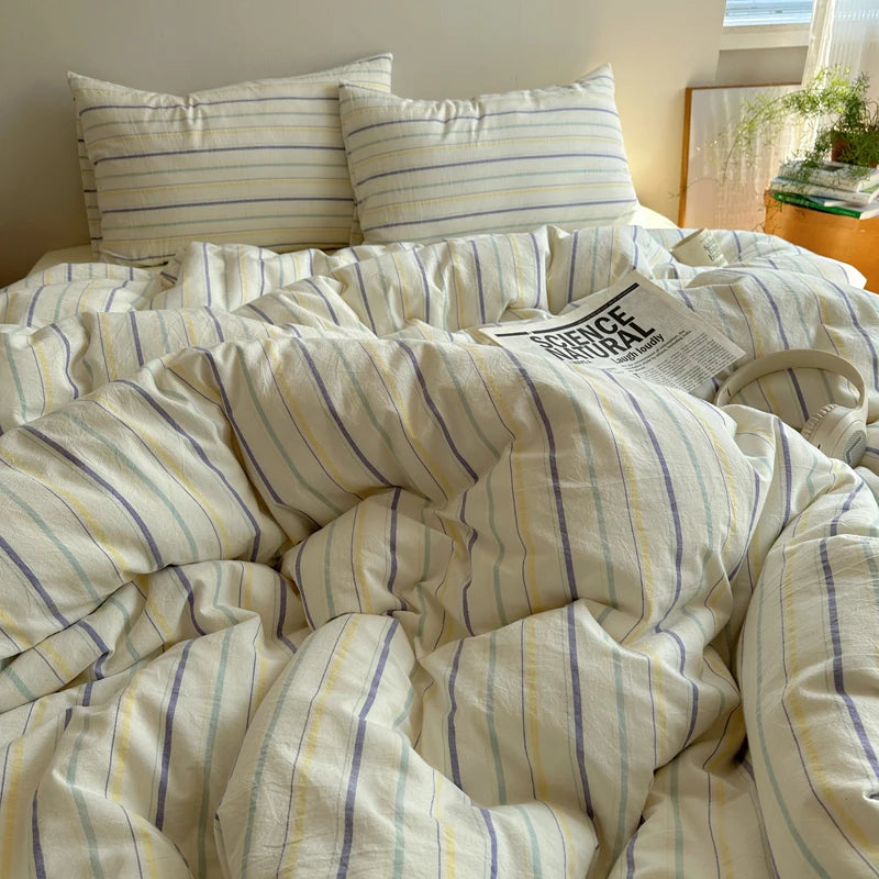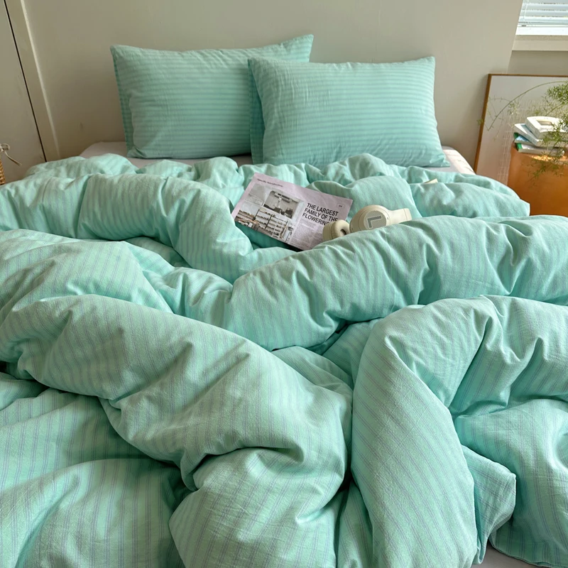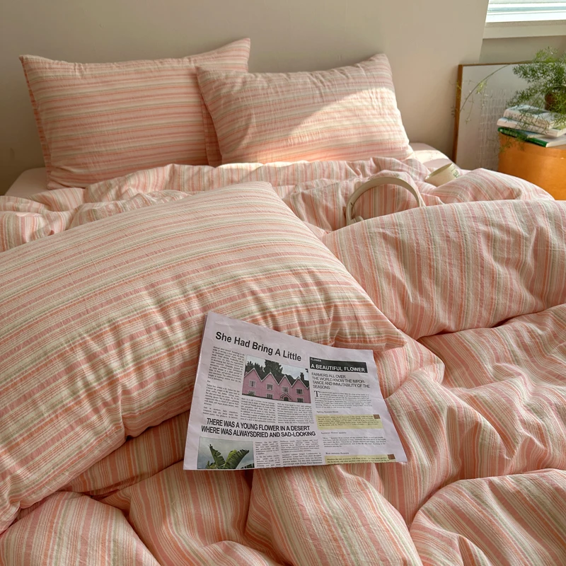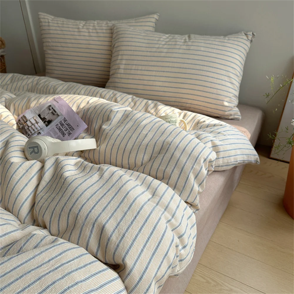 Purpdrank Aimple Stripe Bedding Set With Pillowcase Bed Sheet Single Full Size Bed Washed Cotton Duvet Cover Set King Double Single Bed