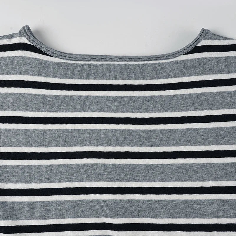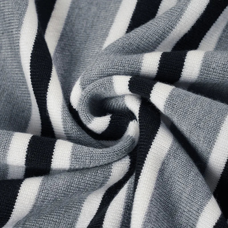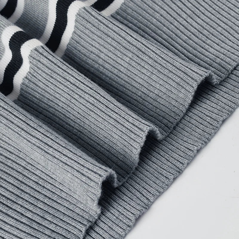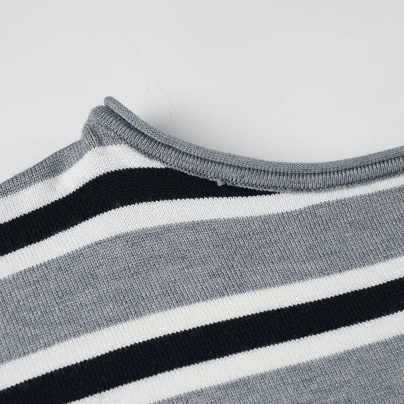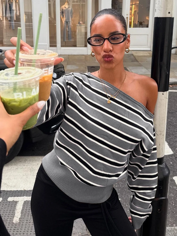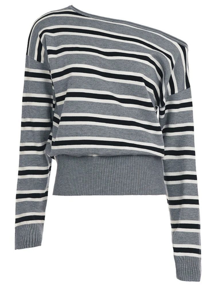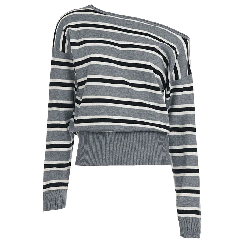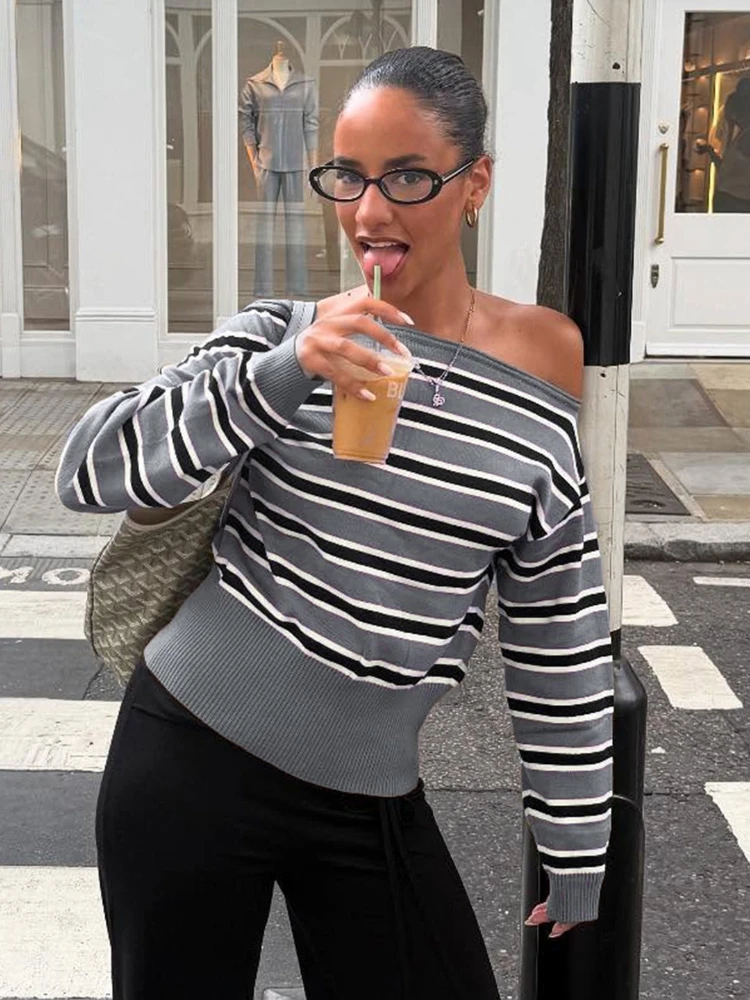 Purpdrank American Retro Contrast Color Slash Neck Long Sleeve Loose Knitted All Match Pullovers