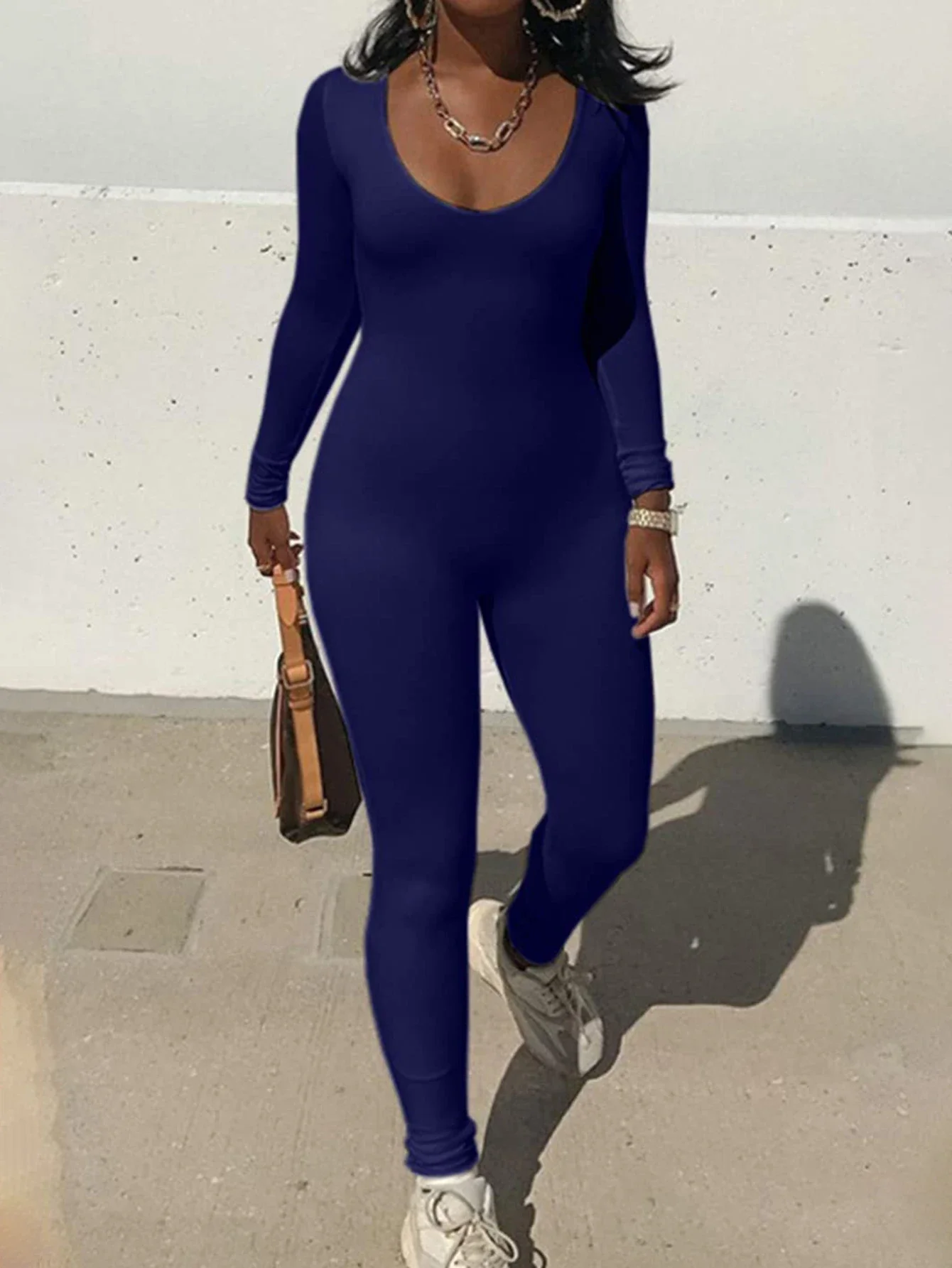 Purpdrank Autumn Jumpsuits 2025 Women's French Sexy Plain Long Sleeve Scoop Neck Ankle Skinny Fit Daily Basic Jumpsuits