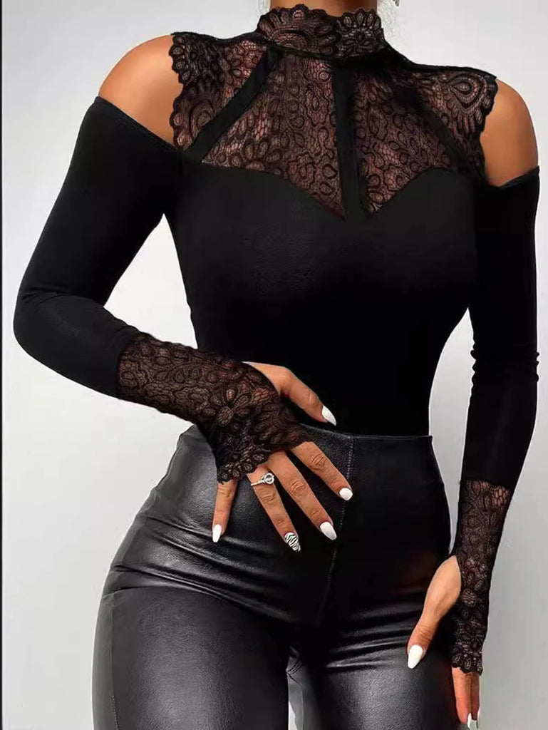 Purpdrank Autumn T-Shirts 2025 Women's Sexy Plain Jacquard Sheer Long Sleeve Mock Neck Cut-Out Skinny Fit Basics T-Shirts