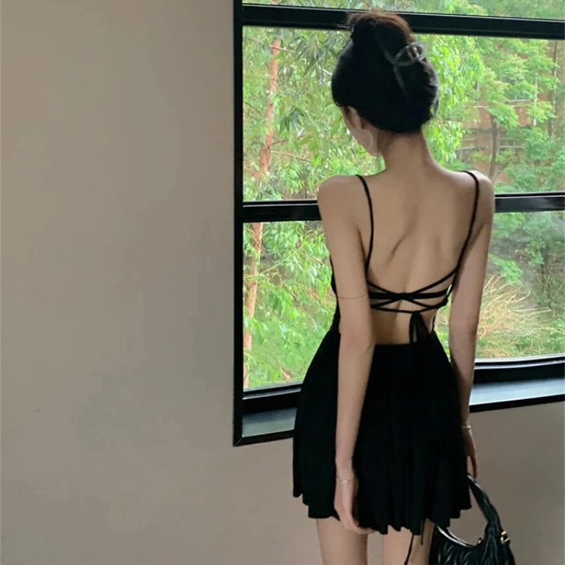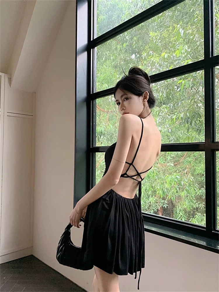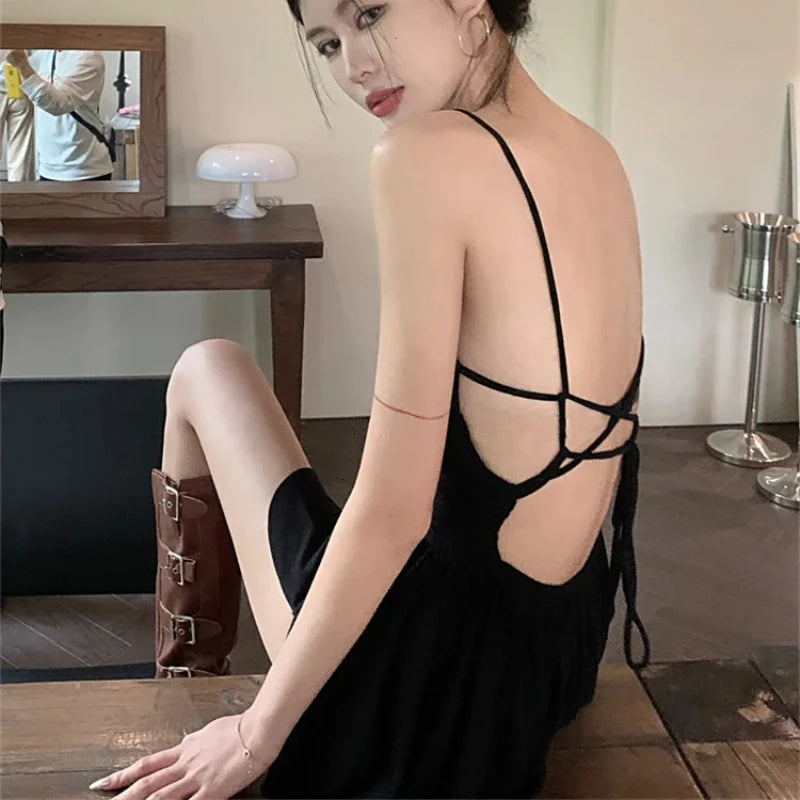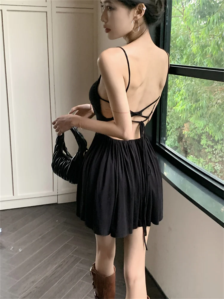 Purpdrank Ballet Style Black Suspender Dress for Women's Summer Spicy Girl Backless Sexy Short Mini Vestidos De Mujer Fashion Club Dress