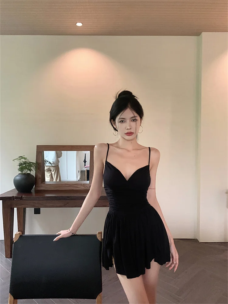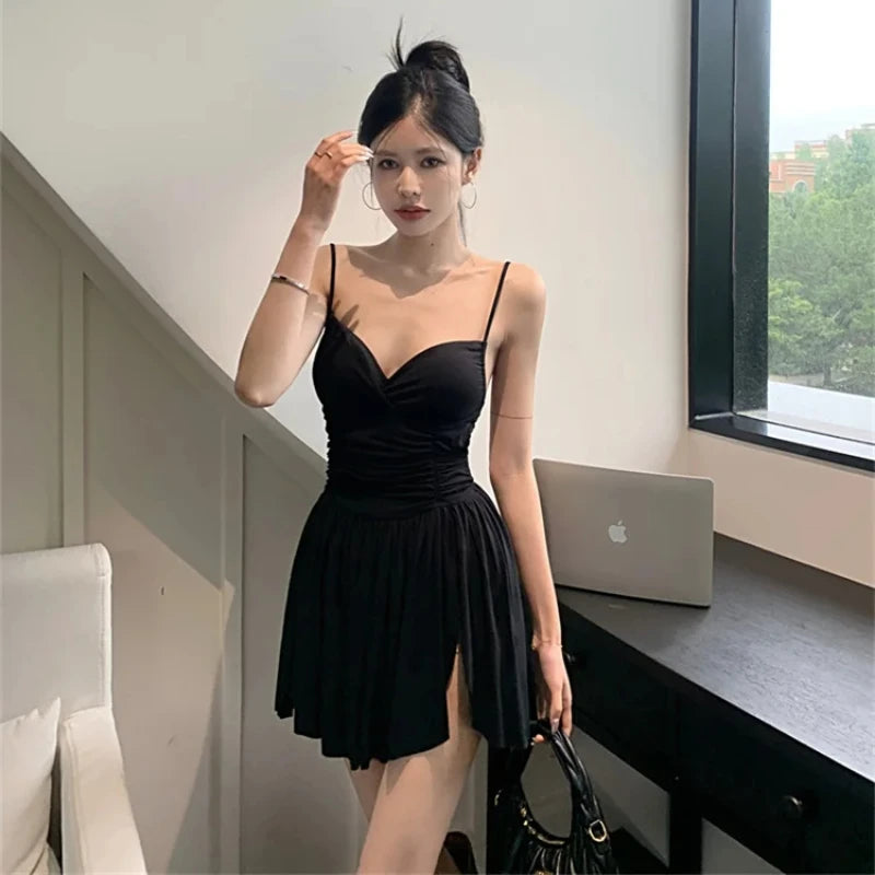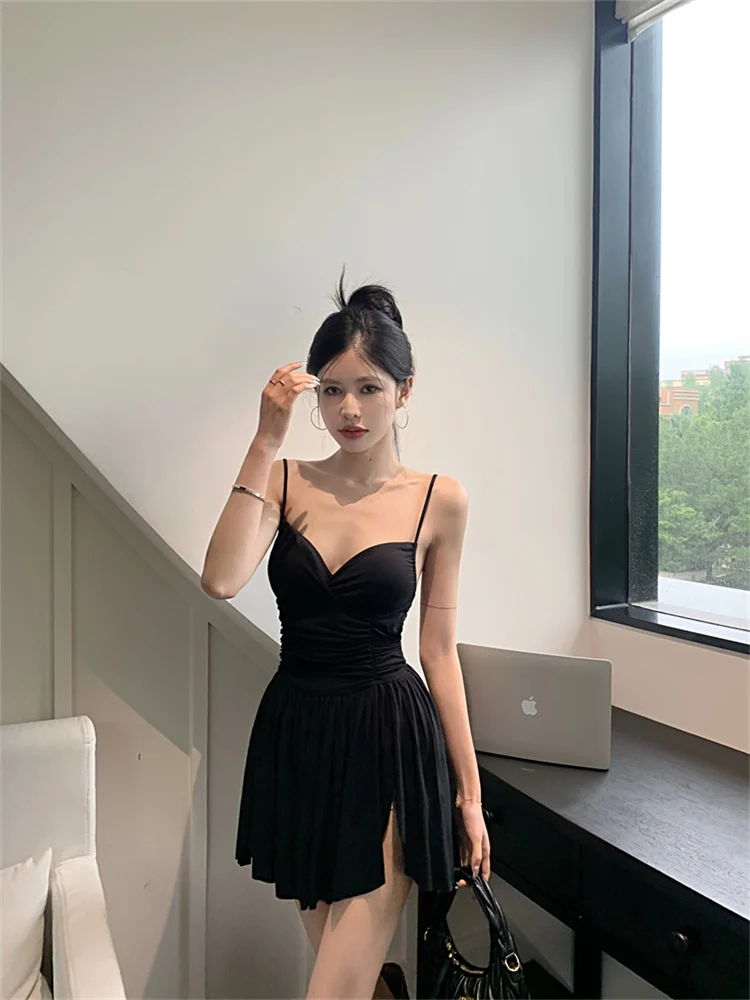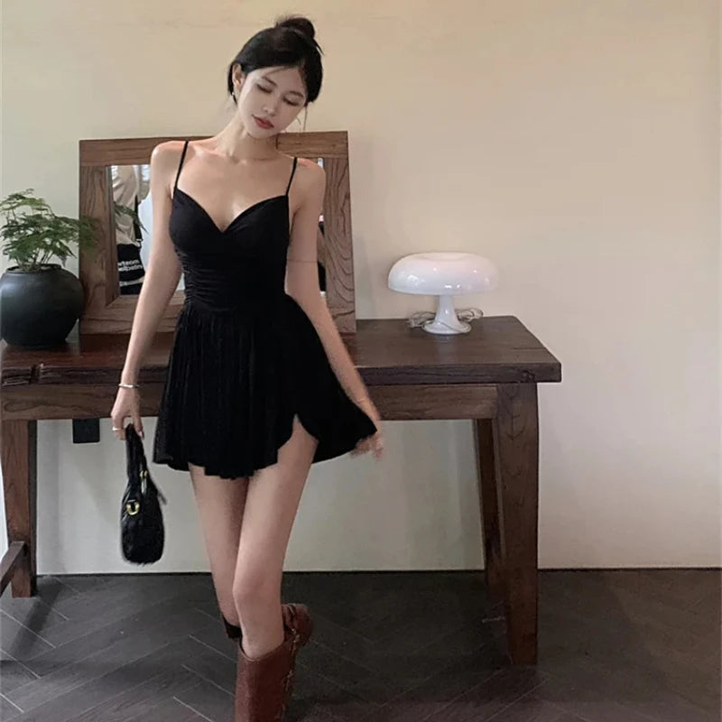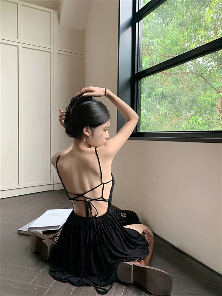 Purpdrank Ballet Style Black Suspender Dress for Women's Summer Spicy Girl Backless Sexy Short Mini Vestidos De Mujer Fashion Club Dress