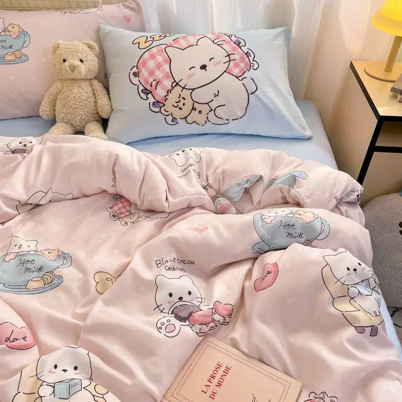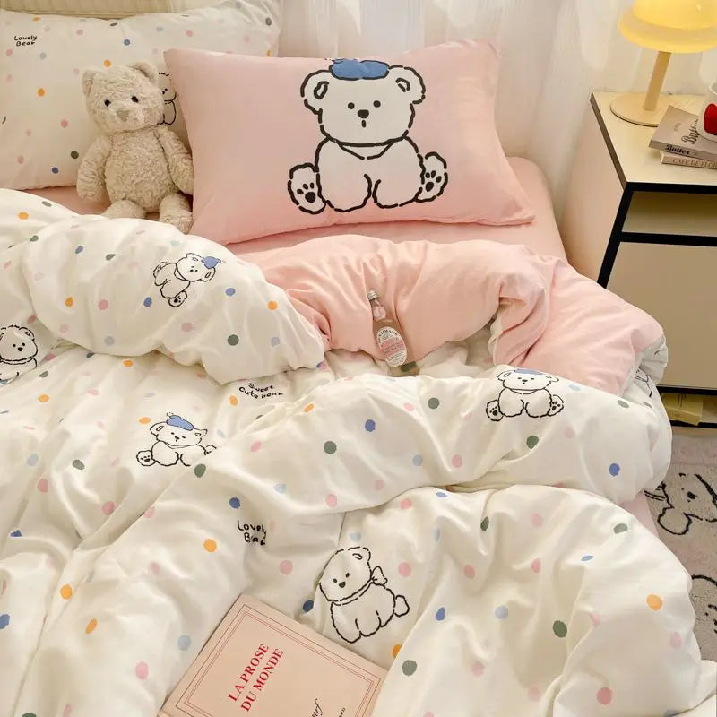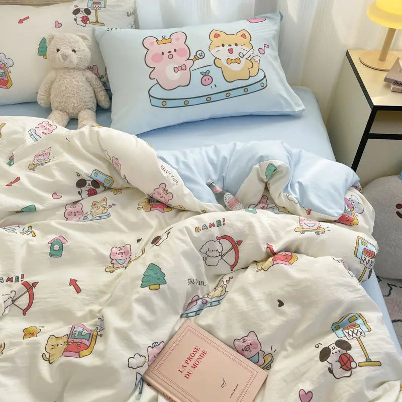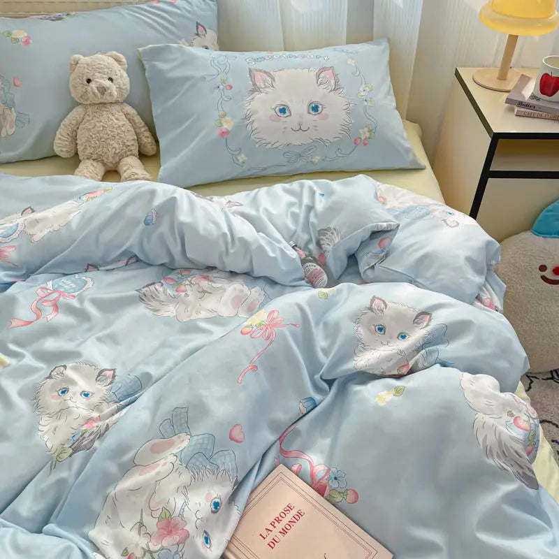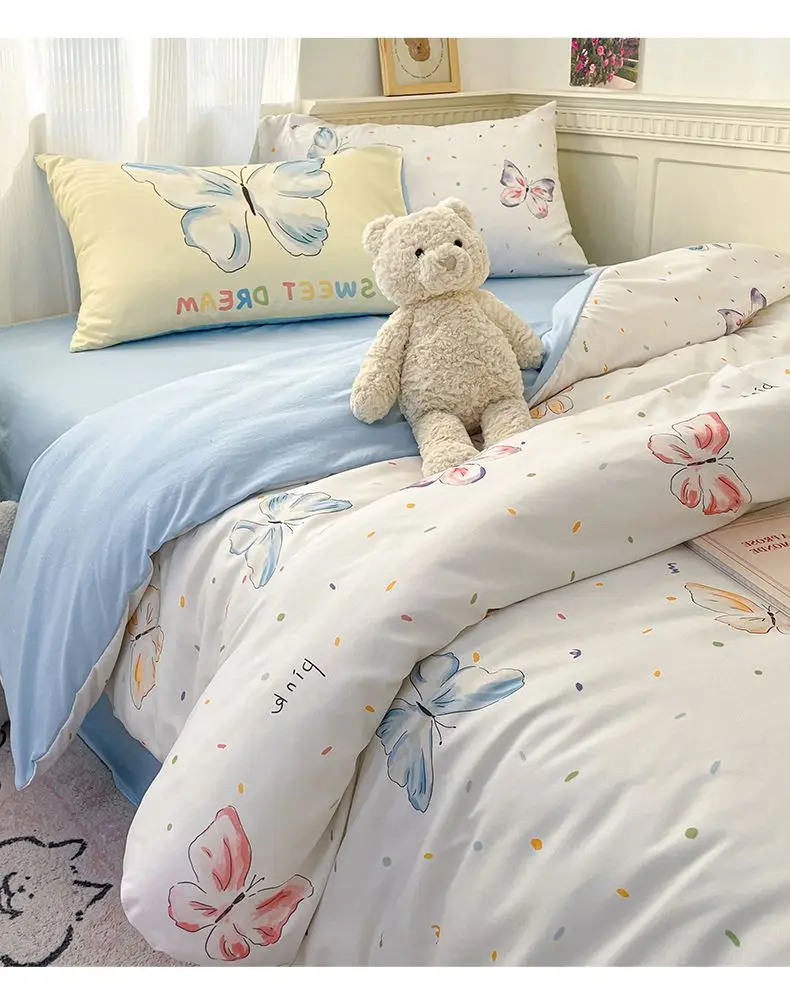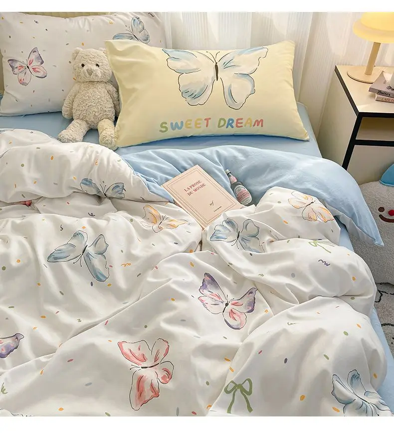 Purpdrank Bowknot Bedding Set Ins Girl Plaid Washed Dormitory Bed Sheet Quilt Cover Student Dormitory Three-piece Set