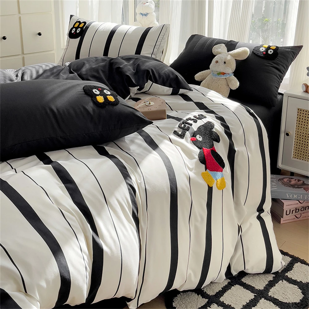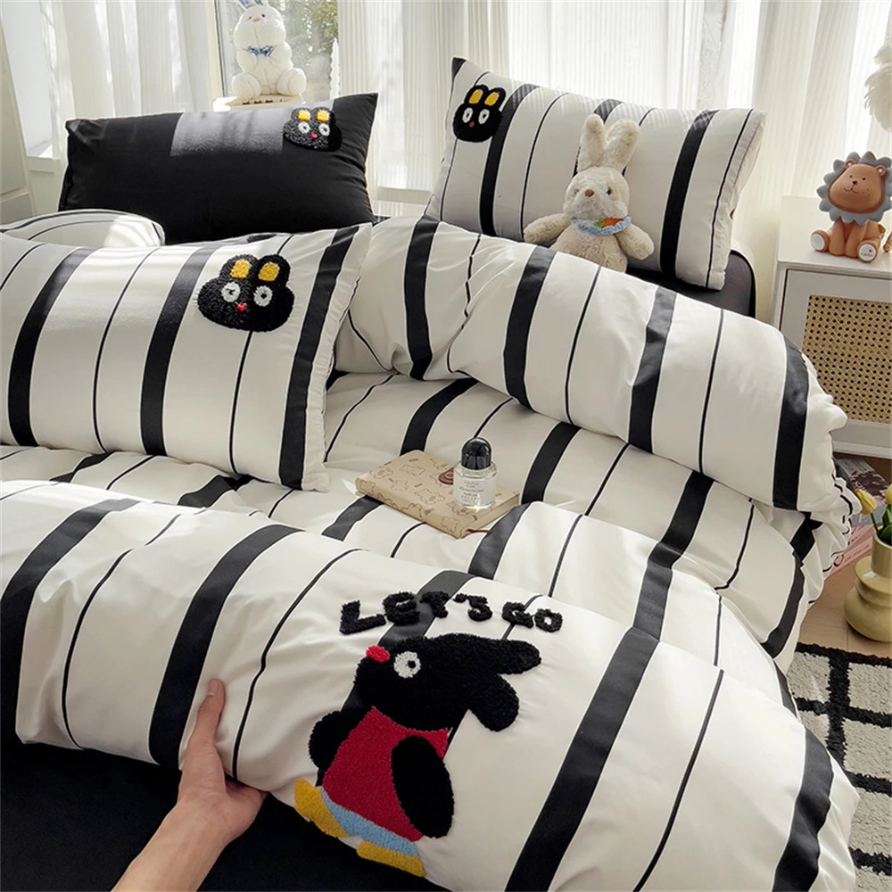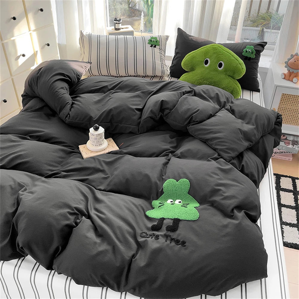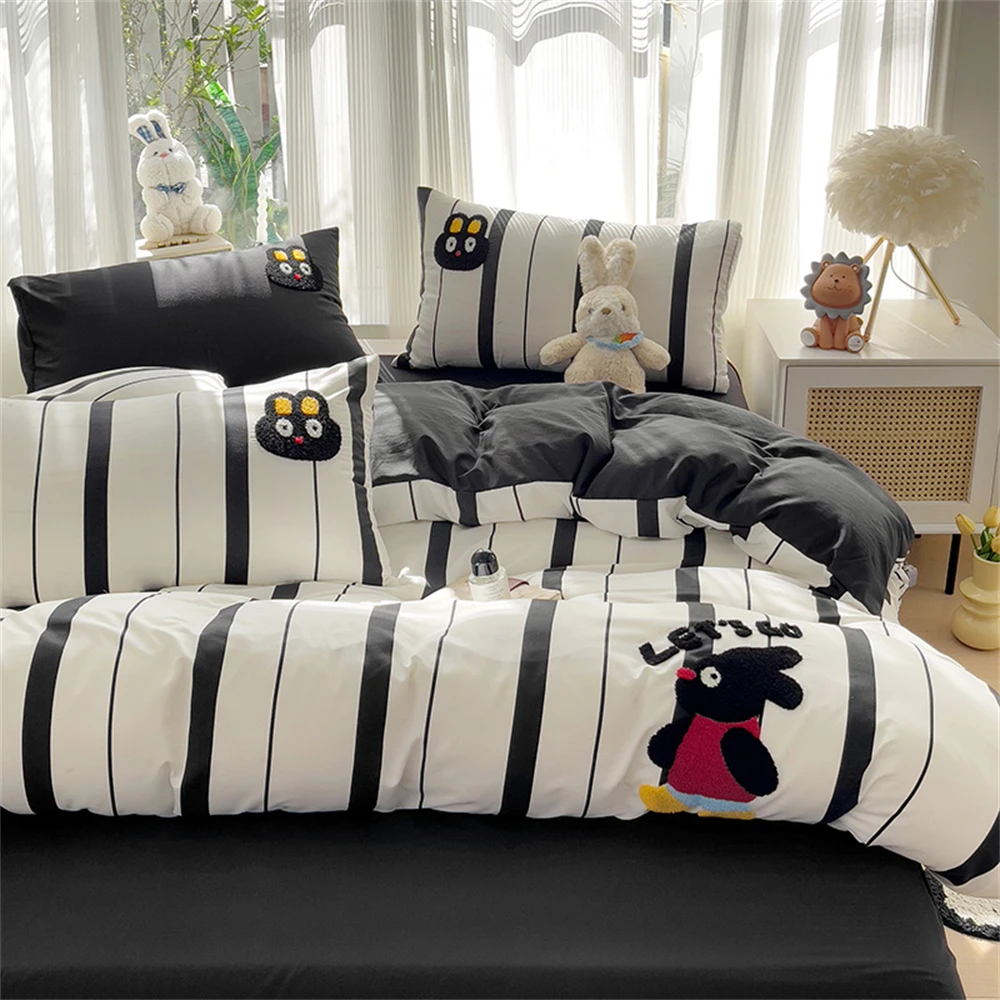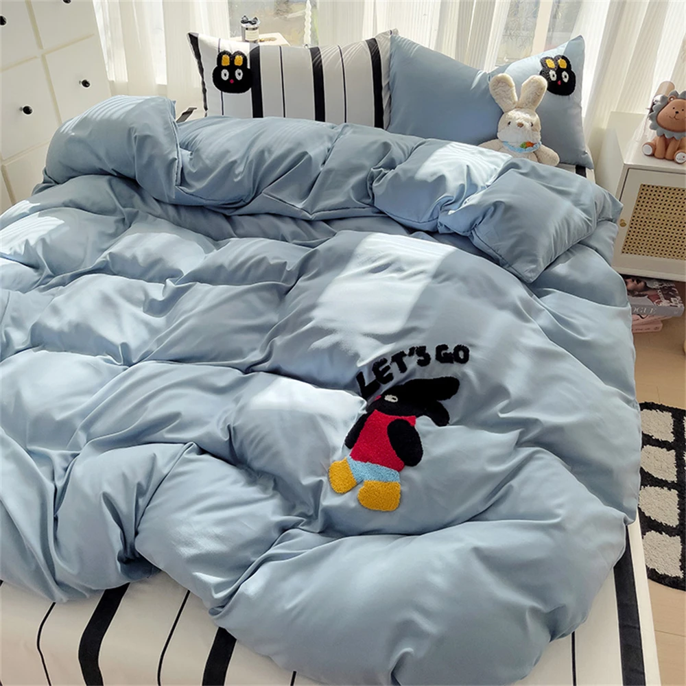 Purpdrank Cartoon Embroidery Four-Piece Set Quilt Cover Bed Sheet Pillowcase Bedding Sets For Kids Duvet Cover Comforter Queen King Size