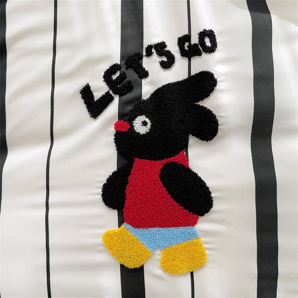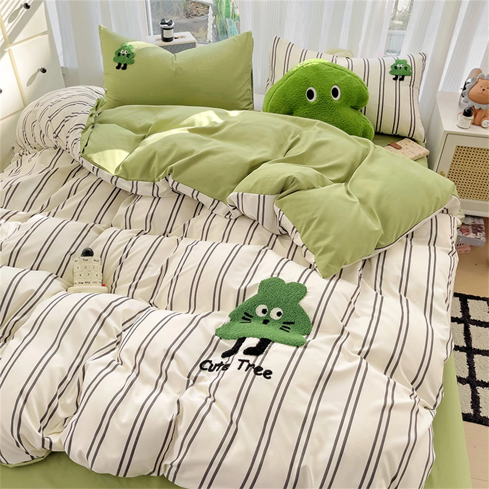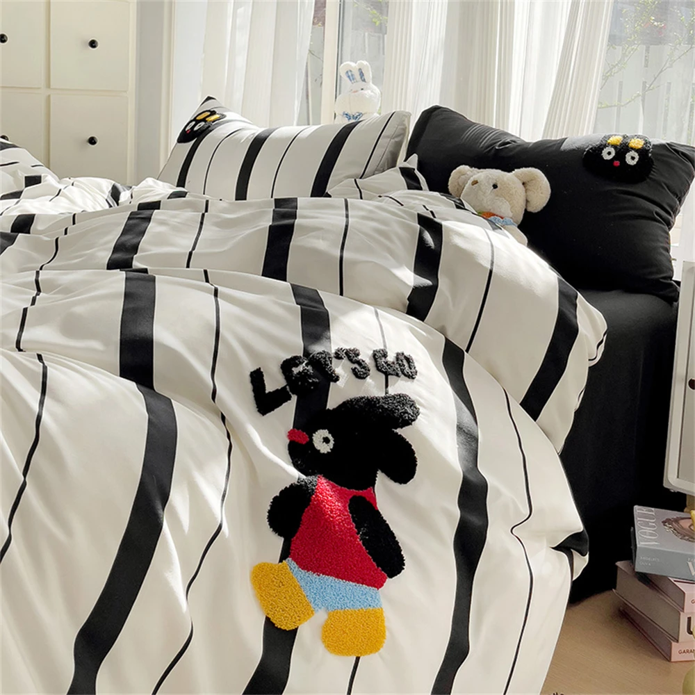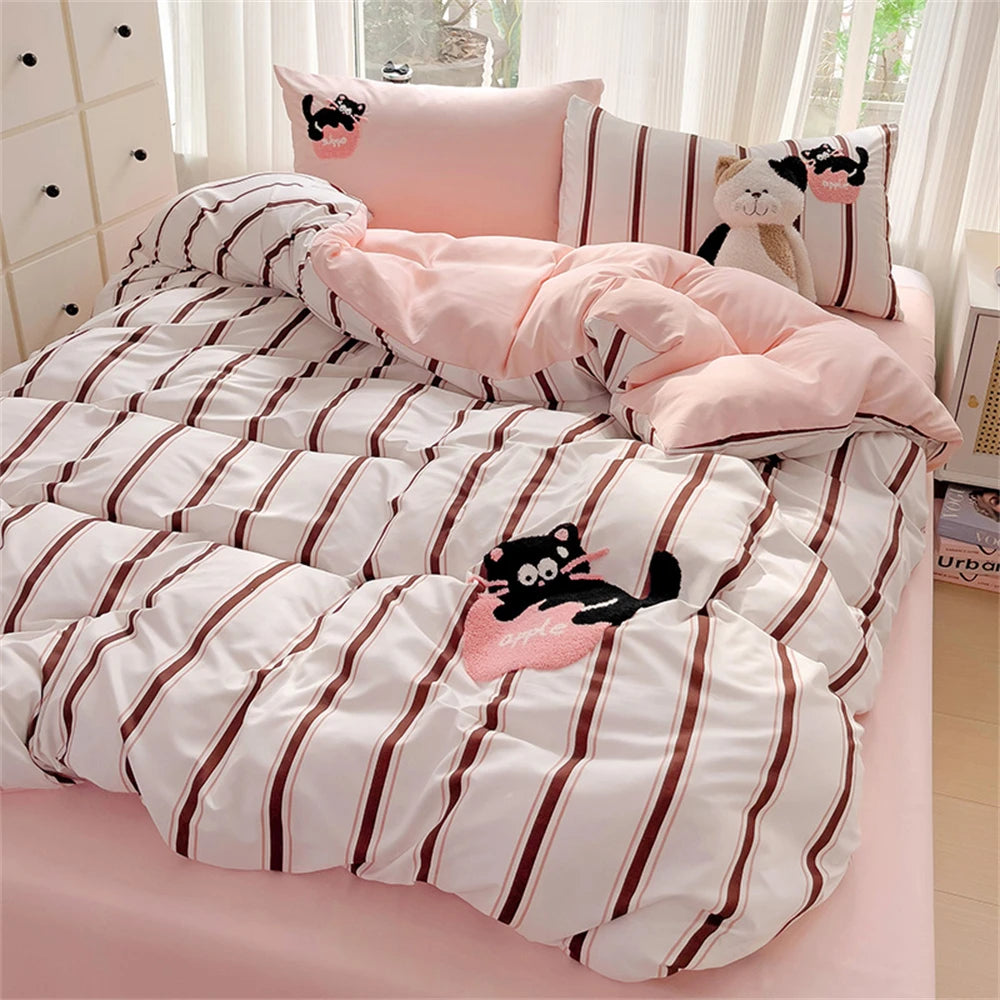 Purpdrank Cartoon Embroidery Four-Piece Set Quilt Cover Bed Sheet Pillowcase Bedding Sets For Kids Duvet Cover Comforter Queen King Size