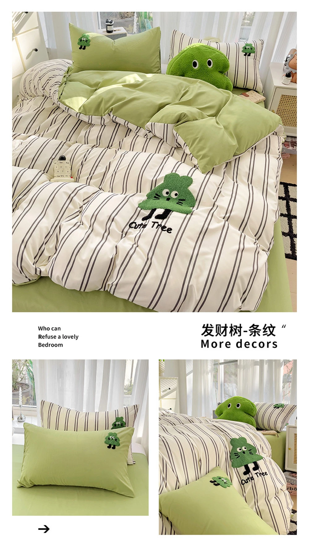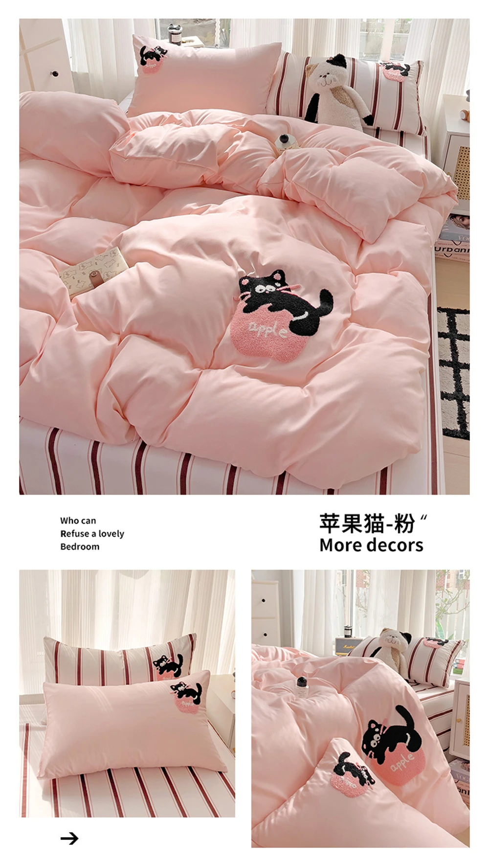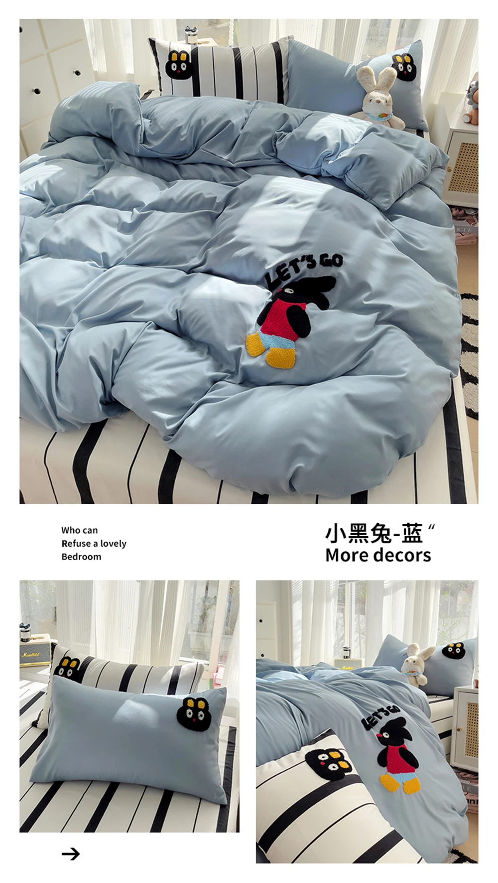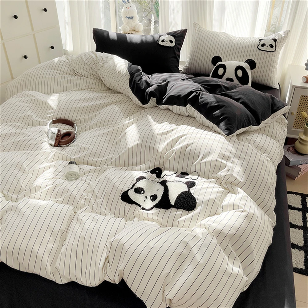 Purpdrank Cartoon Embroidery Four-Piece Set Quilt Cover Bed Sheet Pillowcase Bedding Sets For Kids Duvet Cover Comforter Queen King Size