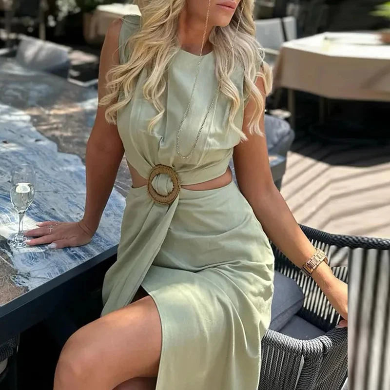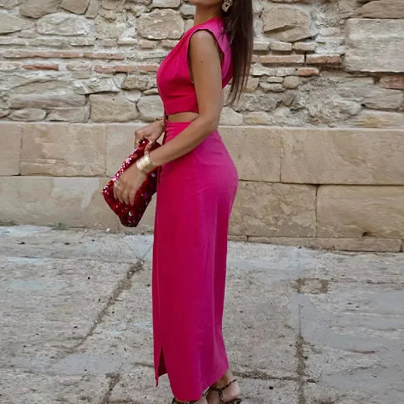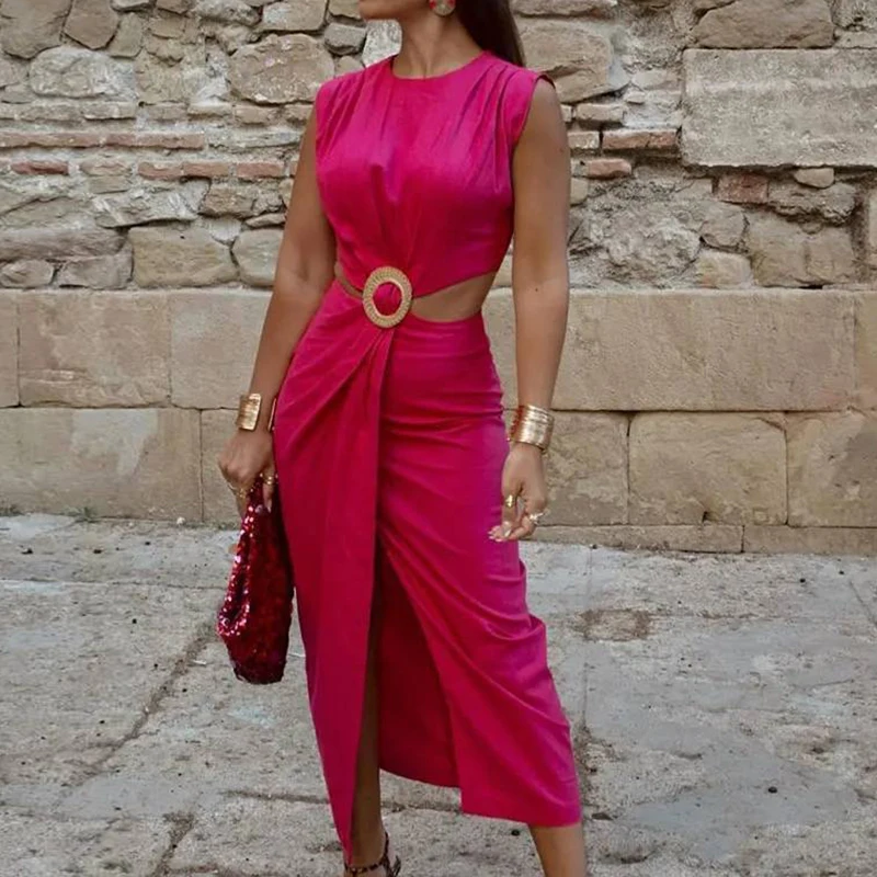 Purpdrank Casual Commuting Women's A-line Dresses Summer Sleeveless Hollow Out Irregular Dress Sexy Slim Fit Split Solid Color Long Dress
