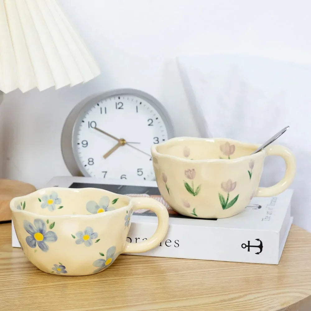 Purpdrank Ceramic Mugs Coffee Cups Hand Pinched Irregular Flower Milk Tea Cup Ins Korean Style Oatmeal Breakfast Mug Drinkware Kitchen