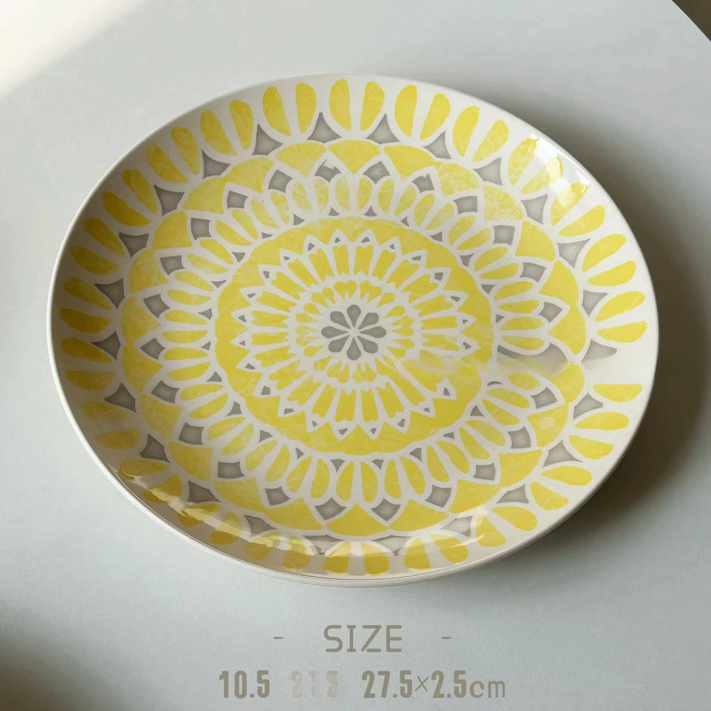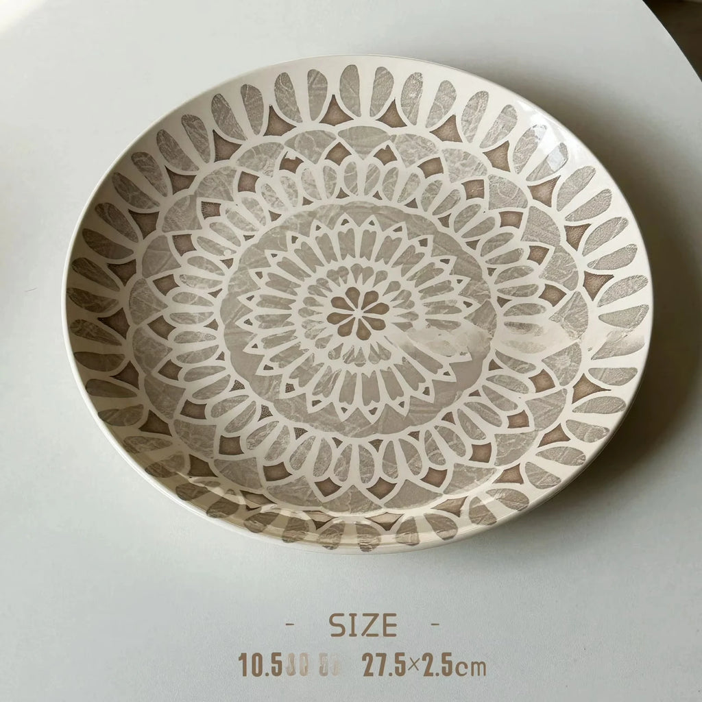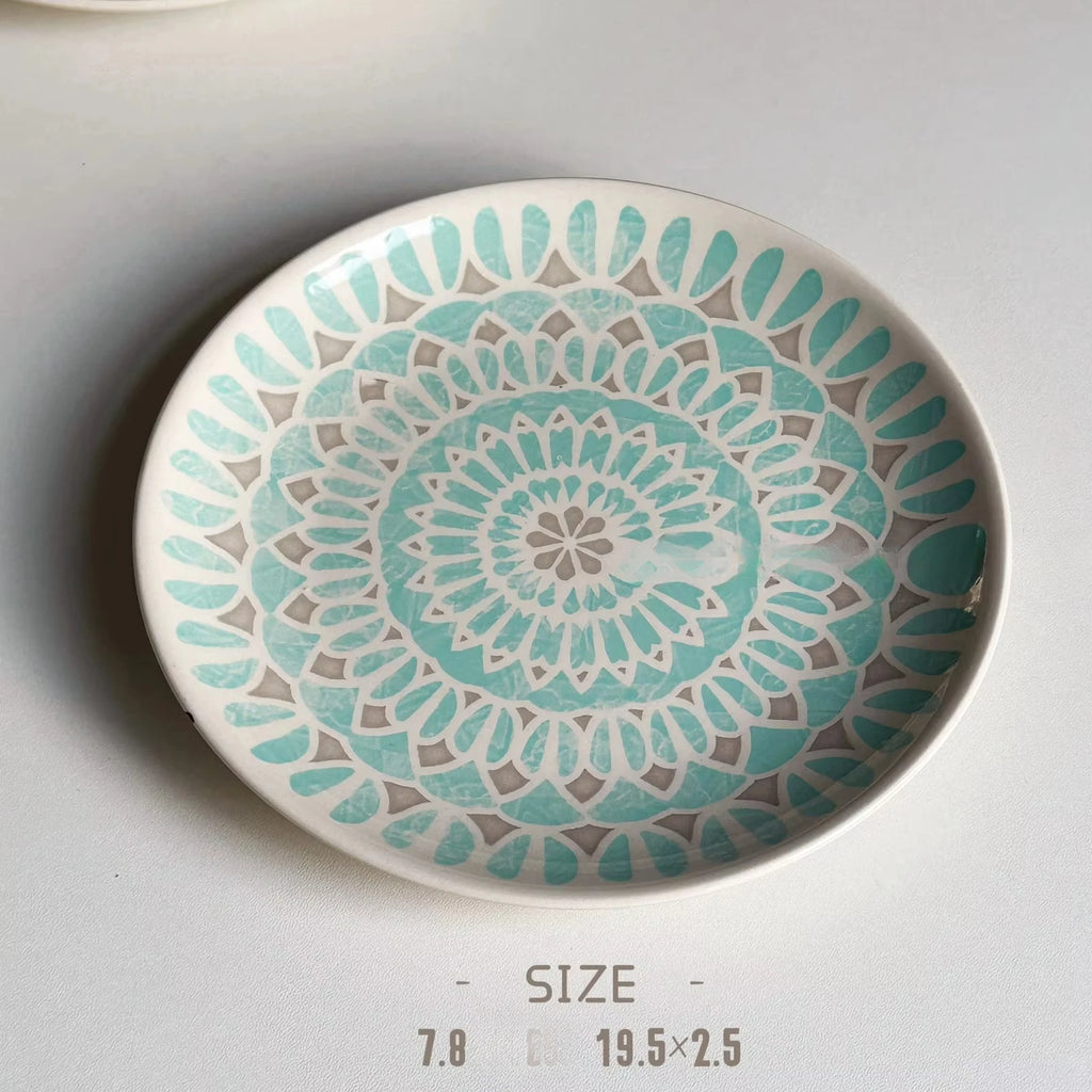 Purpdrank Ceramic Round Shape Floral Plates Dinner Sets Large Capacity Large Plate Dessert Salad Plate Beautiful Table Tableware Services