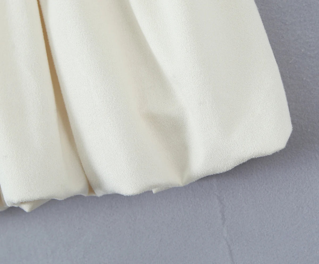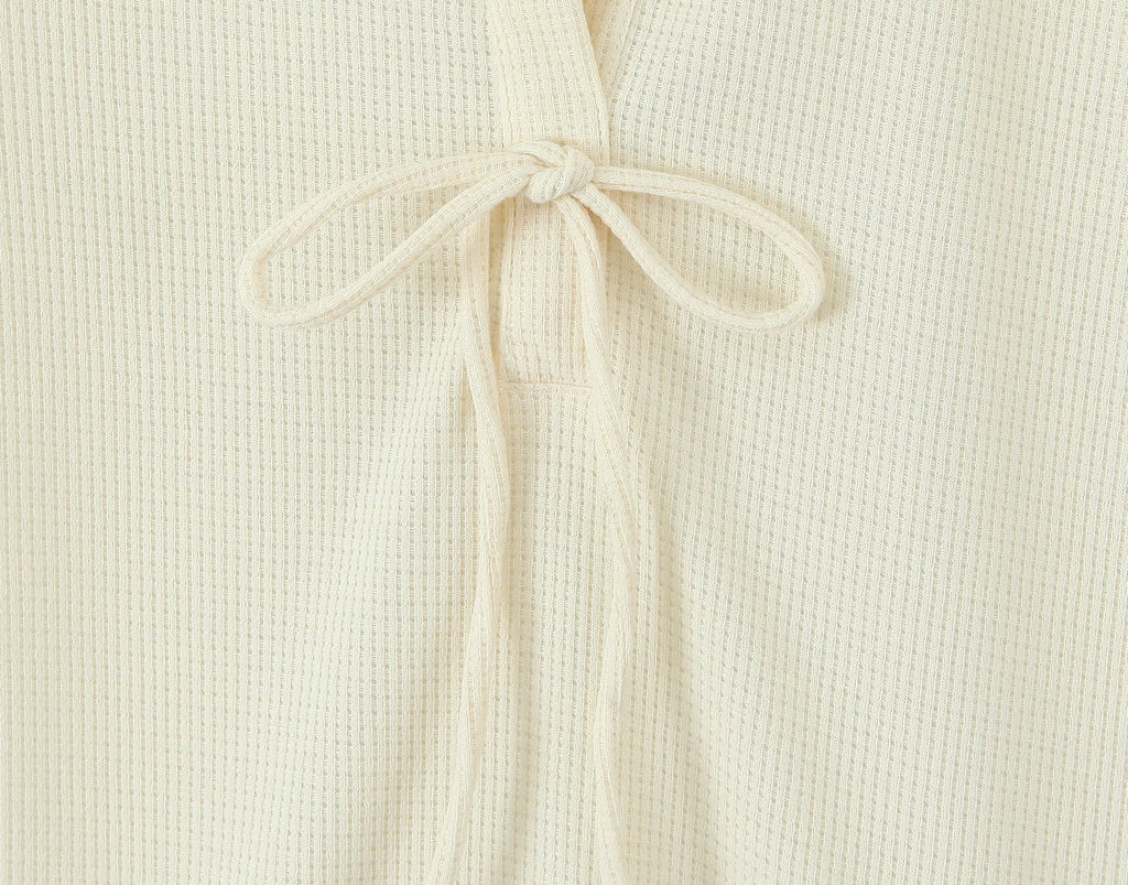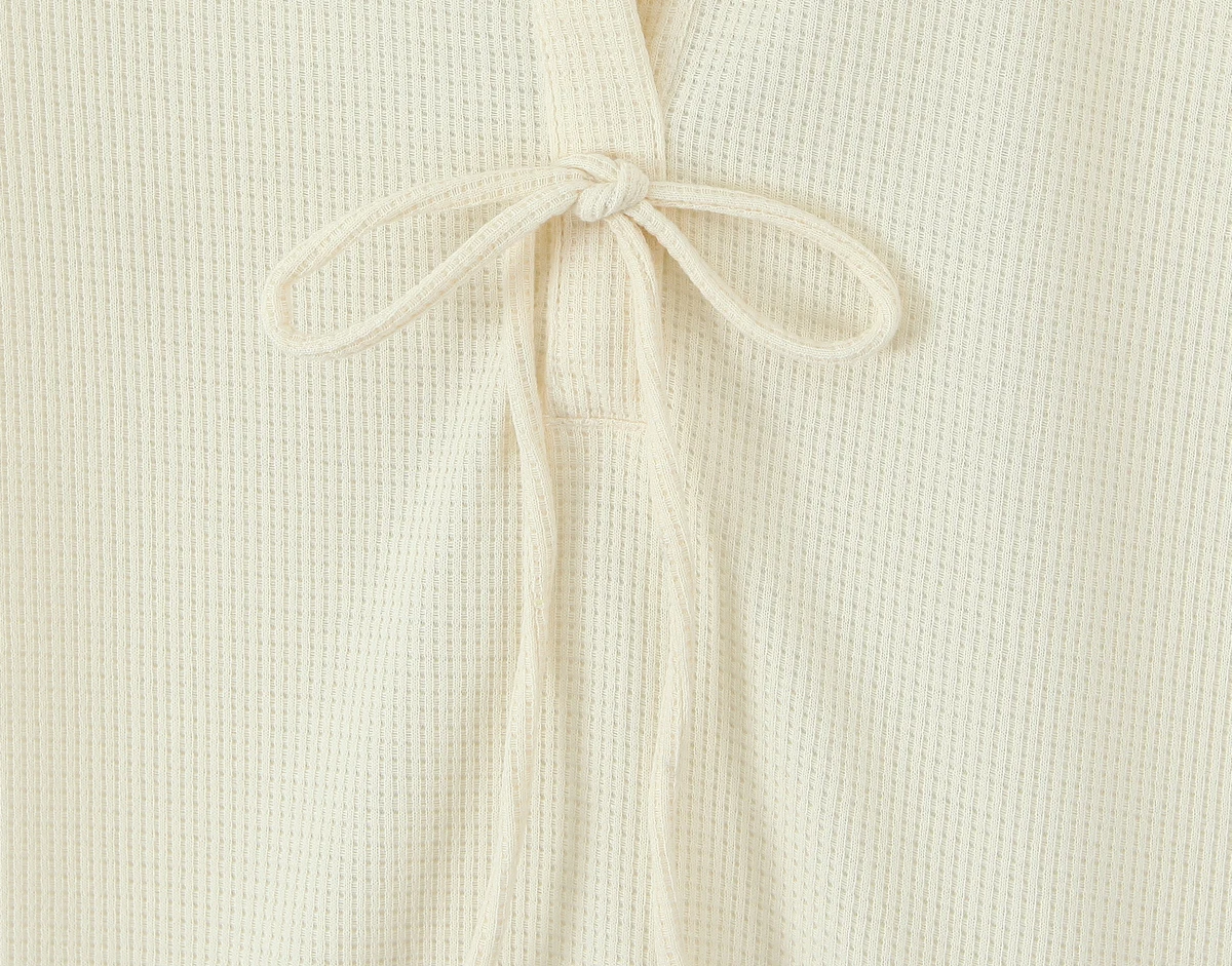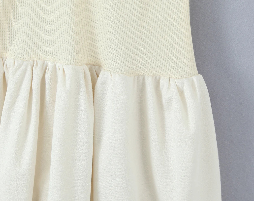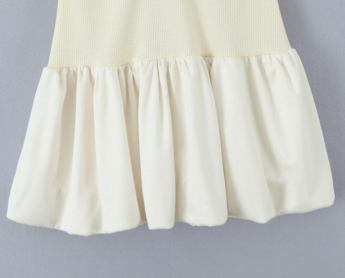 Purpdrank CHIC Beige Polo Collar Bow Lapel V Waffle Knitted Short Sleeve Dress Women Slim Waist Spliced BUD Swing Short Dresses Robe