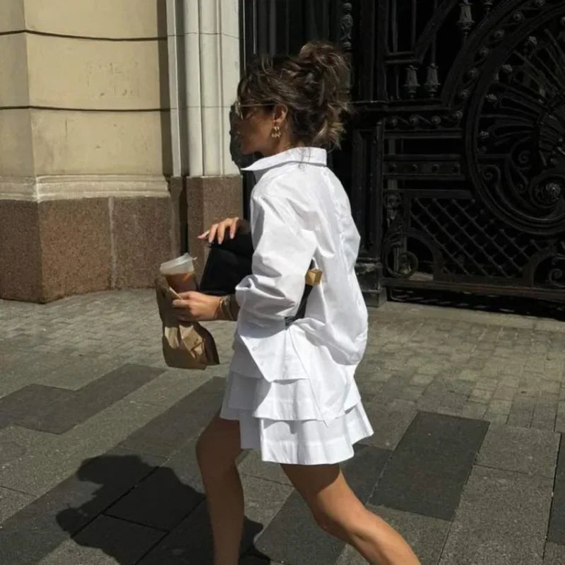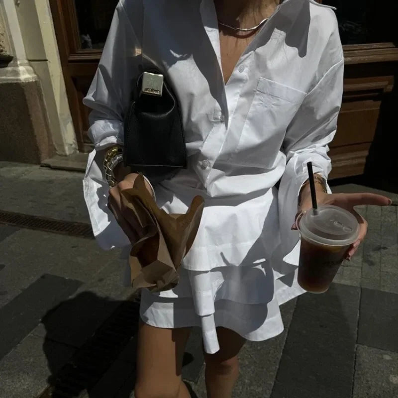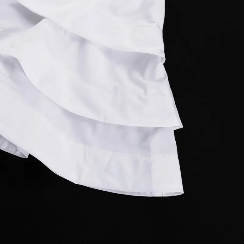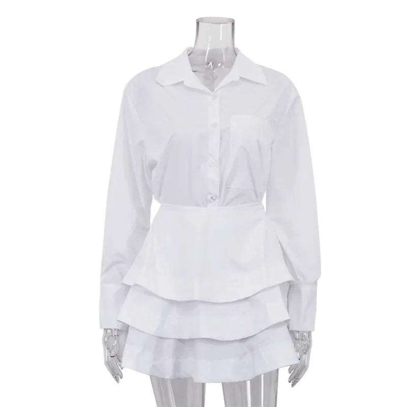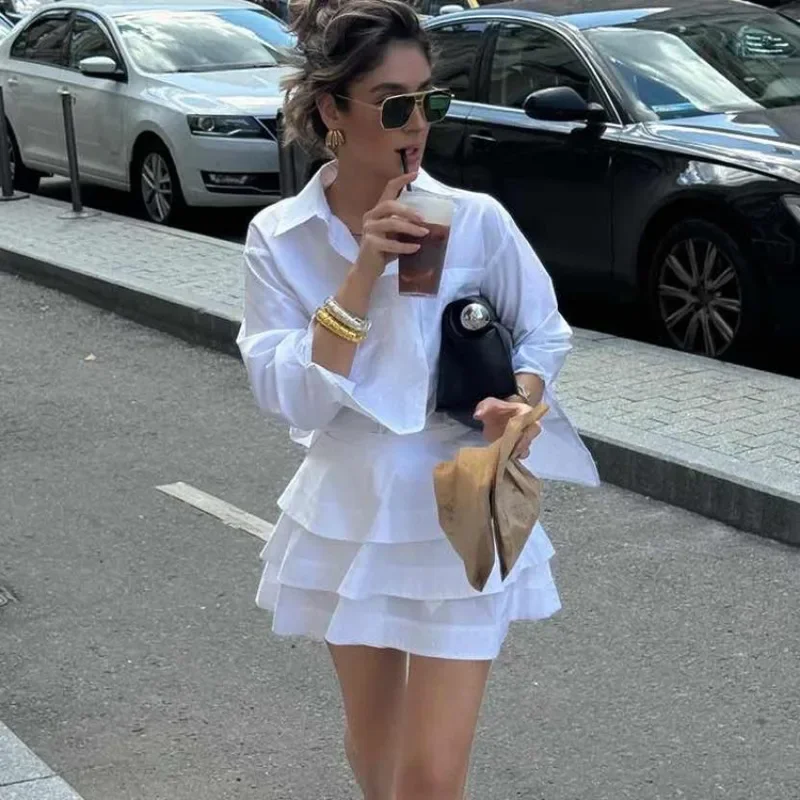 Purpdrank Elegant Chic Office Lady Loose Pocket Shirt Top Cake Layered Ball Skirt Set Summer Outfits New Women Skirt Two Piece Set