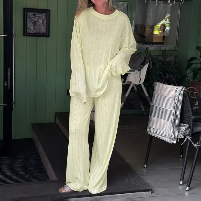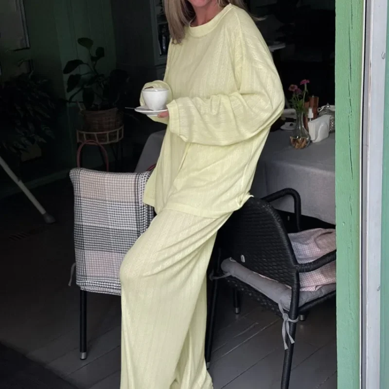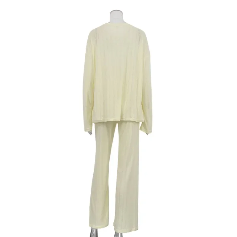 Purpdrank Elegant Comfortable Long Sleeve Shirt Wide Leg Pants Set Homewear Loungewear Nightwear 2025 Women Loose Two Piece Pajamas Set