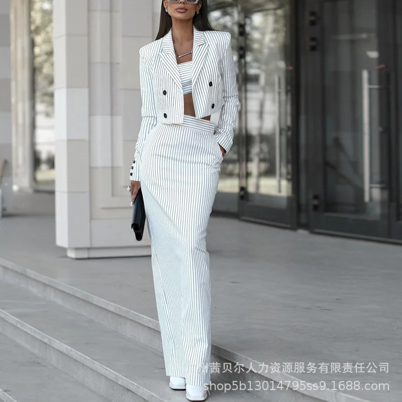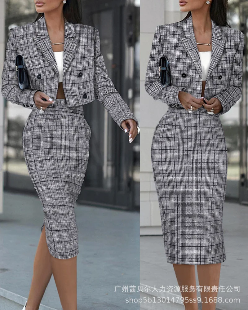 Purpdrank Elegant Women's Plaid Two-Piece Skirt Set with Long Sleeve Lapel Blazer And Tight Skirt Lady Tracksuit for 2025