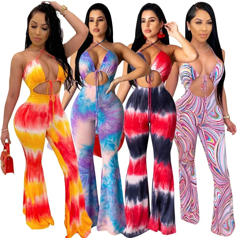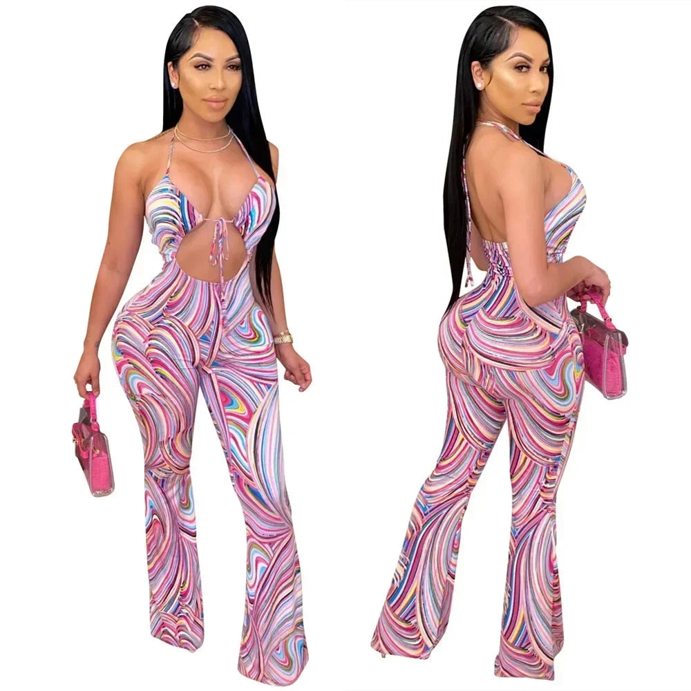 Purpdrank European and American Women's Summer Fashion Trend New Sexy Slim-fit Lace-up Printed Jumpsuit