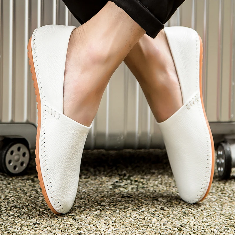 Purpdrank Fashion Mens Genuine Leather Loafers New Arrival Casual Shoes Business Men Slip-on Shoes Comfy Antiskid Lazy Shoes Driving Flats