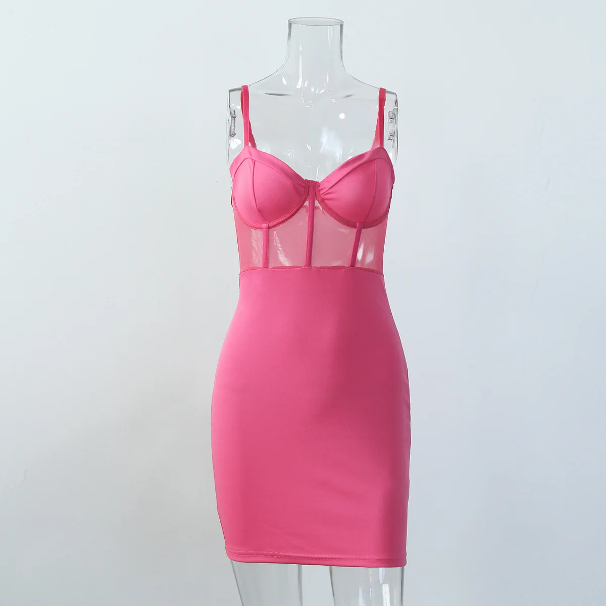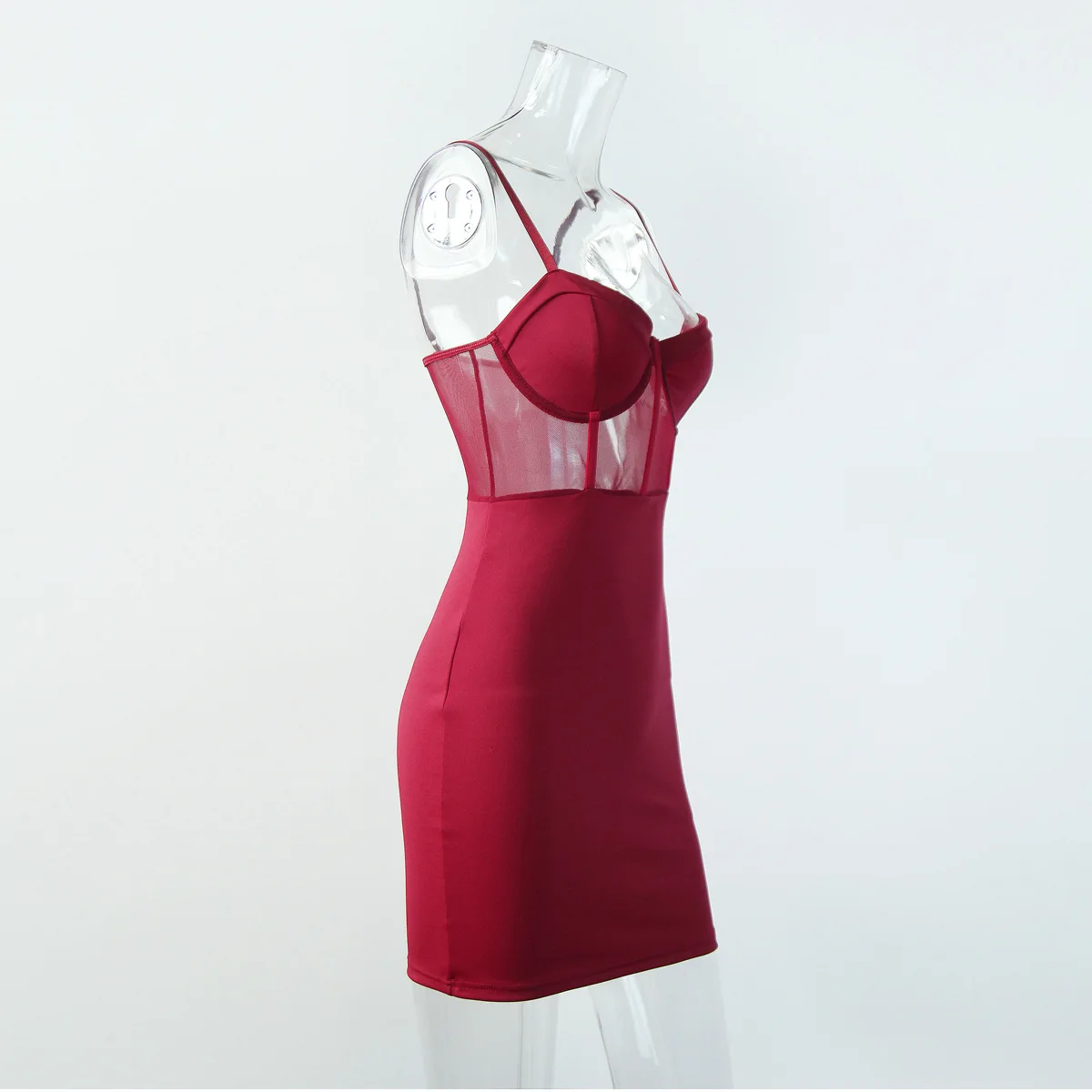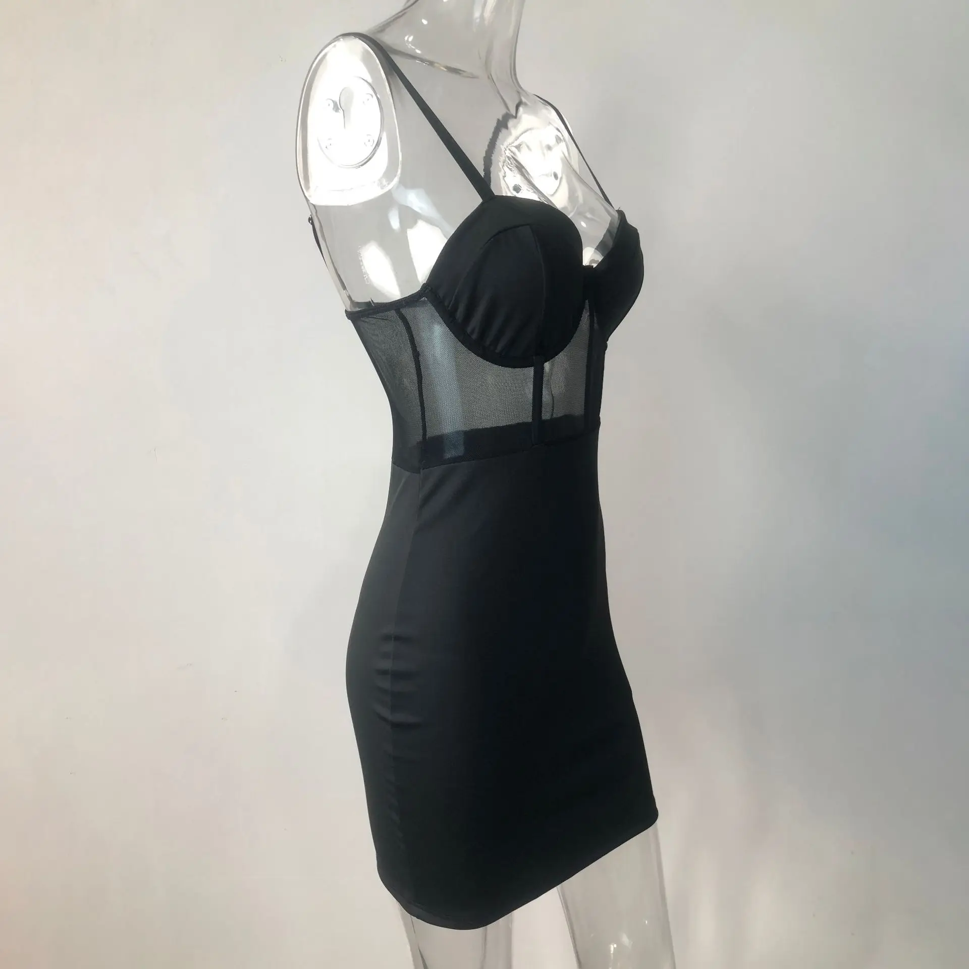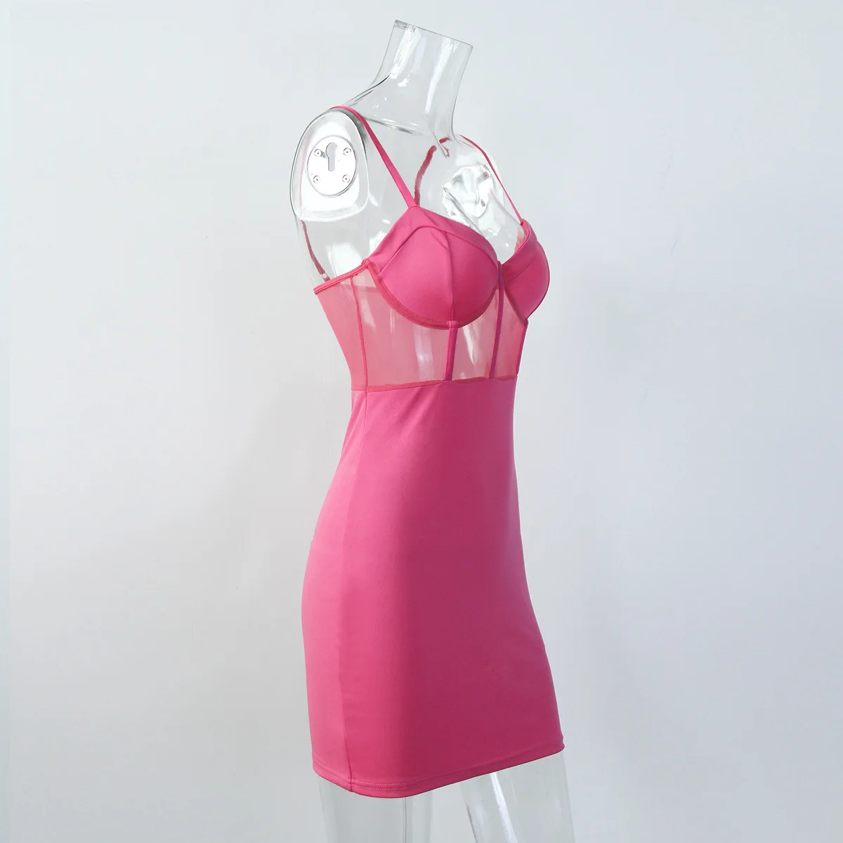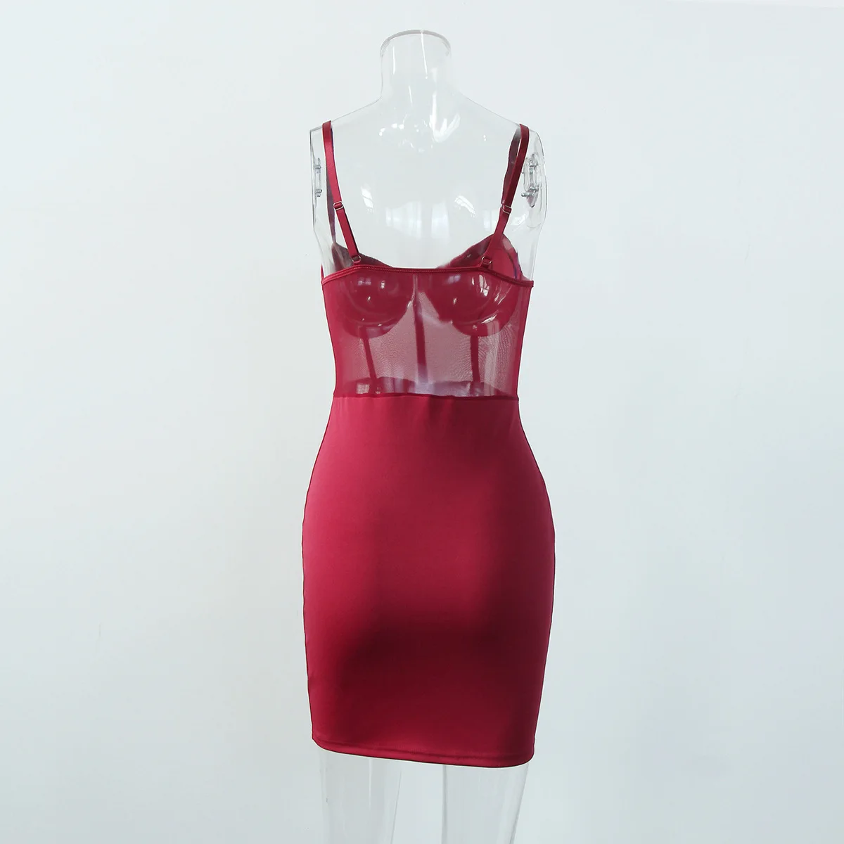 Purpdrank Fashion New Spring Summer Women Low V-Neck Perspective Mesh Slip Dress Office Lady Wrap Hip Mini Skirt Casual Clothing Girl Gift
