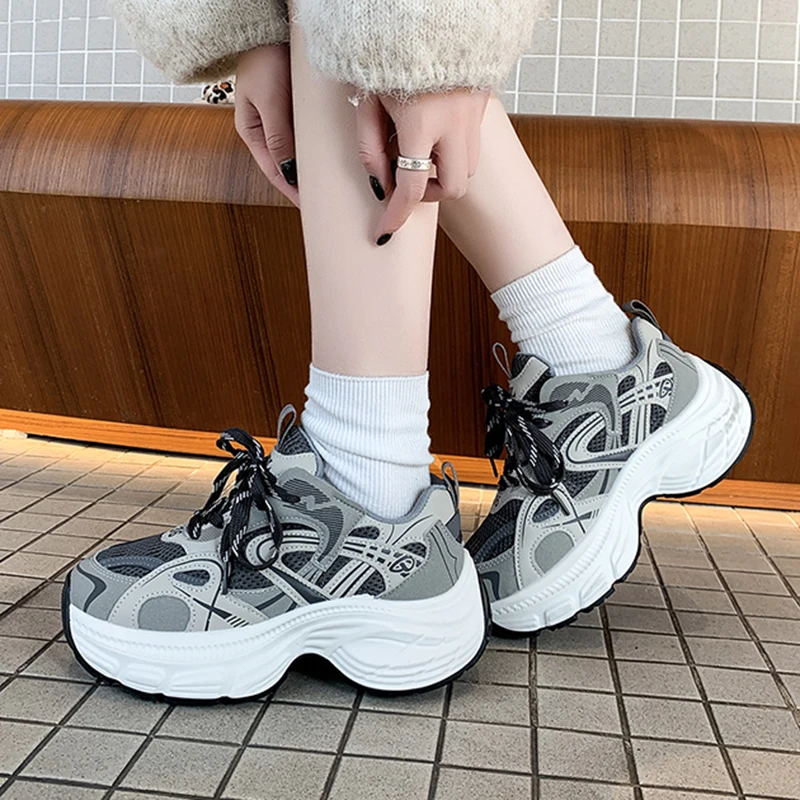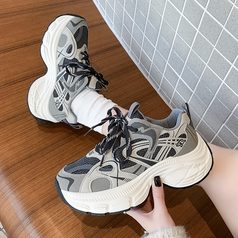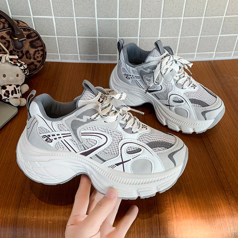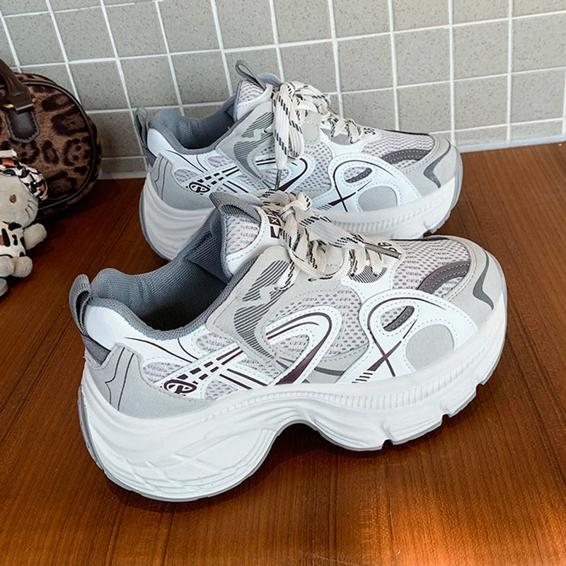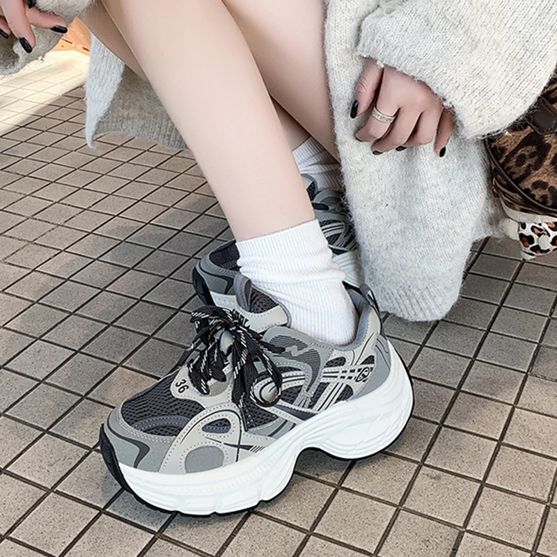 Purpdrank Fashion Platform Women's Sneakers 2025 Spring Lace-Up Thick Bottom Vulcanize Shoes Woman Comfort Breathable Sports Shoes Ladies