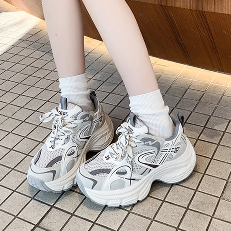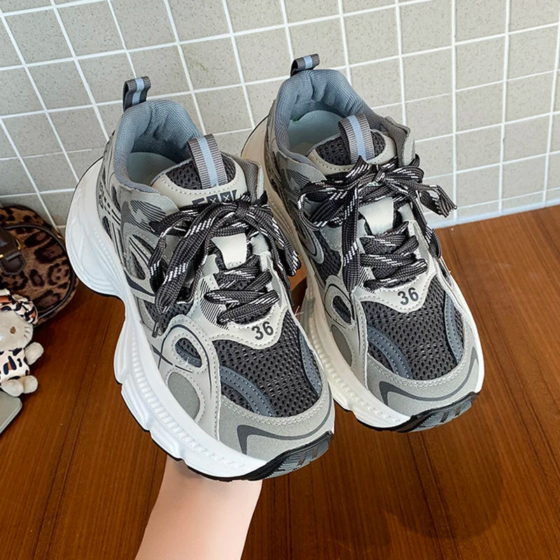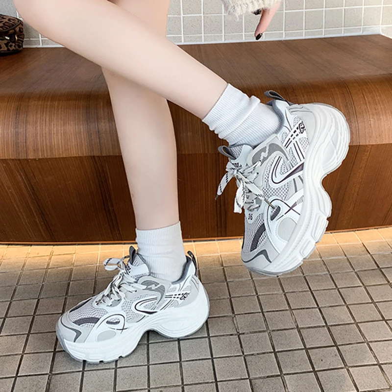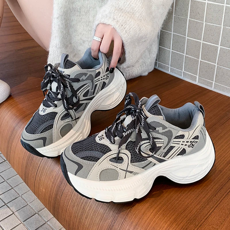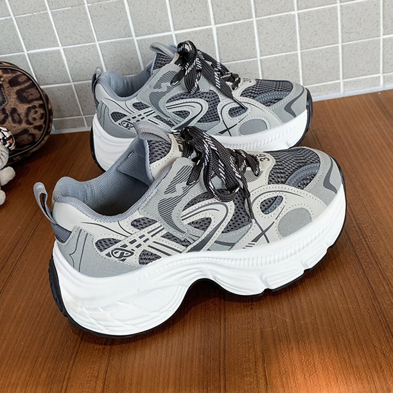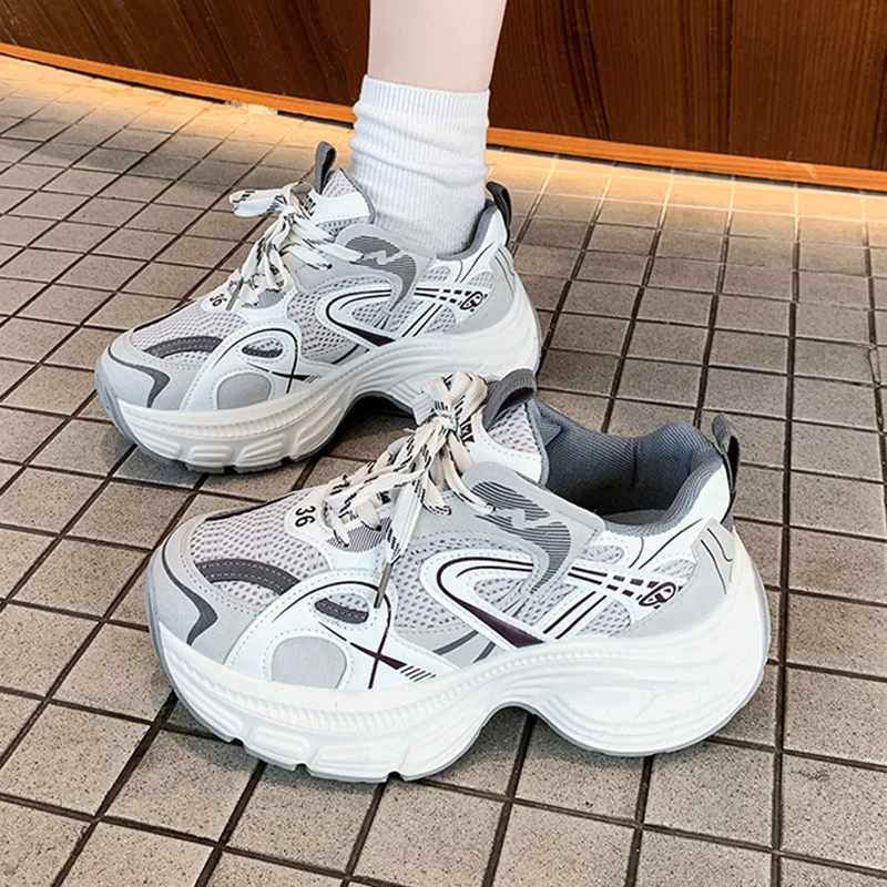 Purpdrank Fashion Platform Women's Sneakers 2025 Spring Lace-Up Thick Bottom Vulcanize Shoes Woman Comfort Breathable Sports Shoes Ladies