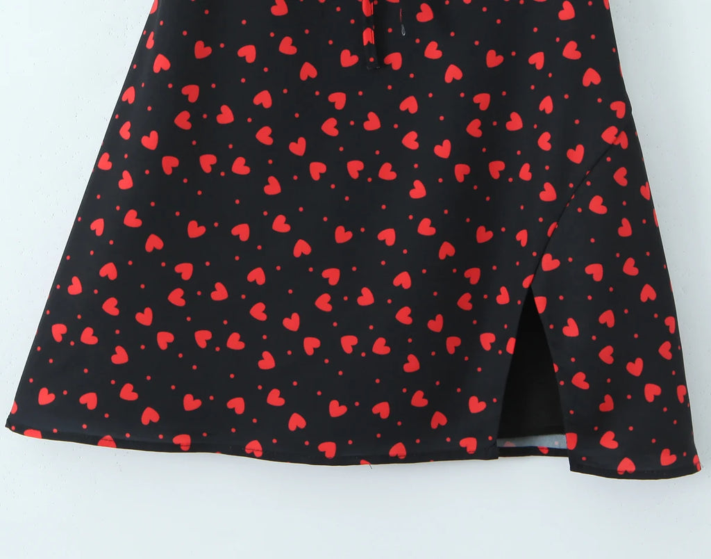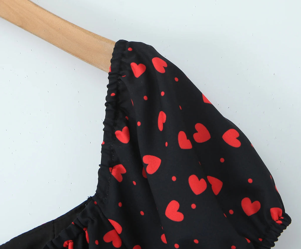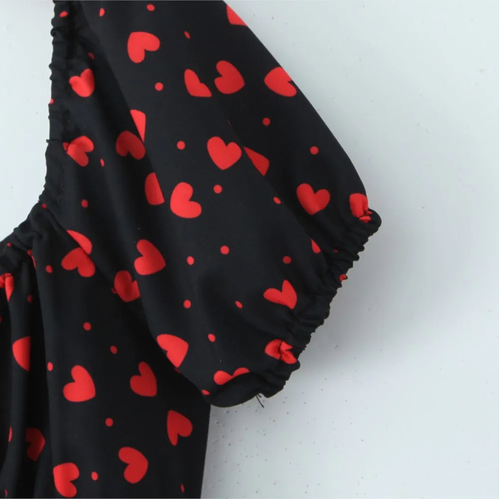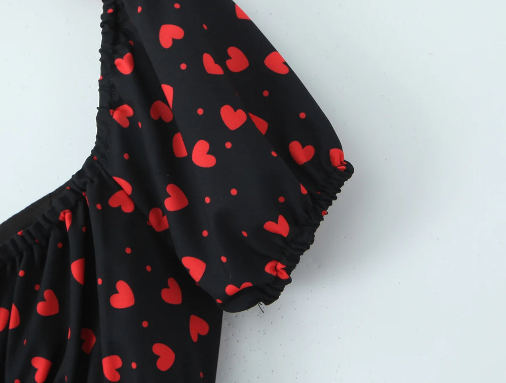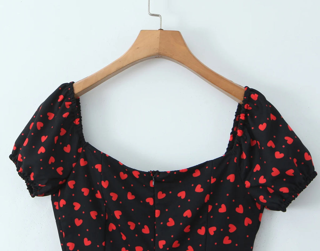 Purpdrank French Retro Black Print Bow Square Collar Short Elastic Puff Dress Women Zipper Back Slim Waist Slit Hem Mini Dresses Robe Blue