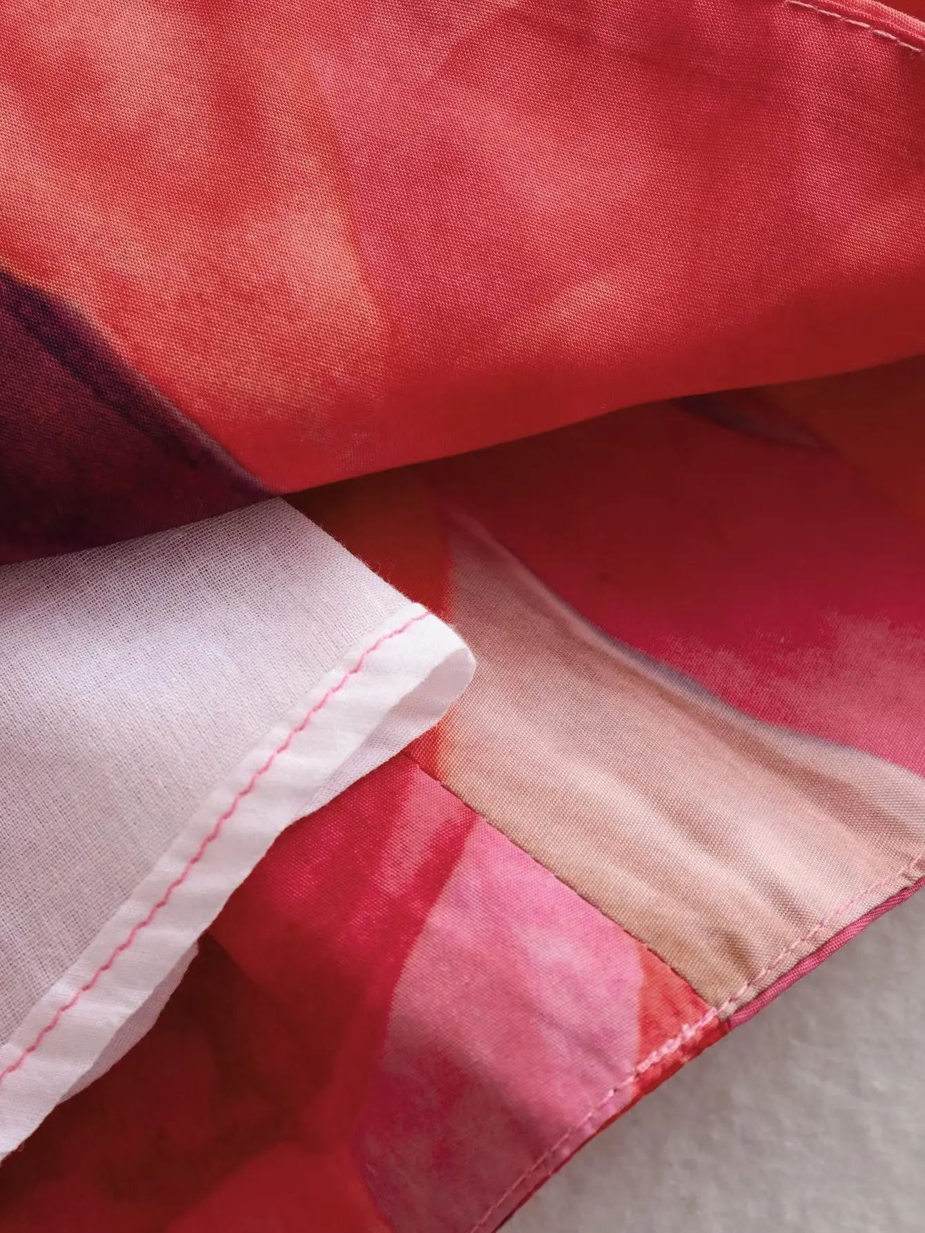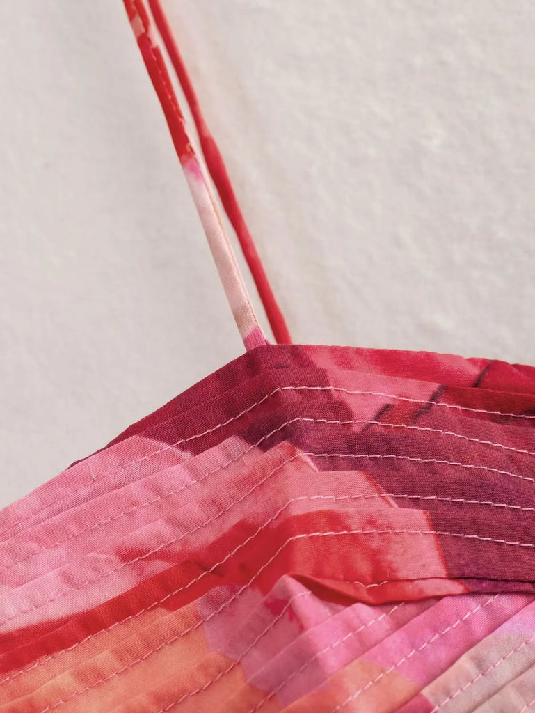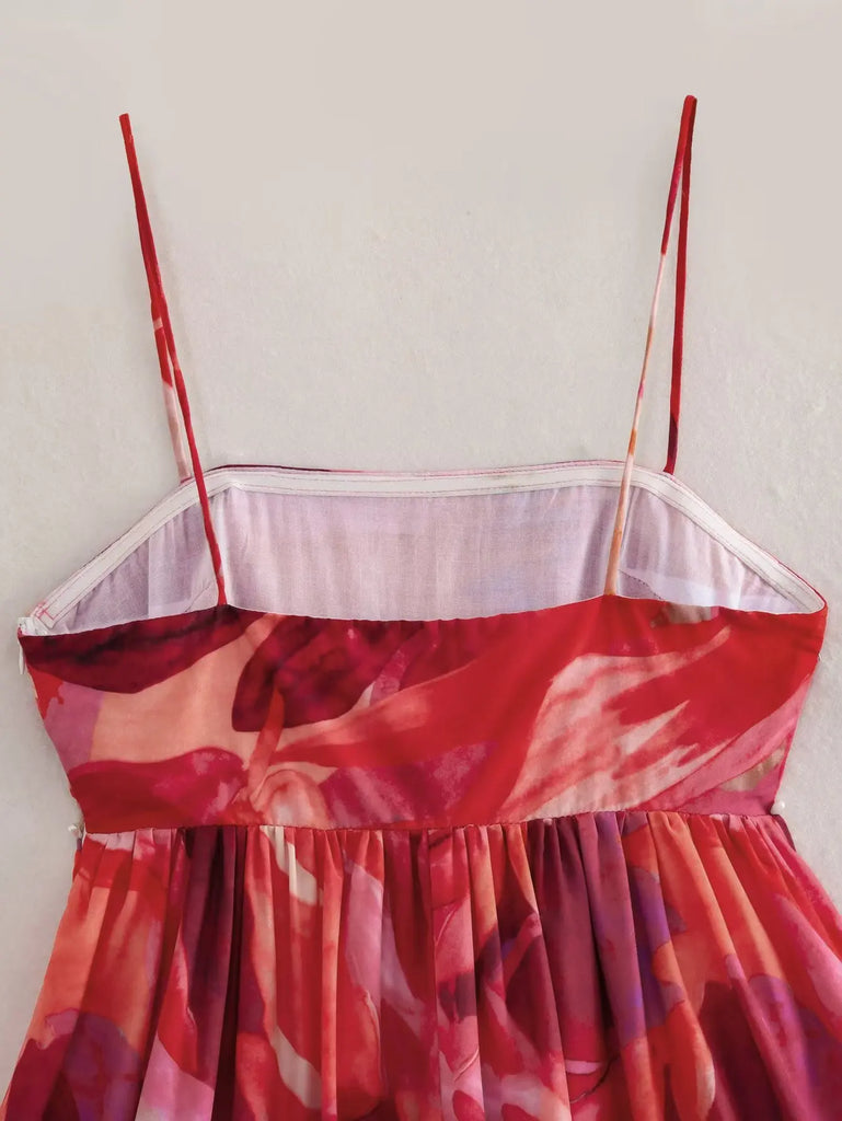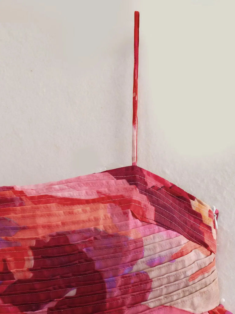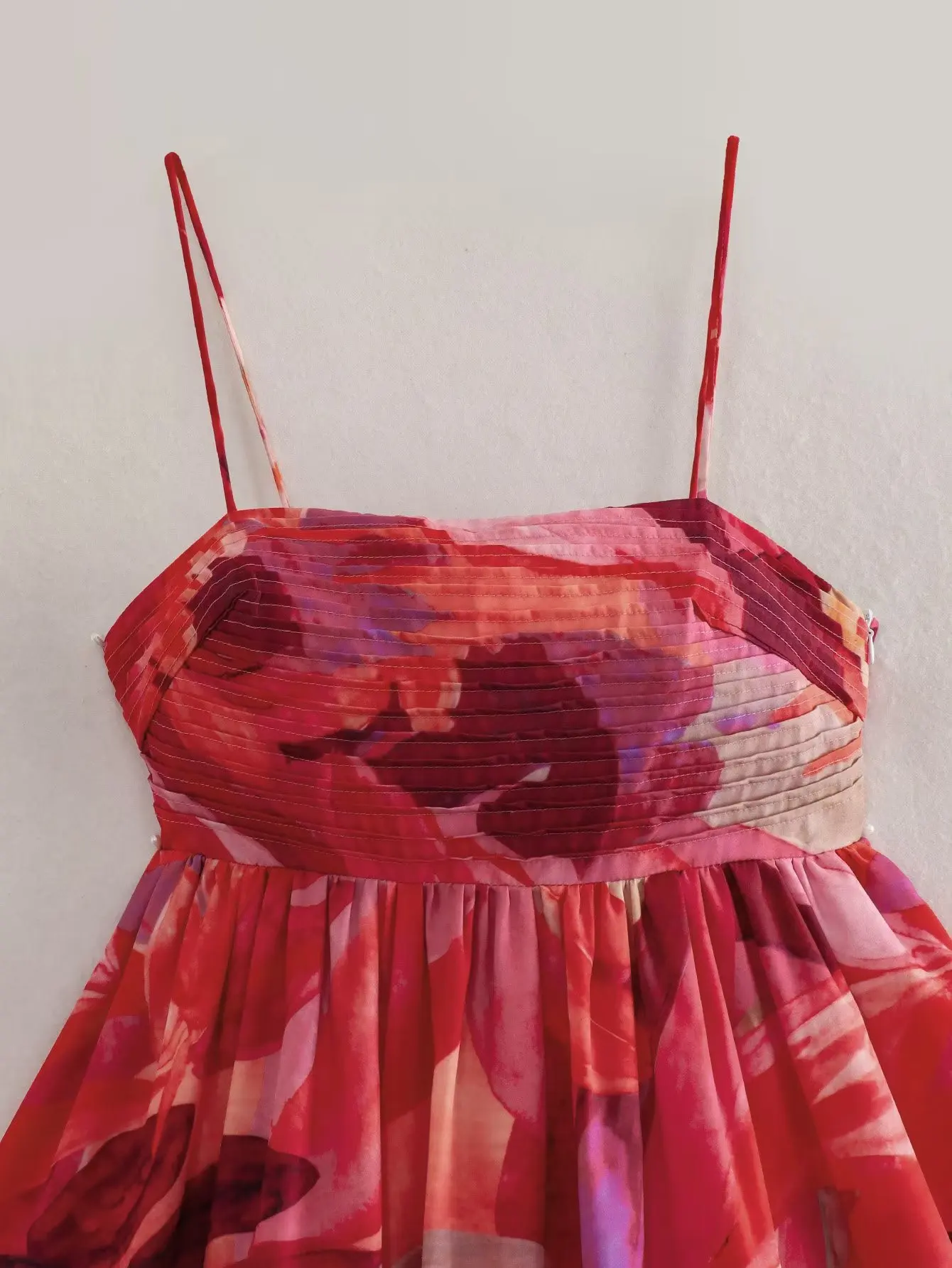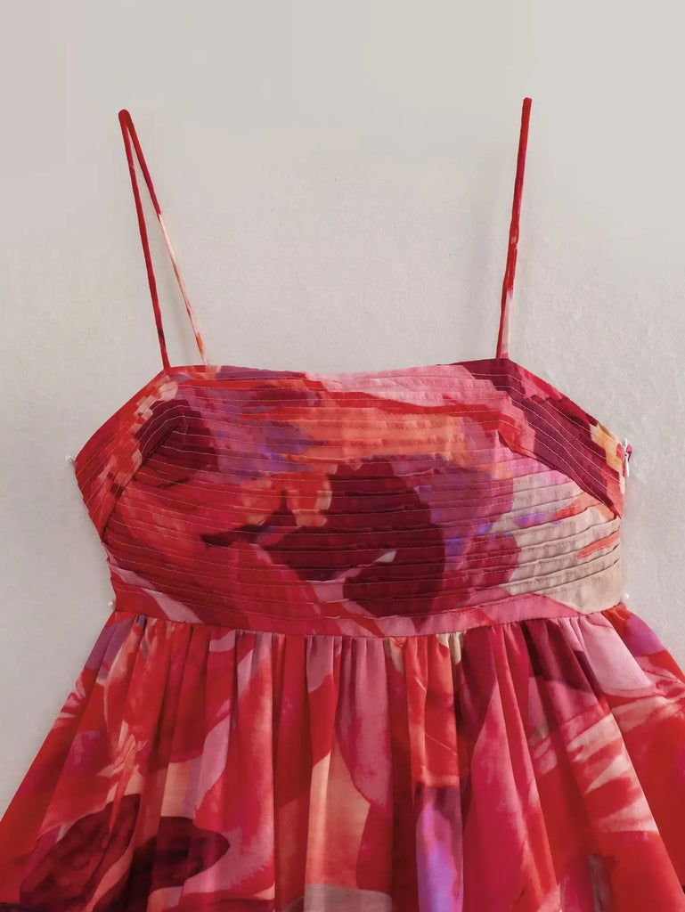 Purpdrank Holiday Tie-dye Flower Print Slash Collar Ruched Chest Mini Sling Dress Sexy Low Back Backless Robe BOHO Summer Vestido