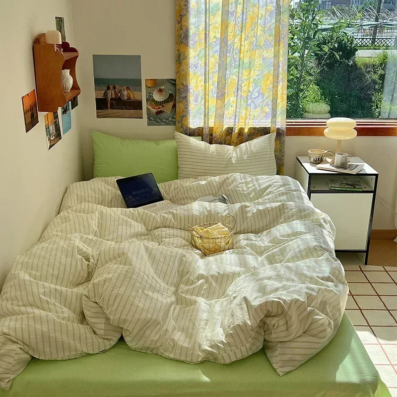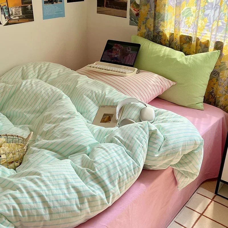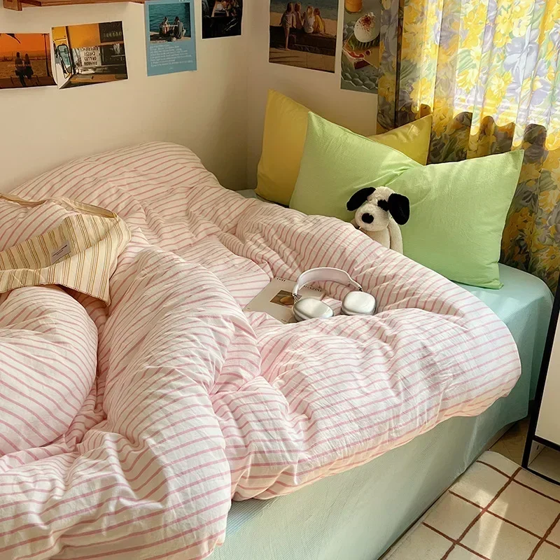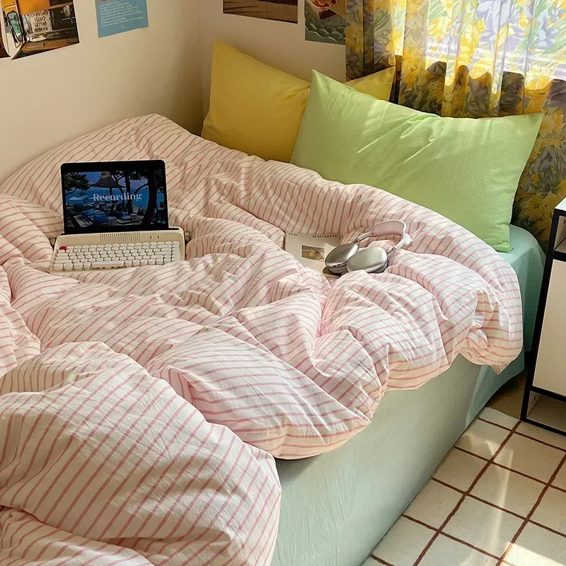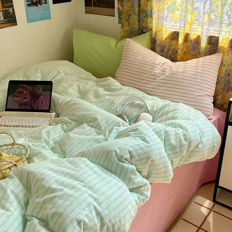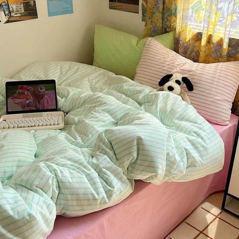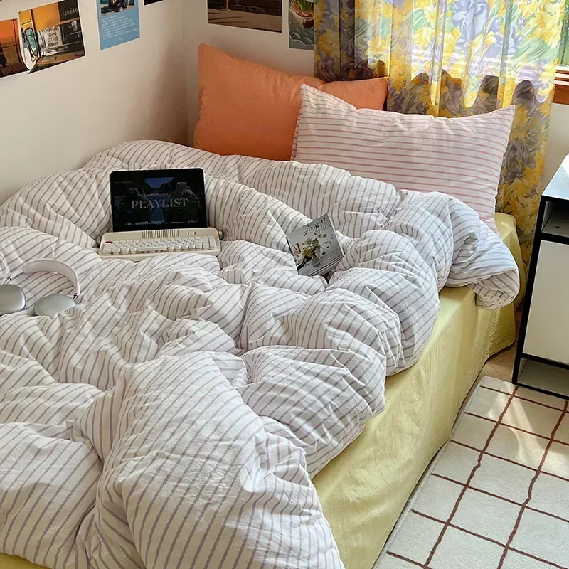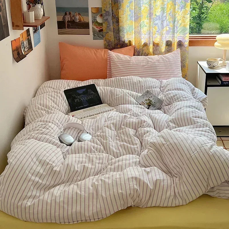 Purpdrank Hot Sale Striped Cotton Bedding Set Soft & Skin-Friendly Duvet Cover Sets Japan and Korea Style Design Bed Linen Set
