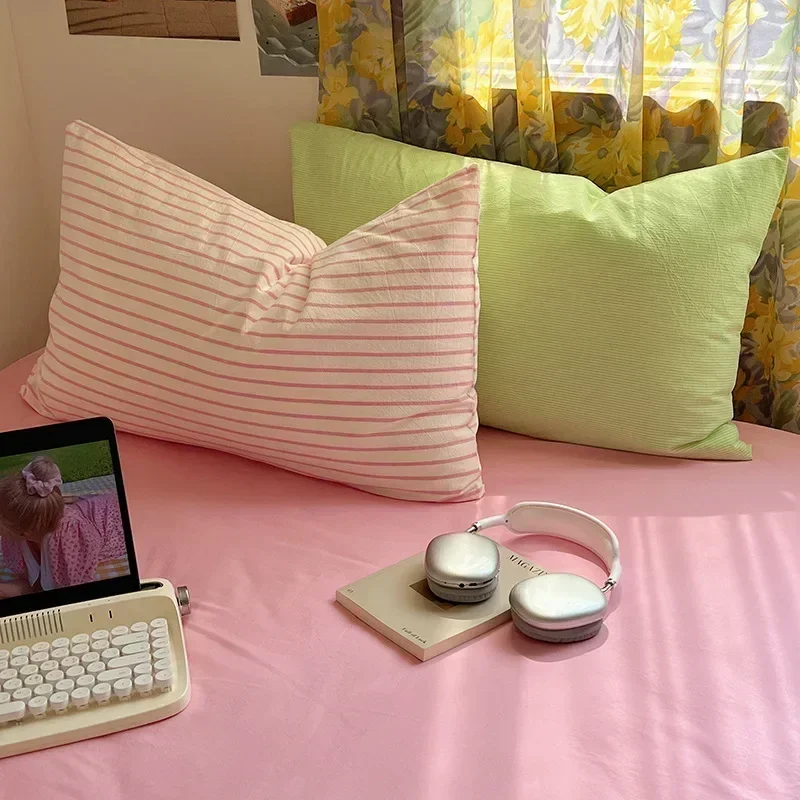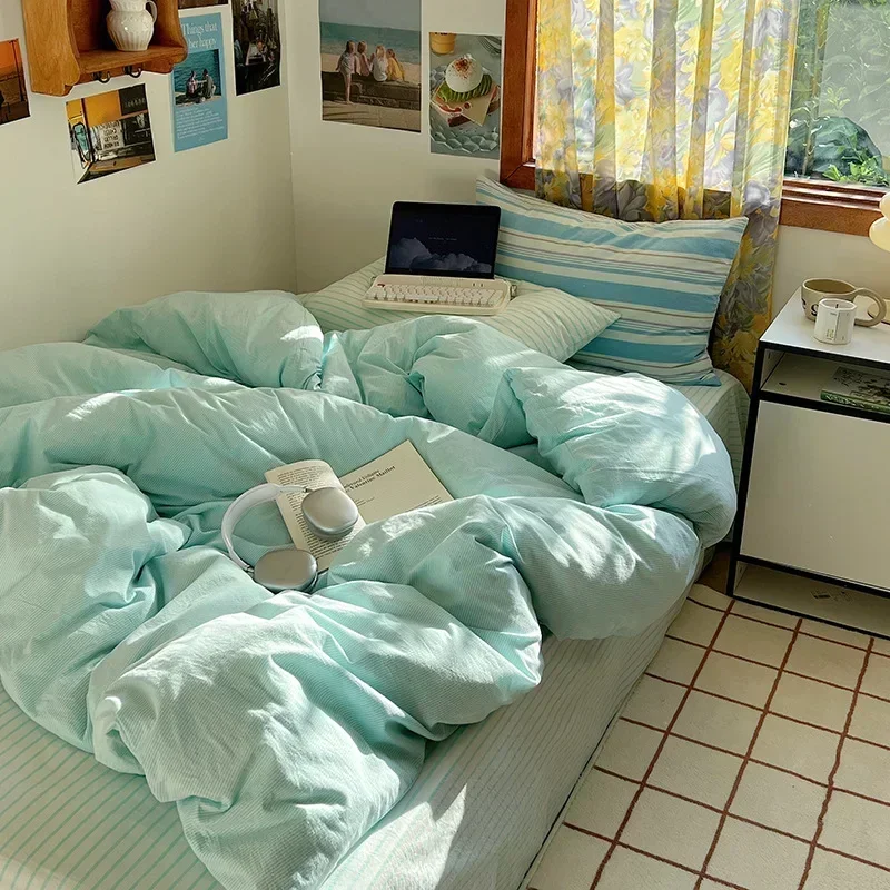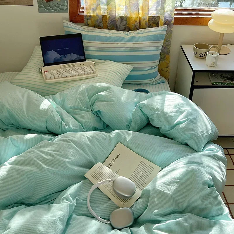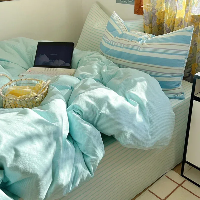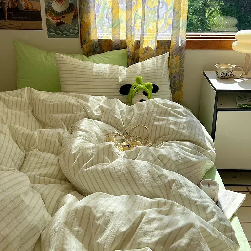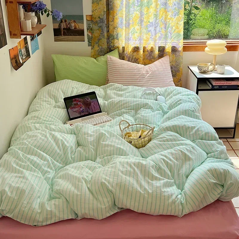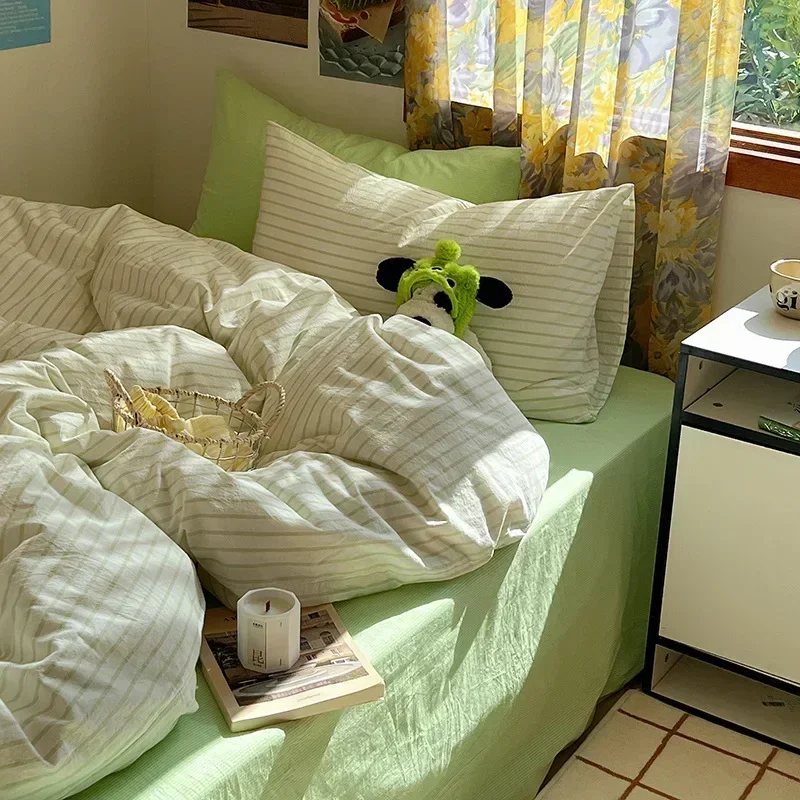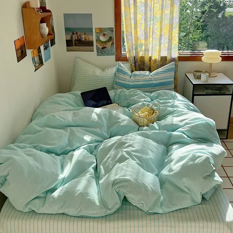 Purpdrank Hot Sale Striped Cotton Bedding Set Soft & Skin-Friendly Duvet Cover Sets Japan and Korea Style Design Bed Linen Set