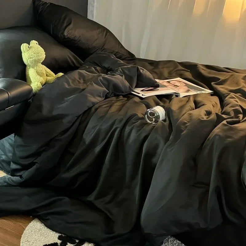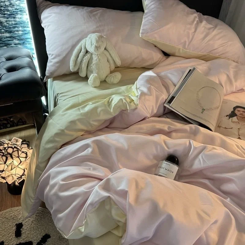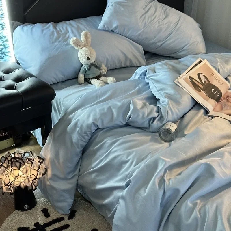 Purpdrank INS Girls Blue Bedding Set - Cooling Ice Silk, Double-Sided (Duvet Cover + Pillowcases & Quilt Cover) Summer Comfort
