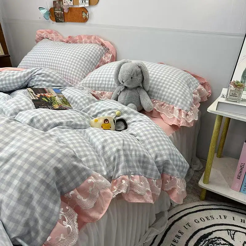 Purpdrank Ins Princess Bedding Set Latticed Simple Elegant Skirt Bed Sheet Set With 2 Pillowcases Queen Size For Women Teens Bedcloths