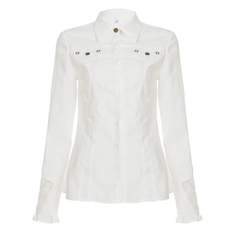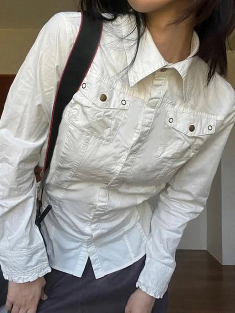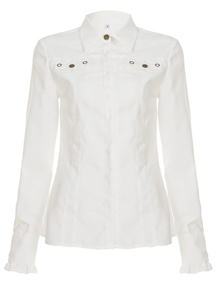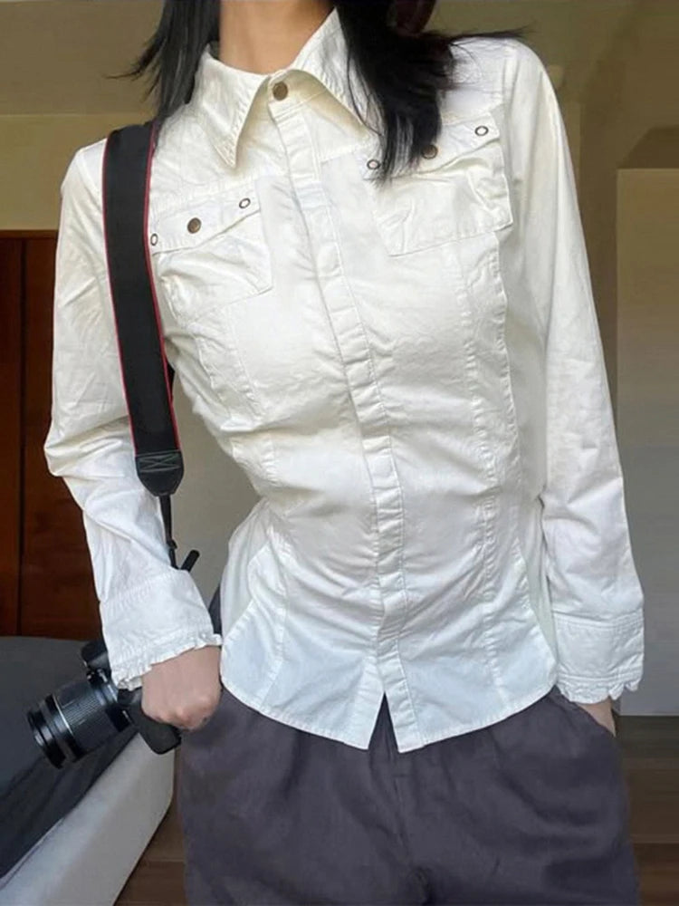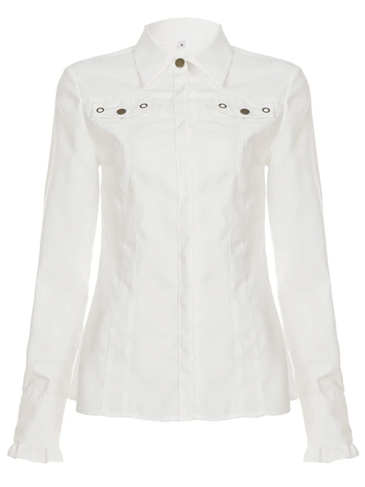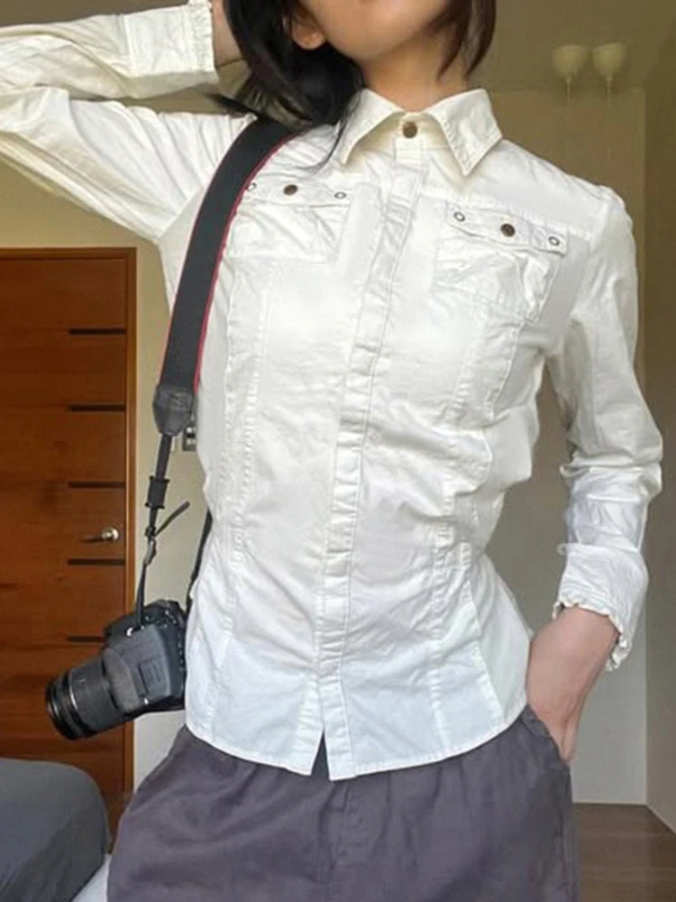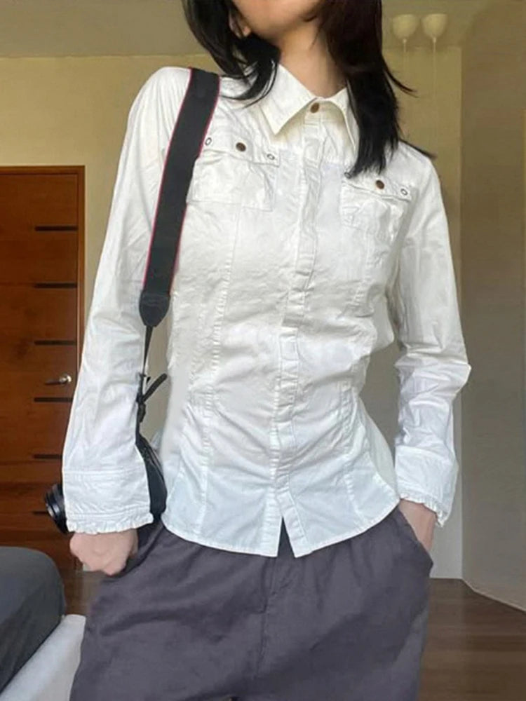 Purpdrank Japanese Unisex Long Sleeve Solid Slim Edible Tree Fungus Pockets Women Shirt