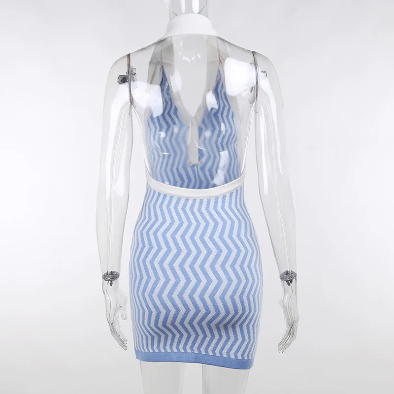 Purpdrank Knit 2025 Summer Bodycon Dress Women Blue Backless V Neck Beach Sleeveless Off Shoulder Mini Sexy Dresses Party