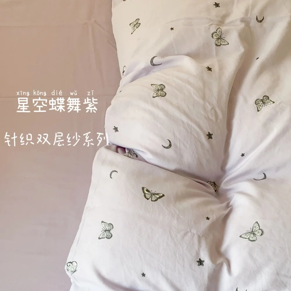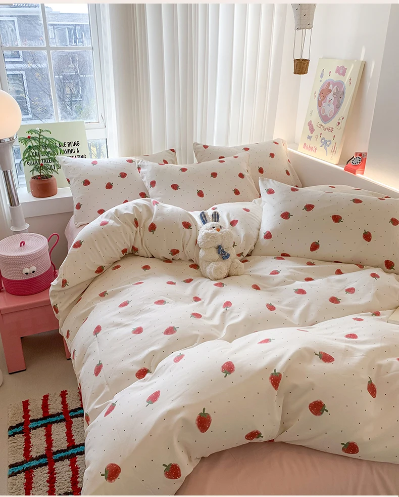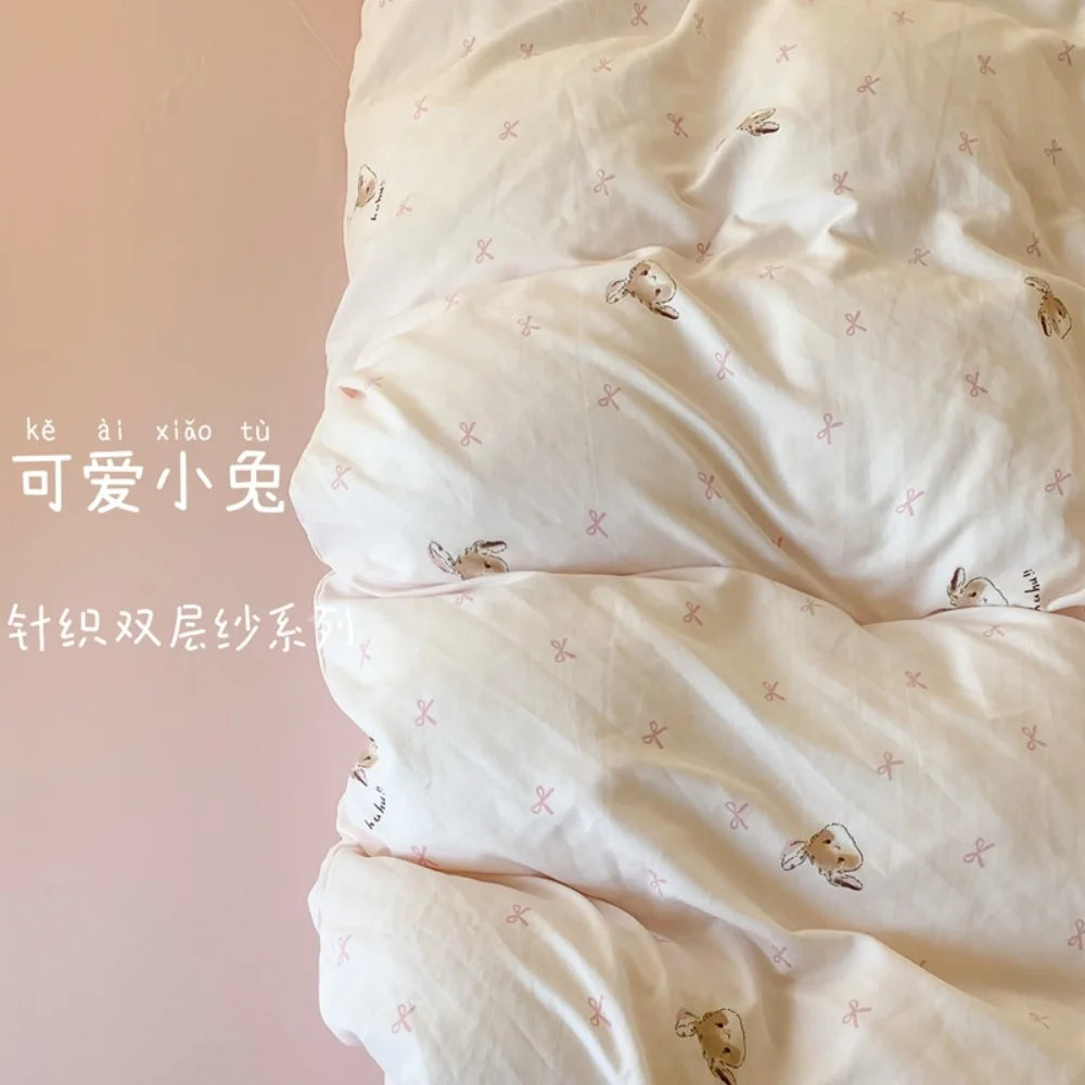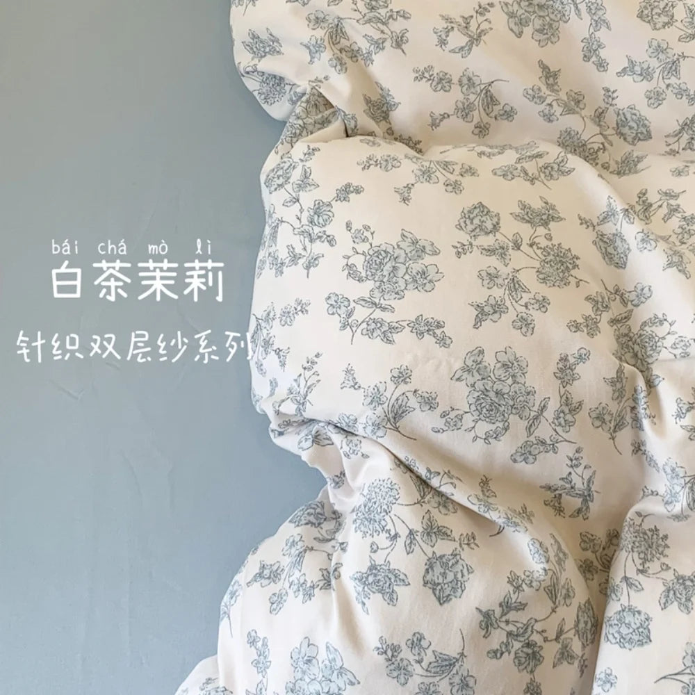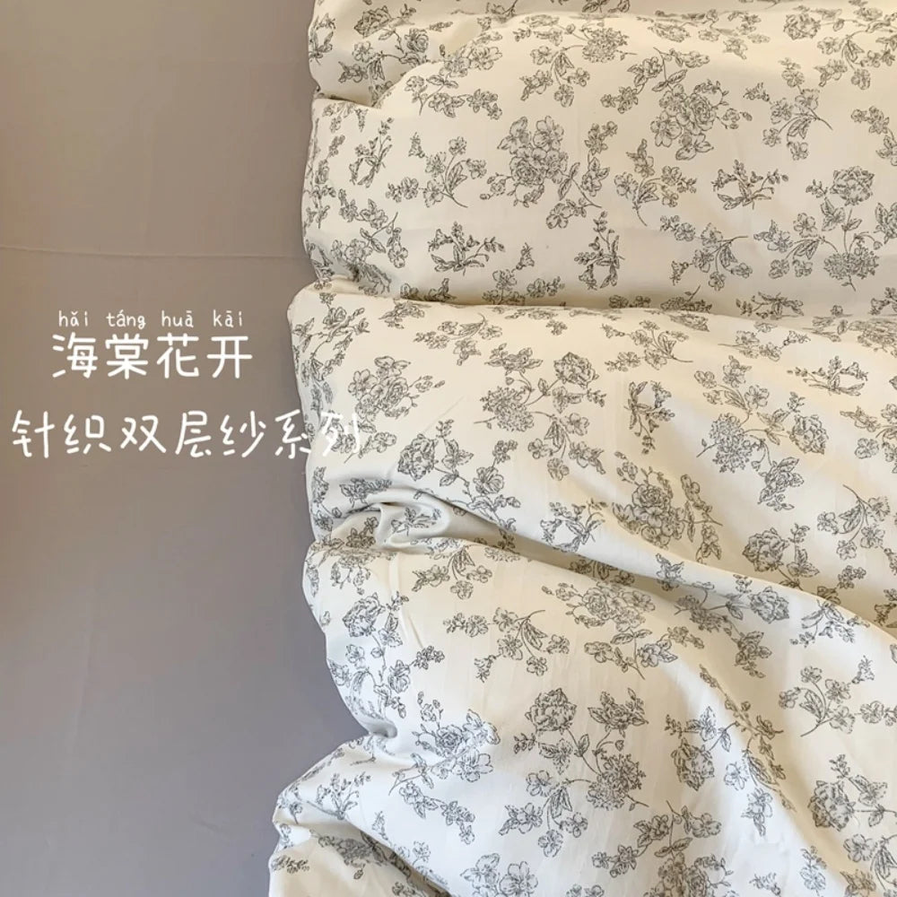 Purpdrank Knitted Class A Bedding Set Floral Style Bed Linen Set Soft Double Yarn Four-Piece Set Quilt Cover Set Bed Sheets Gift for Home