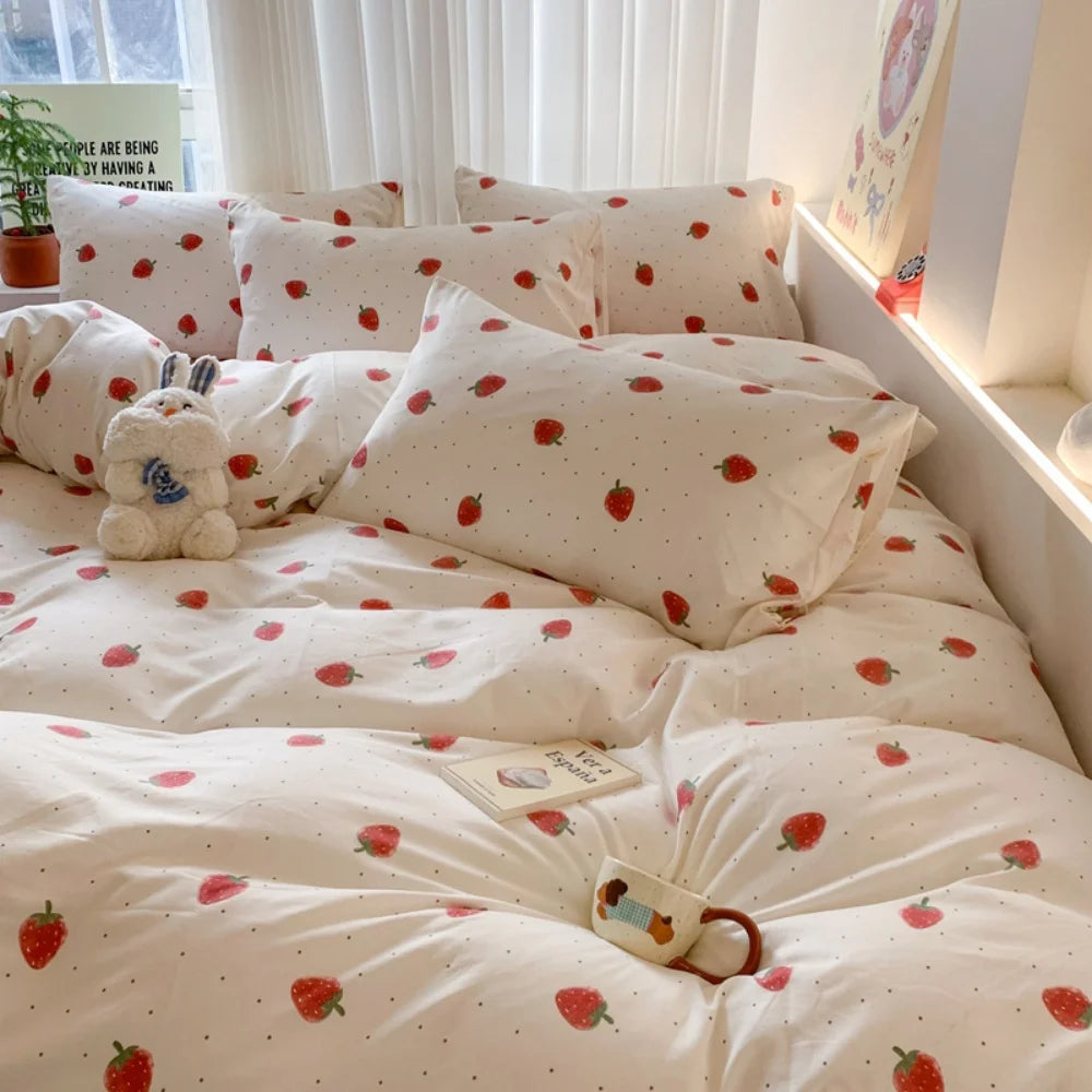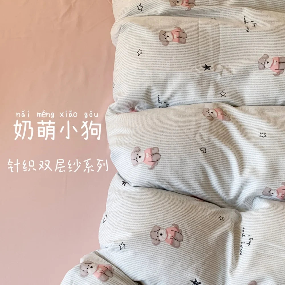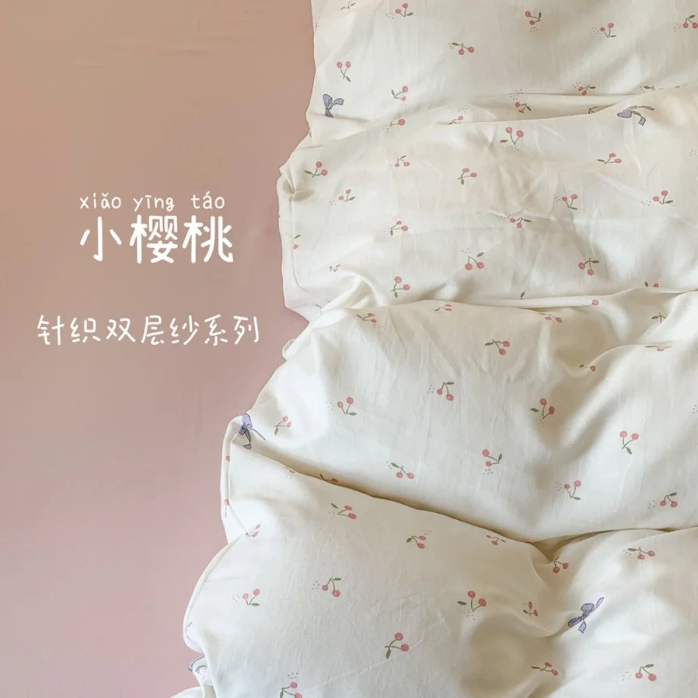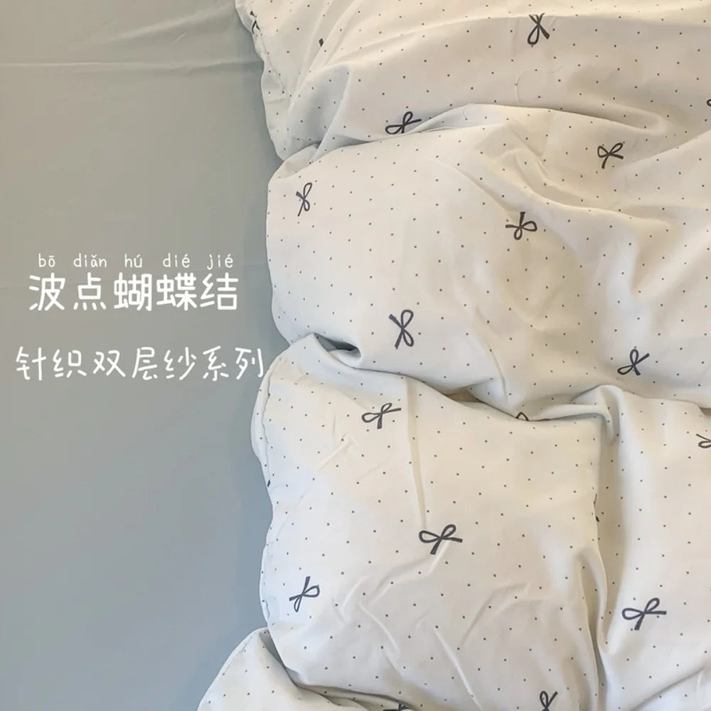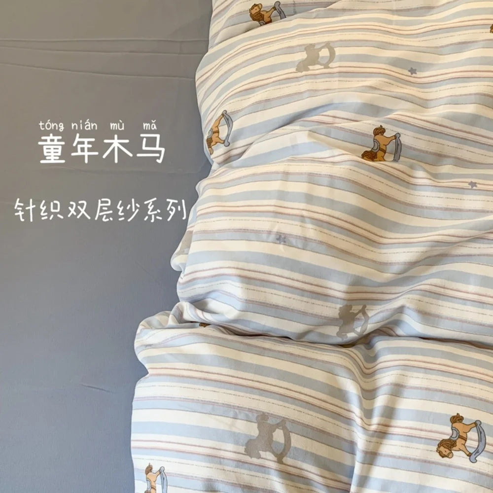 Purpdrank Knitted Class A Bedding Set Floral Style Bed Linen Set Soft Double Yarn Four-Piece Set Quilt Cover Set Bed Sheets Gift for Home