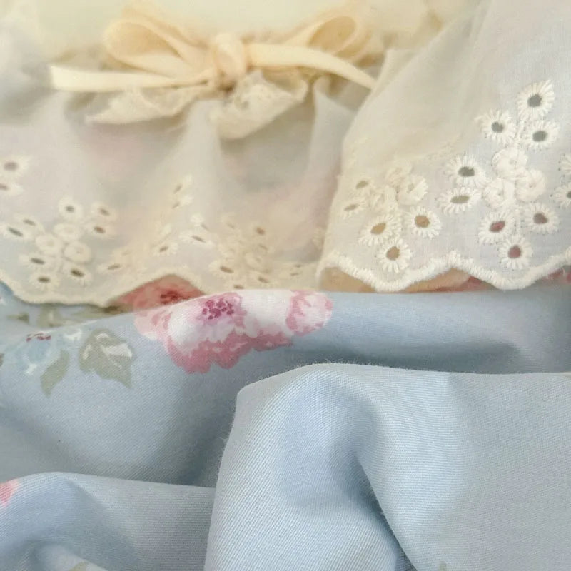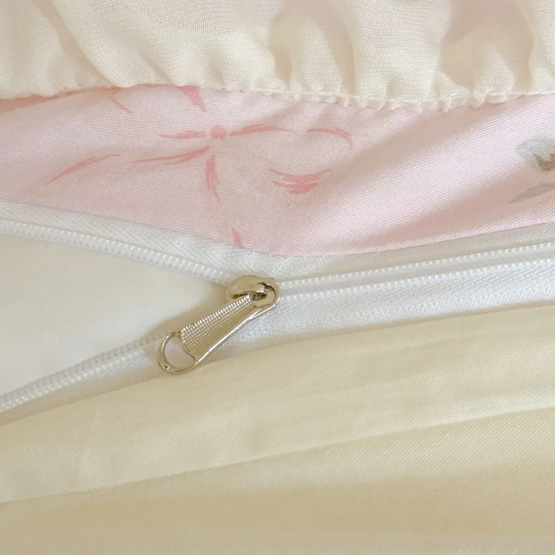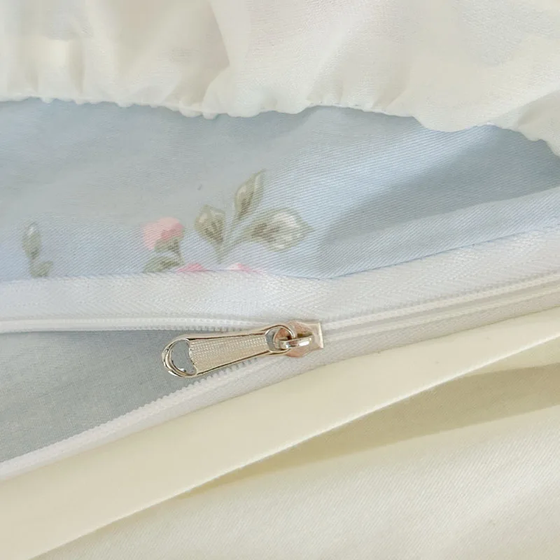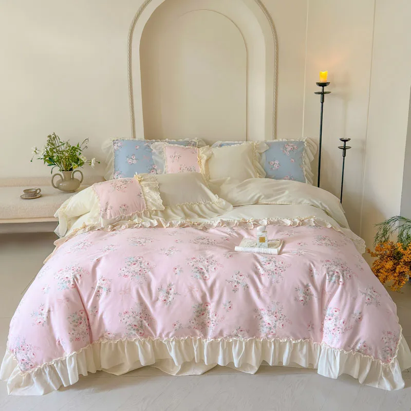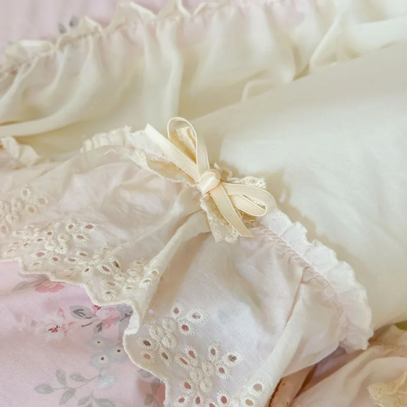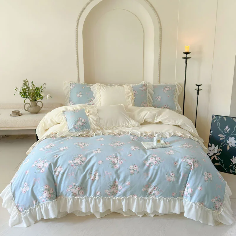 Purpdrank Korean Princess Style Flowers Lace Ruffles 100% Cotton Bedding Set Duvet Cover Bed Sheet/Fitted Sheet/Bed Skirt Pillowcases 4Pcs