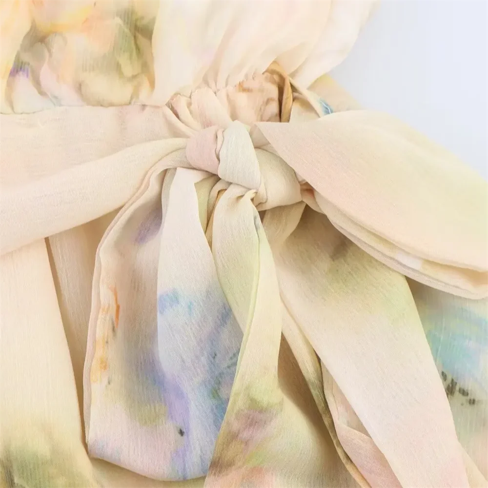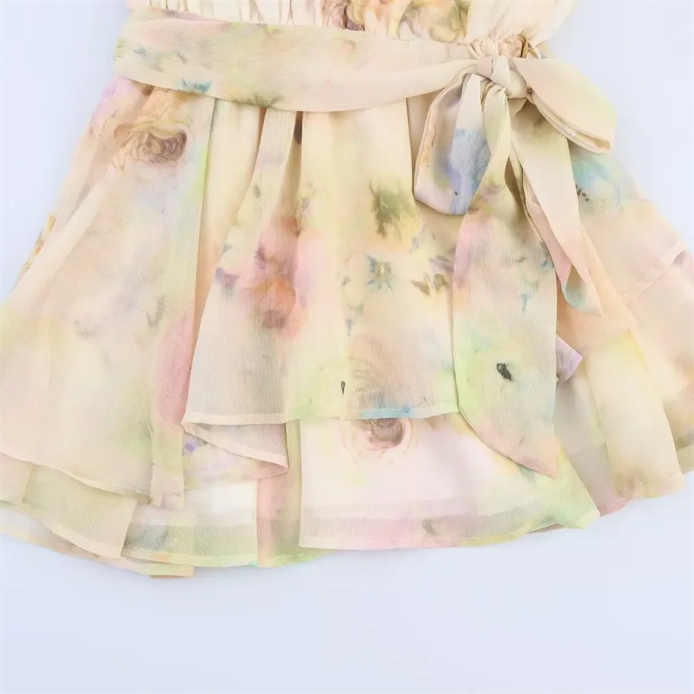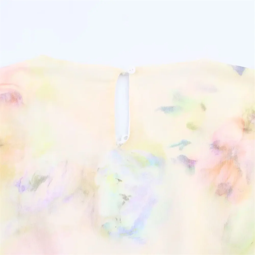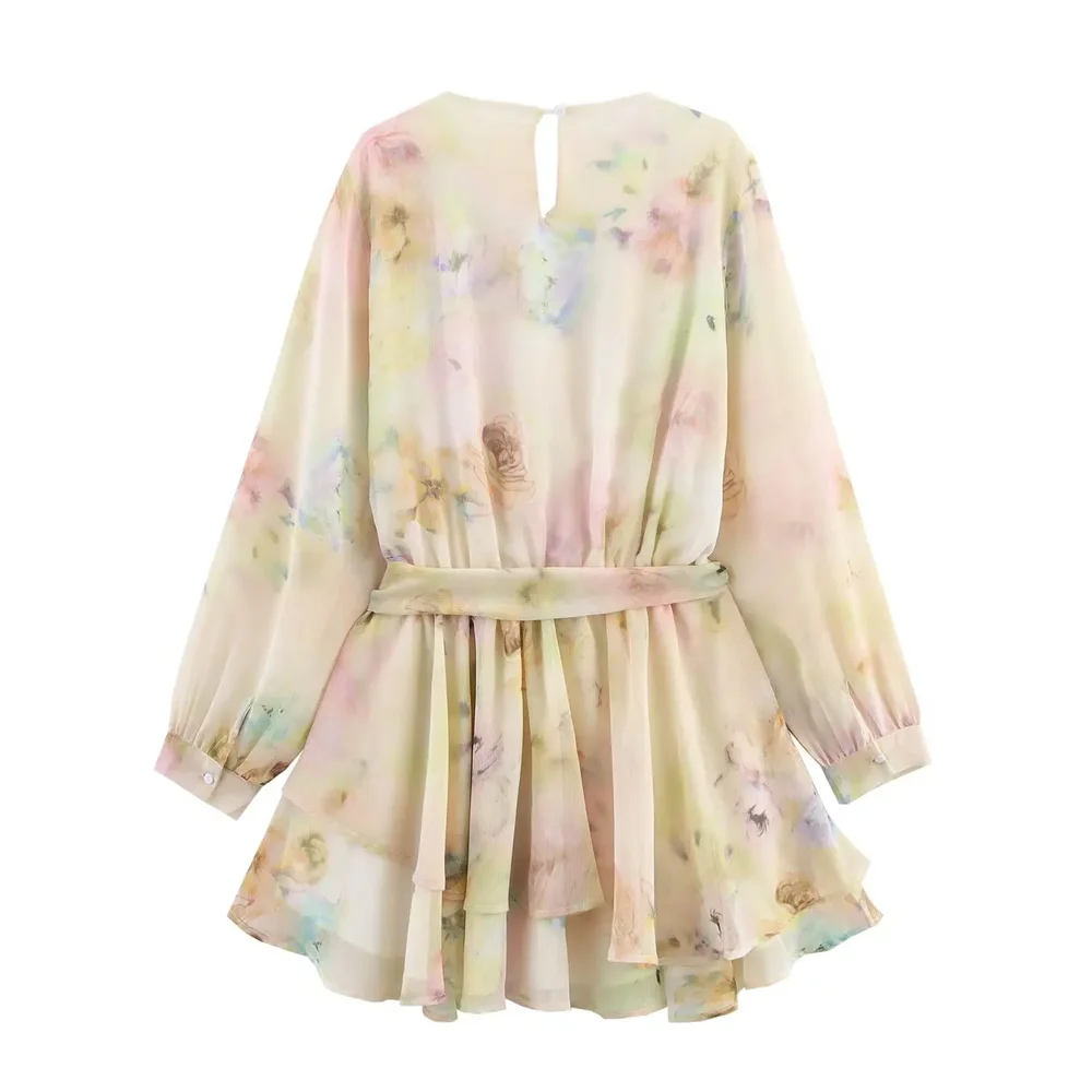 Purpdrank Lace stitching round neck long sleeve loose sweet style A-line dress short skirt summer new women's clothing
