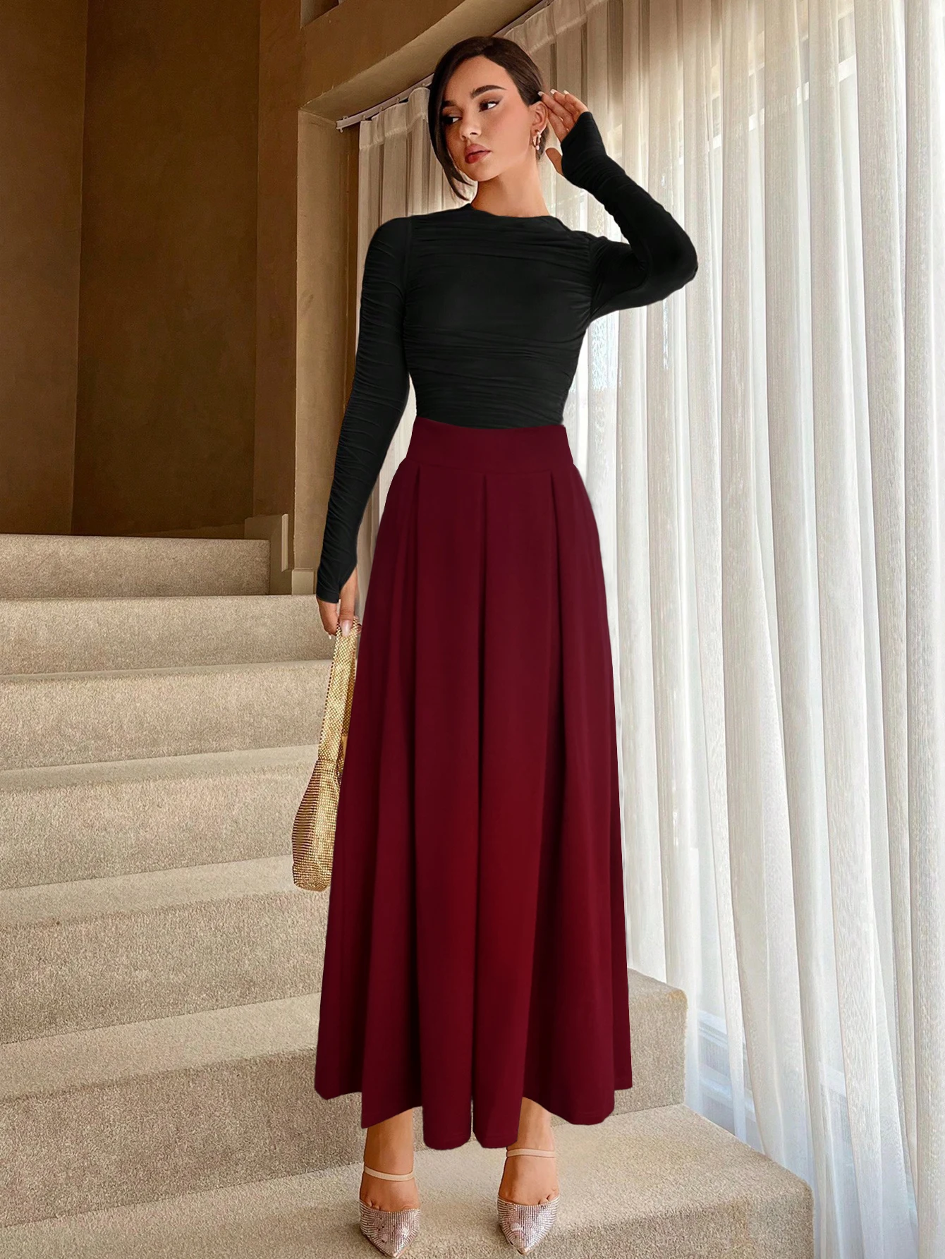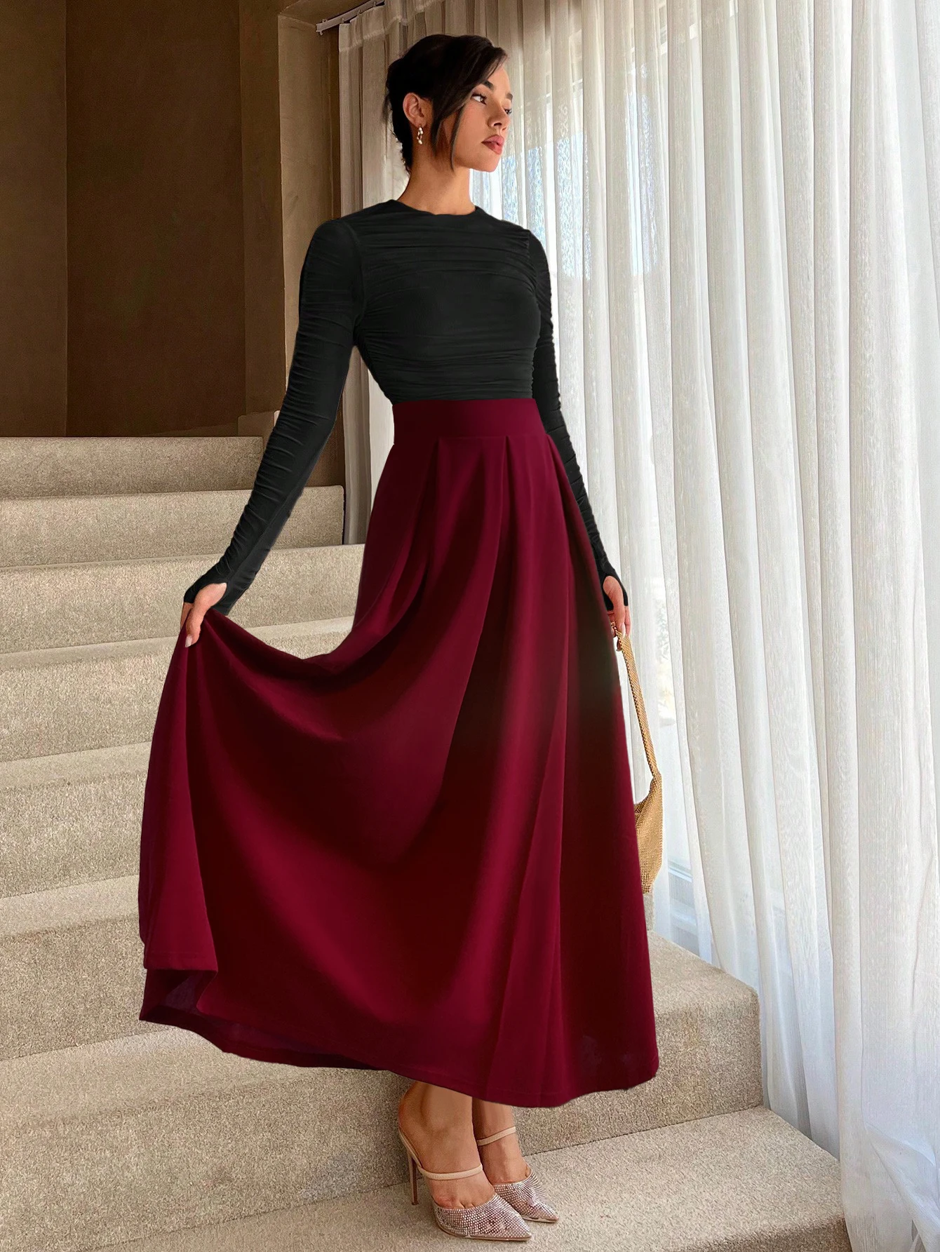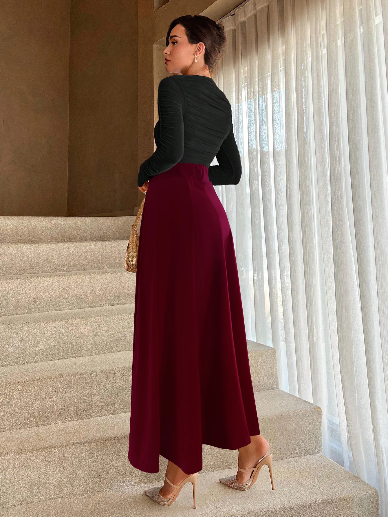 Purpdrank Ladies' spring/summer solid color elegant and dignified simple office casual loose elastic waistband mid length skirt