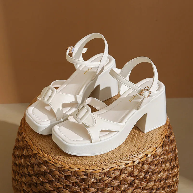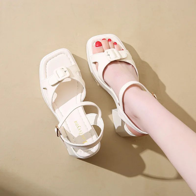 Purpdrank Large Size Buckle Female Sandal Comfort Shoes for Women Clogs With Heel 2025 Summer Big Girls Beige Low Thick Block Strap New