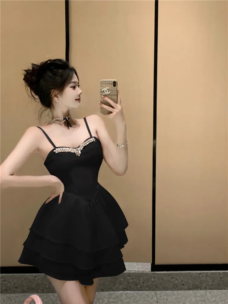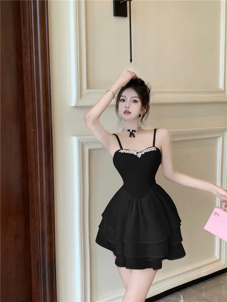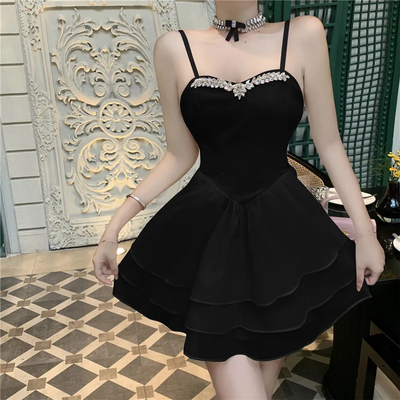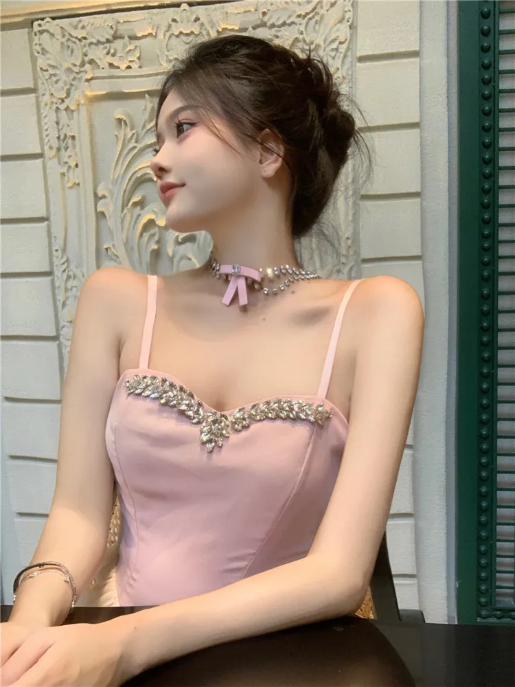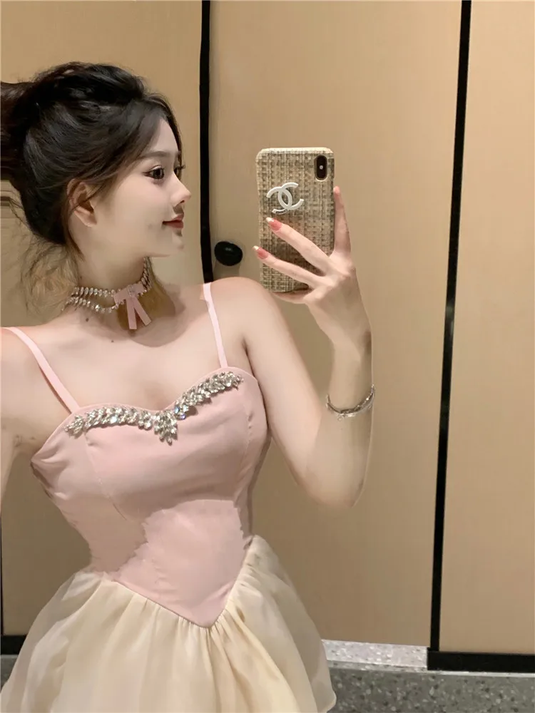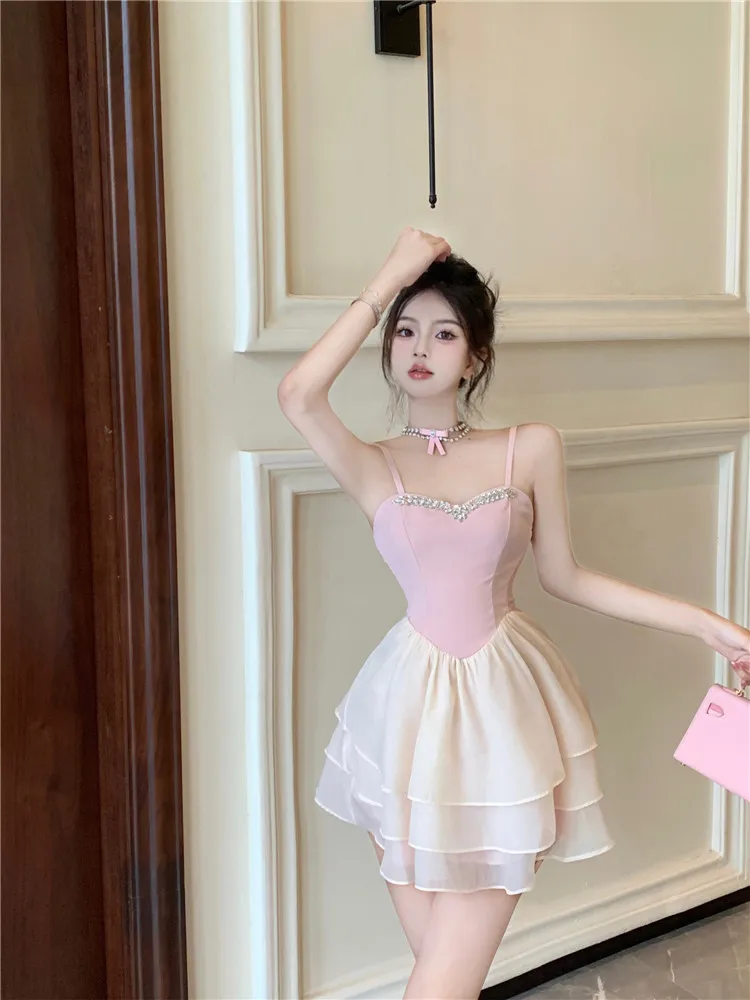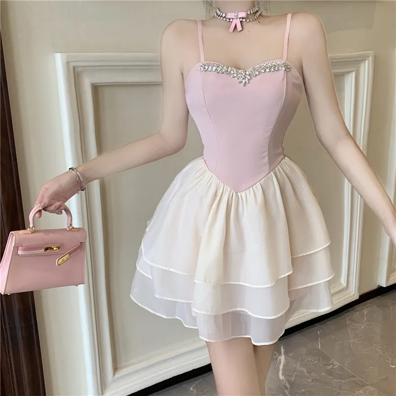 Purpdrank Lolita Sweet and Sexy Little Ballet Dress Fashion Suspender Strap Beads Pink Mini Dress Women New A Line Cake Short Skirt