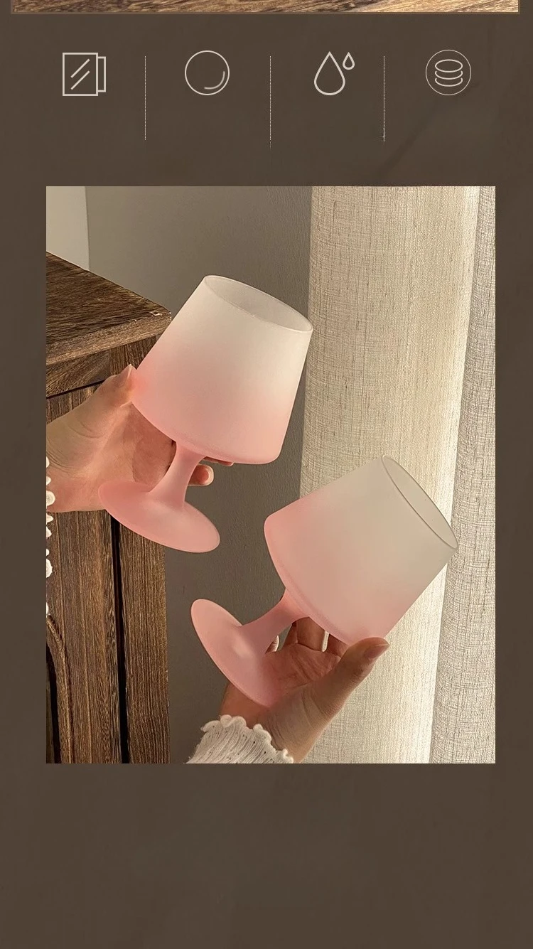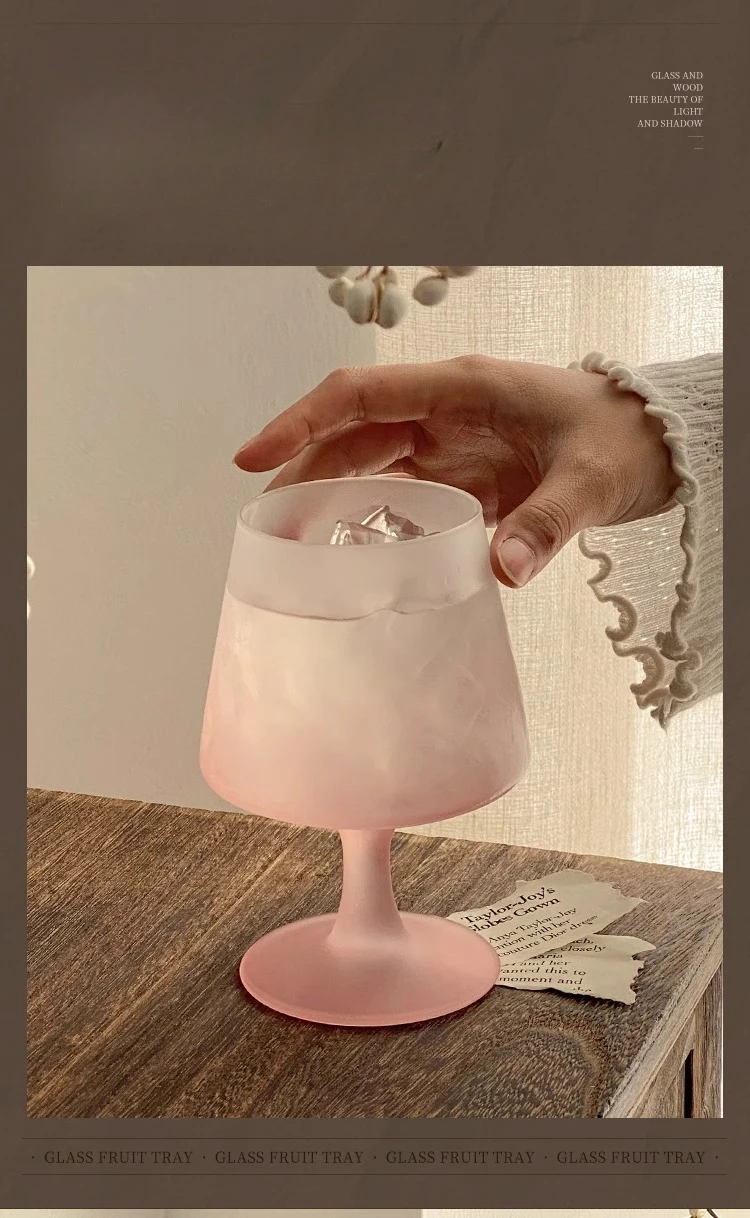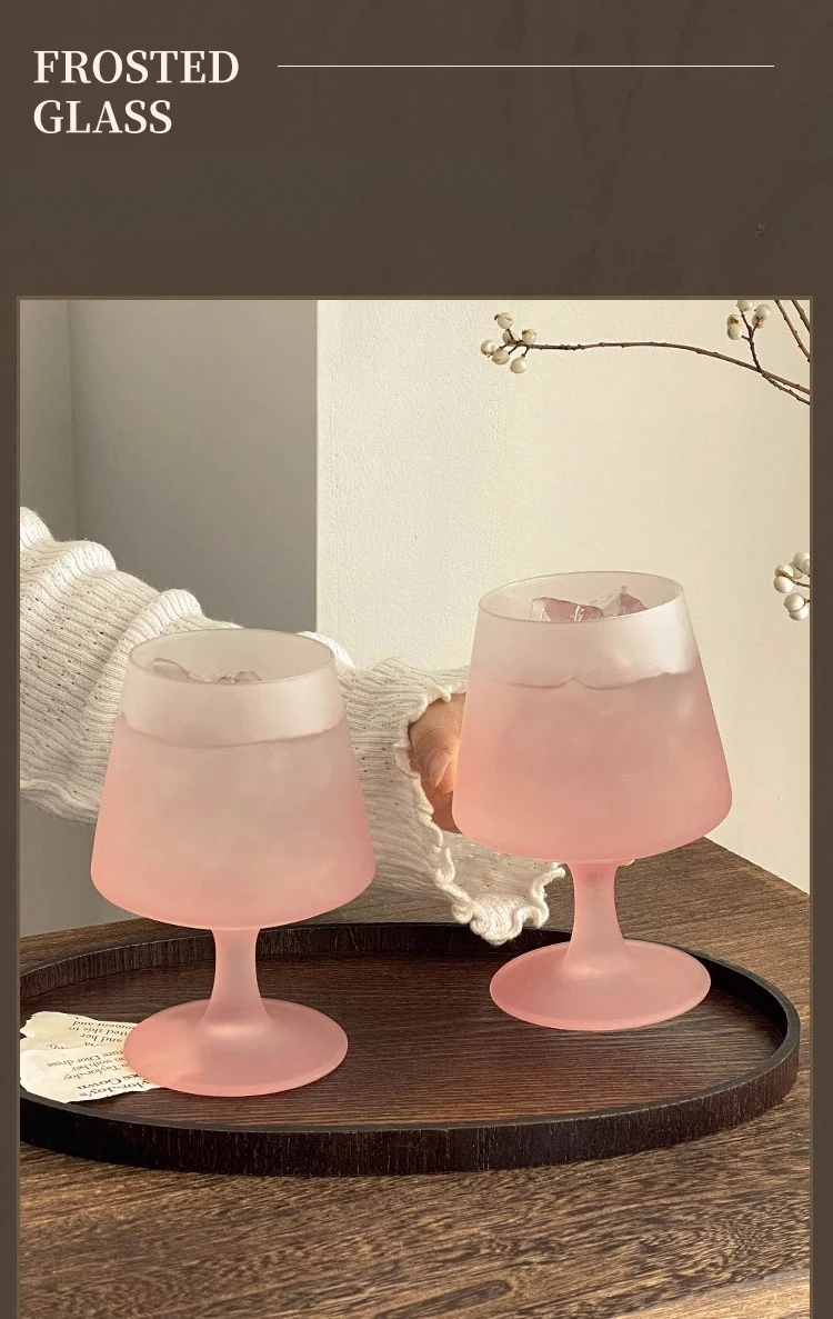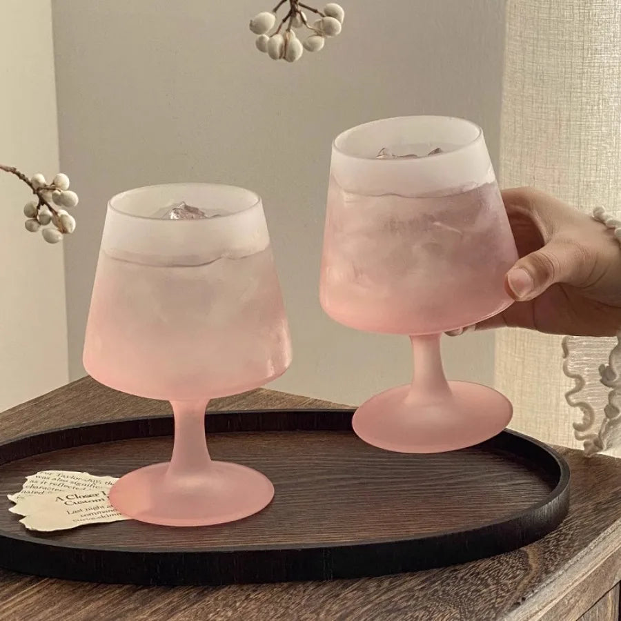 Purpdrank  Matte Glass High Footed Glass French Gradient Pink Party Champagne Cocktail Glass Bar Atmosphere Design Wine Glasses Gifts