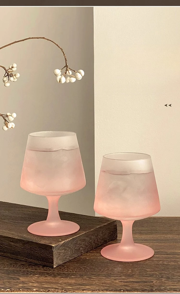Purpdrank Matte Glass High Footed Glass French Gradient Pink Party Champagne Cocktail Glass Bar Atmosphere Design Wine Glasses Gifts