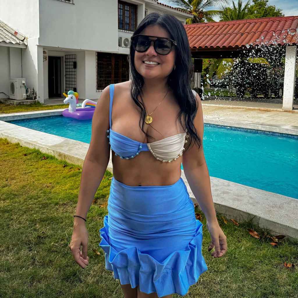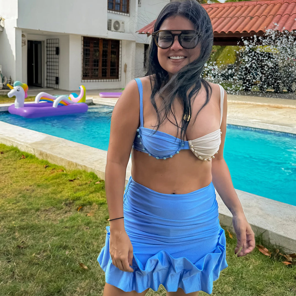 Purpdrank New 3Pcs Pearl Bikini Sexy Swimsuit Women Swimwear Female Floral Biquini Mini Skirt Push Up Bathing Suits Bodysuit Beachwear