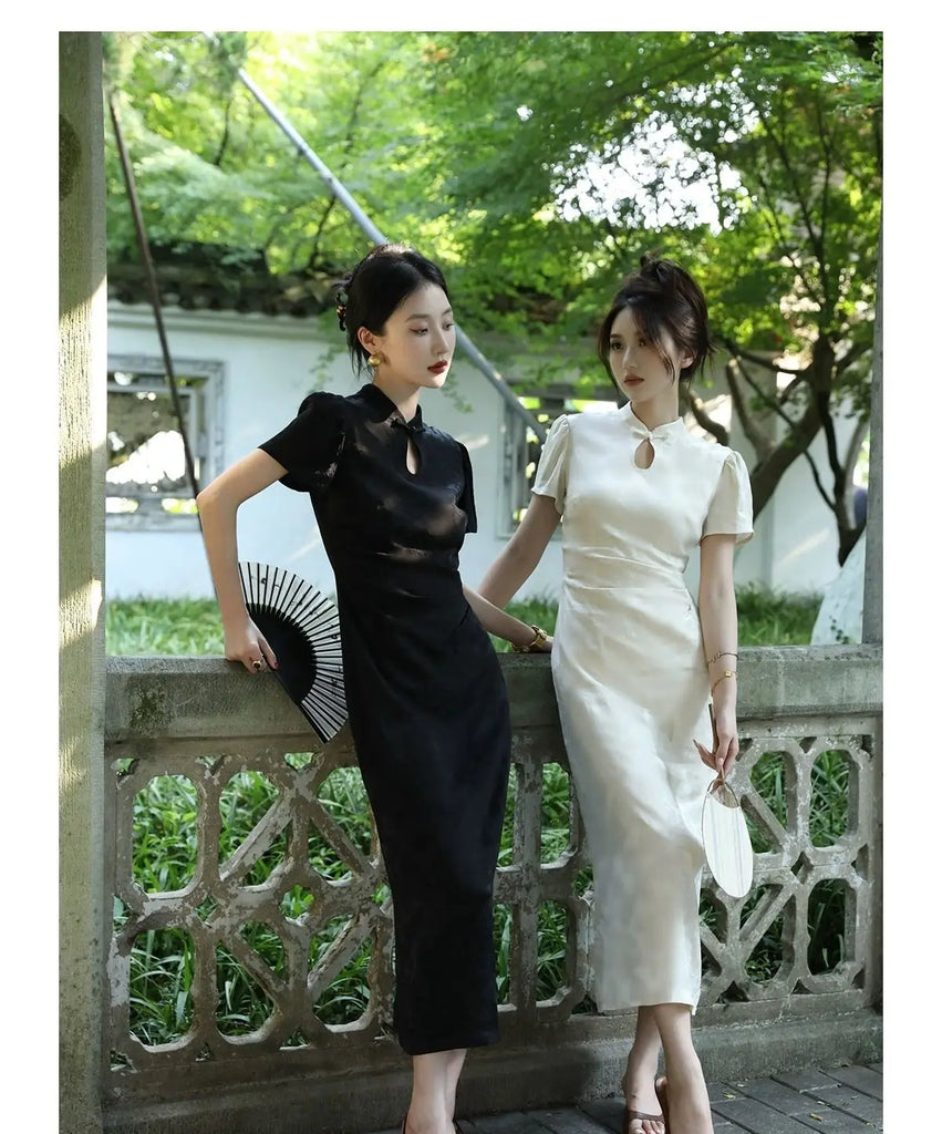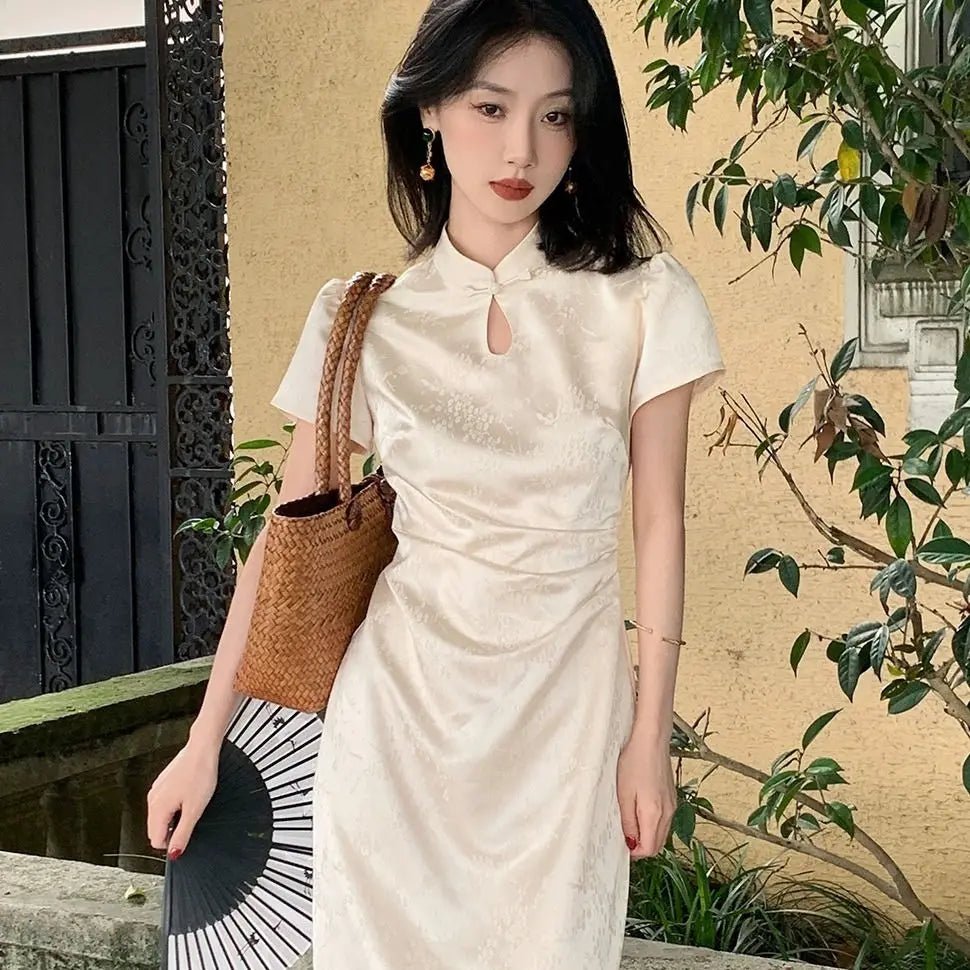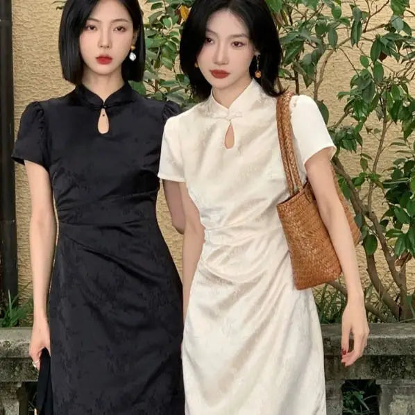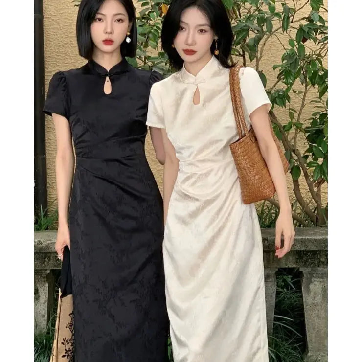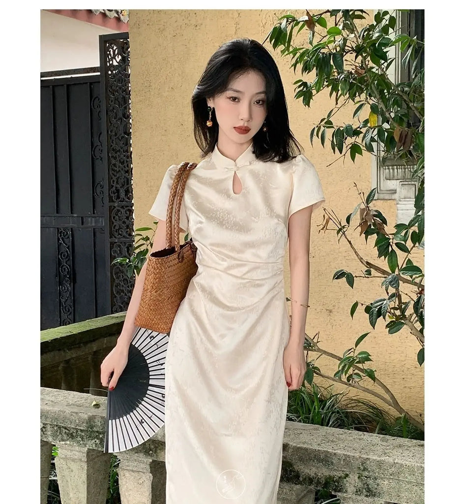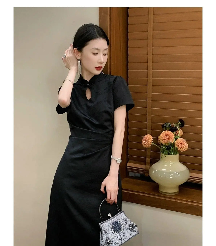 Purpdrank New Chinese Style Waistband Slimming And Improved Qipao Summer Dress New Women Short Sleeve Long Patry Dress