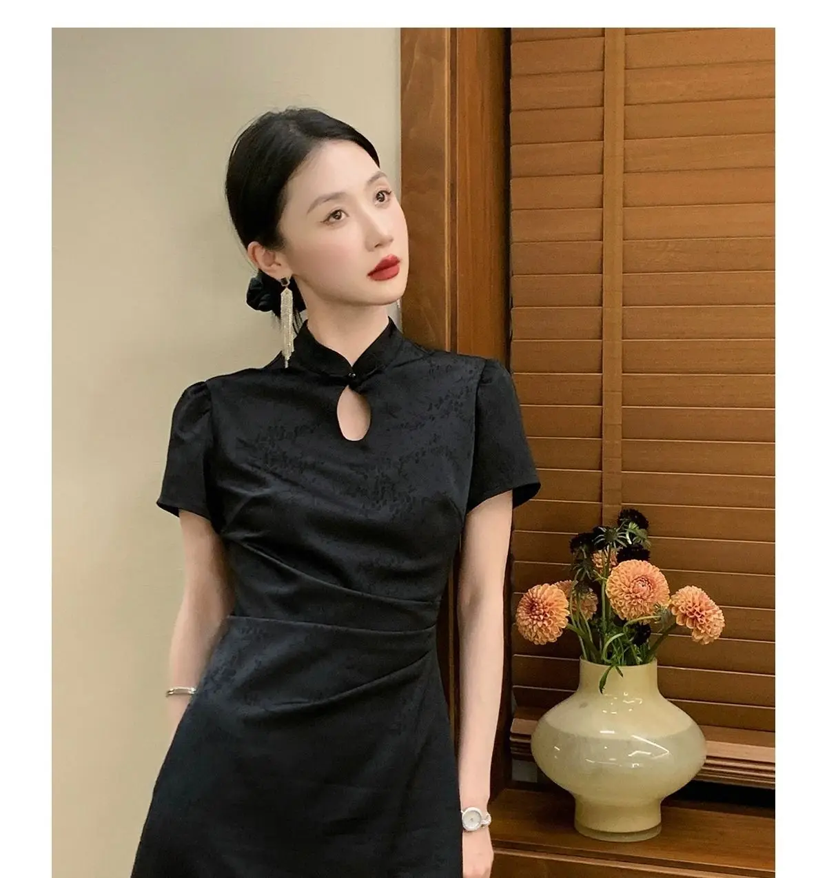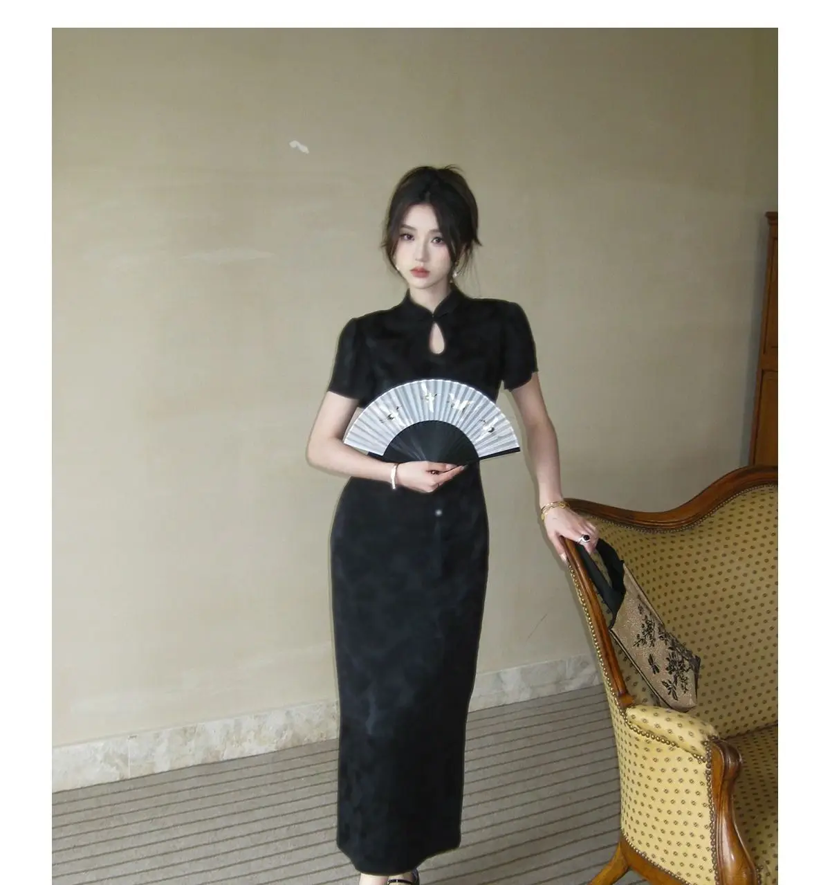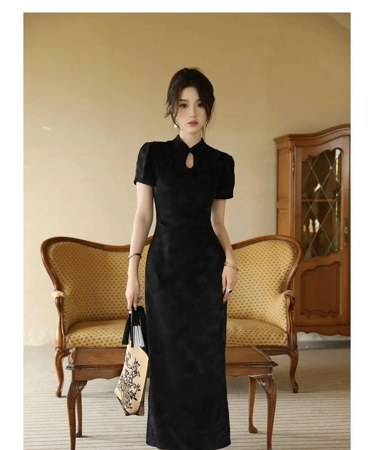 Purpdrank New Chinese Style Waistband Slimming And Improved Qipao Summer Dress New Women Short Sleeve Long Patry Dress