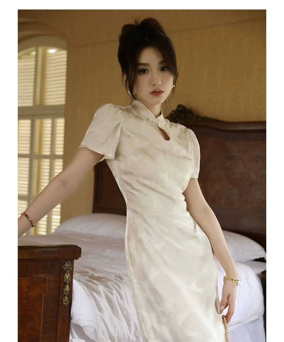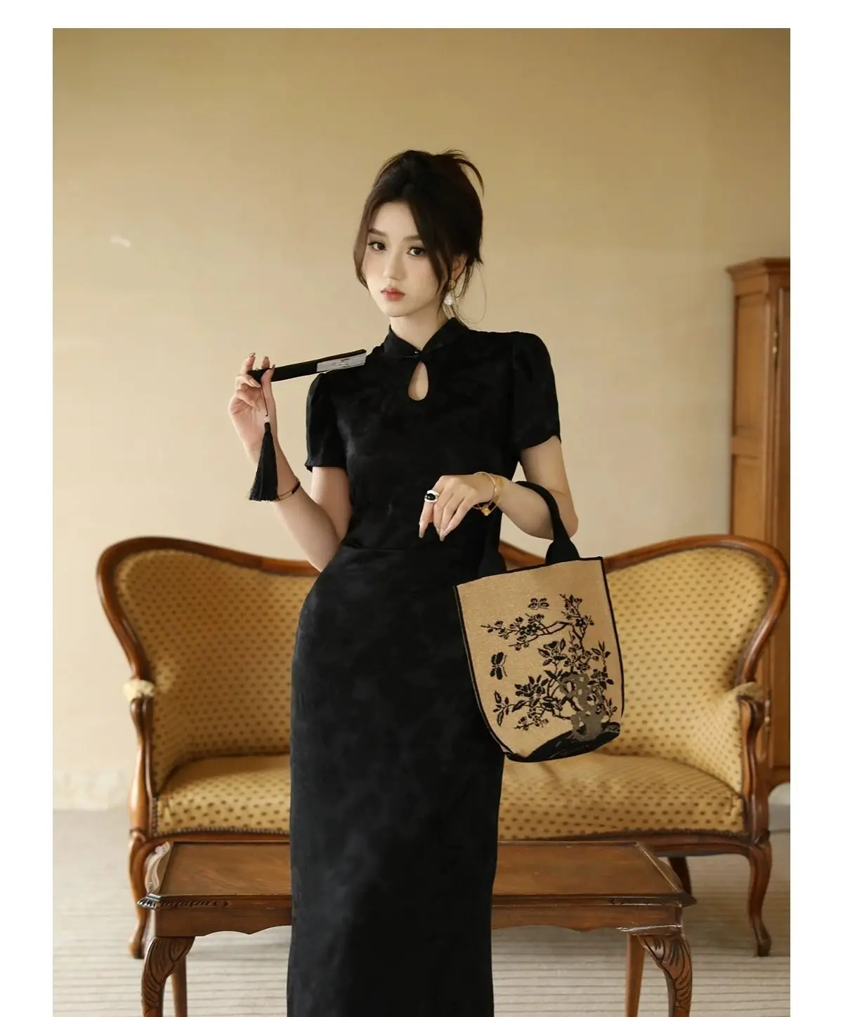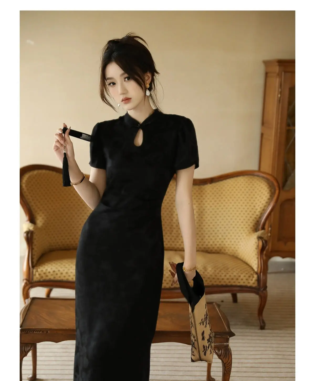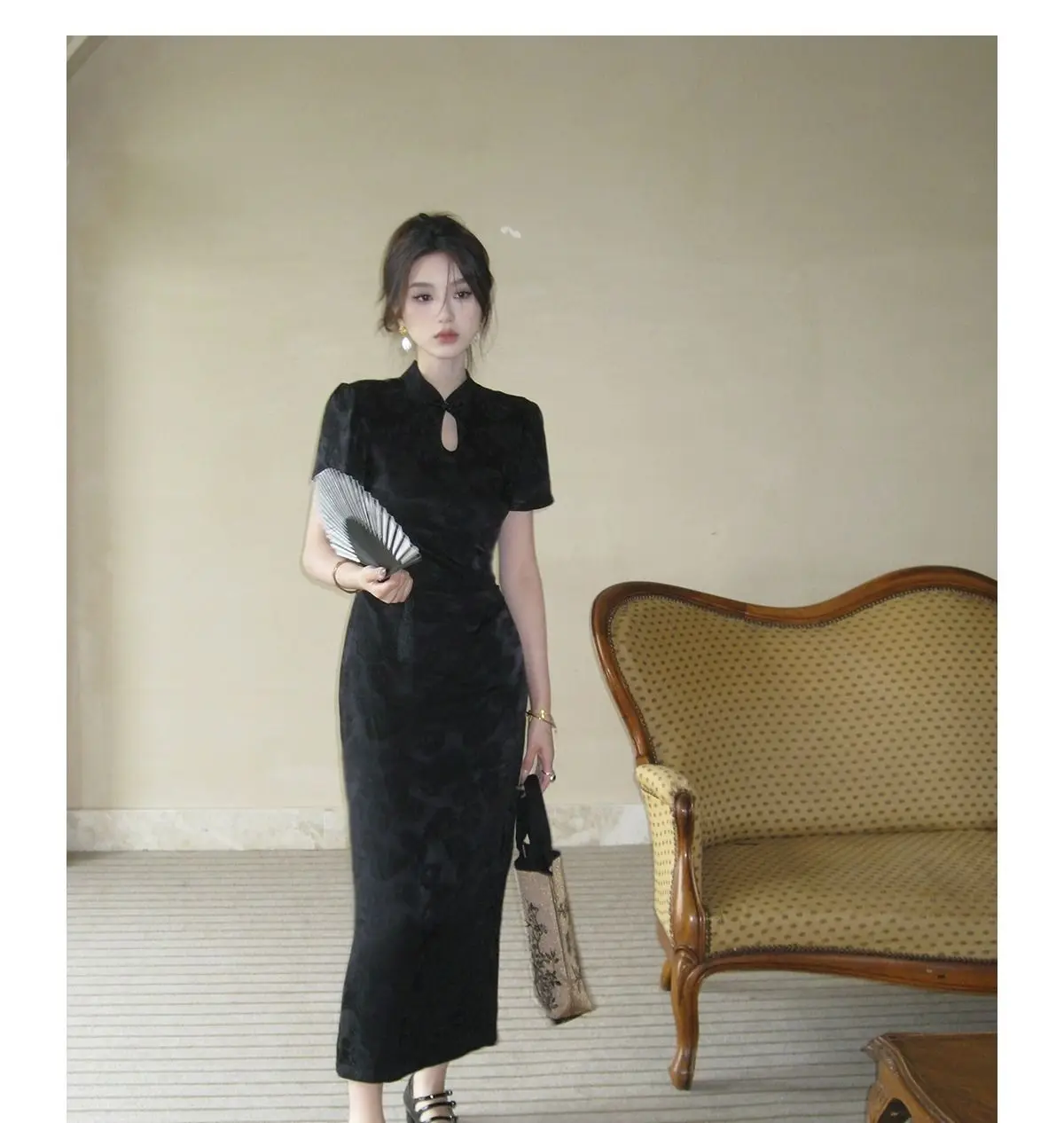 Purpdrank New Chinese Style Waistband Slimming And Improved Qipao Summer Dress New Women Short Sleeve Long Patry Dress