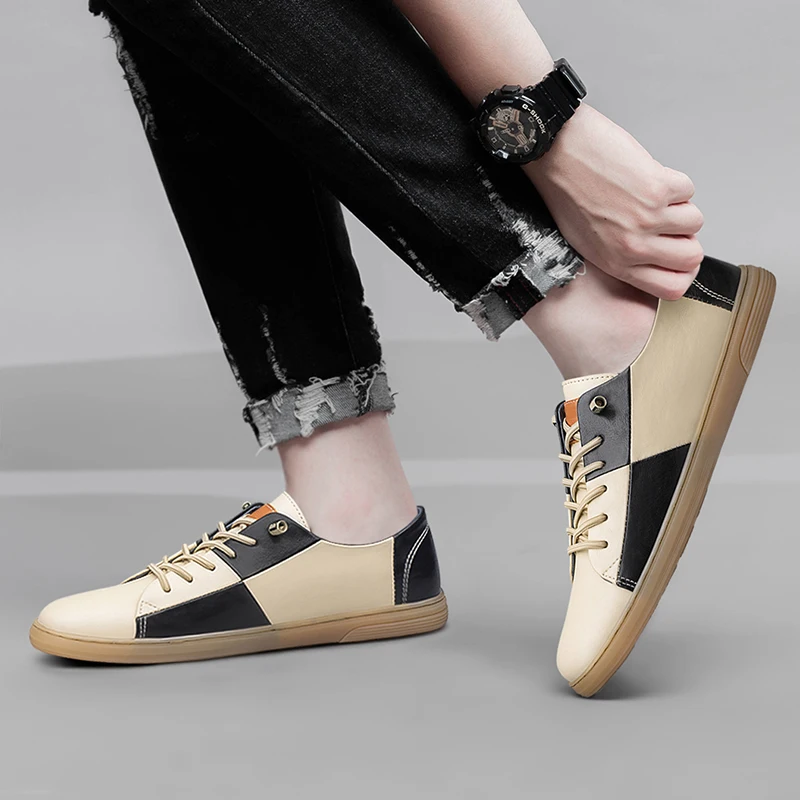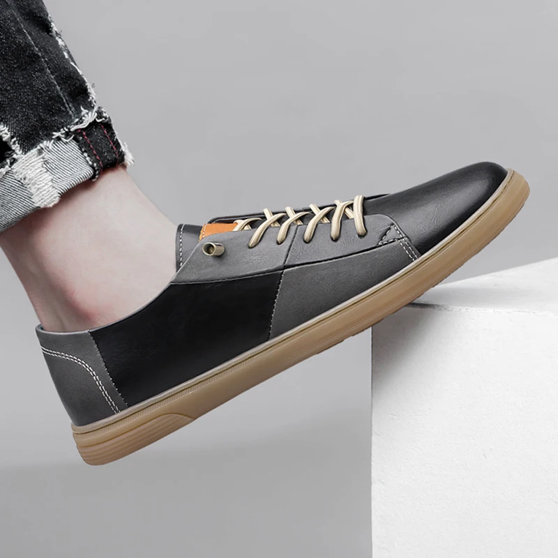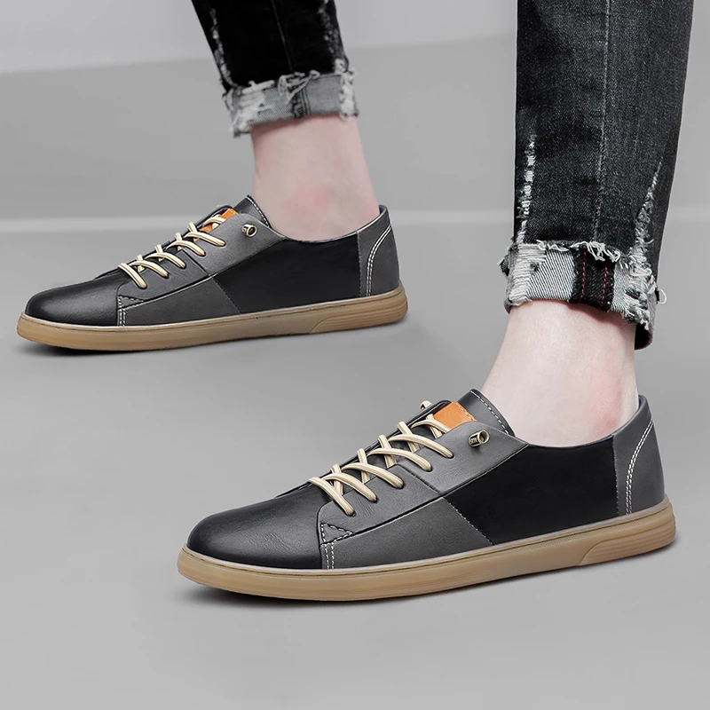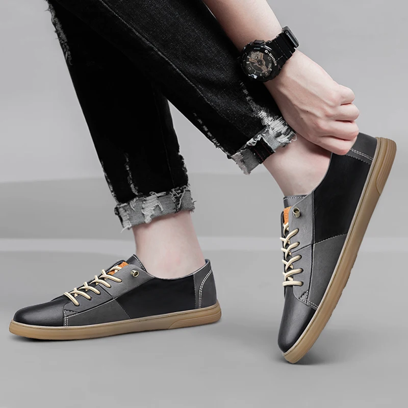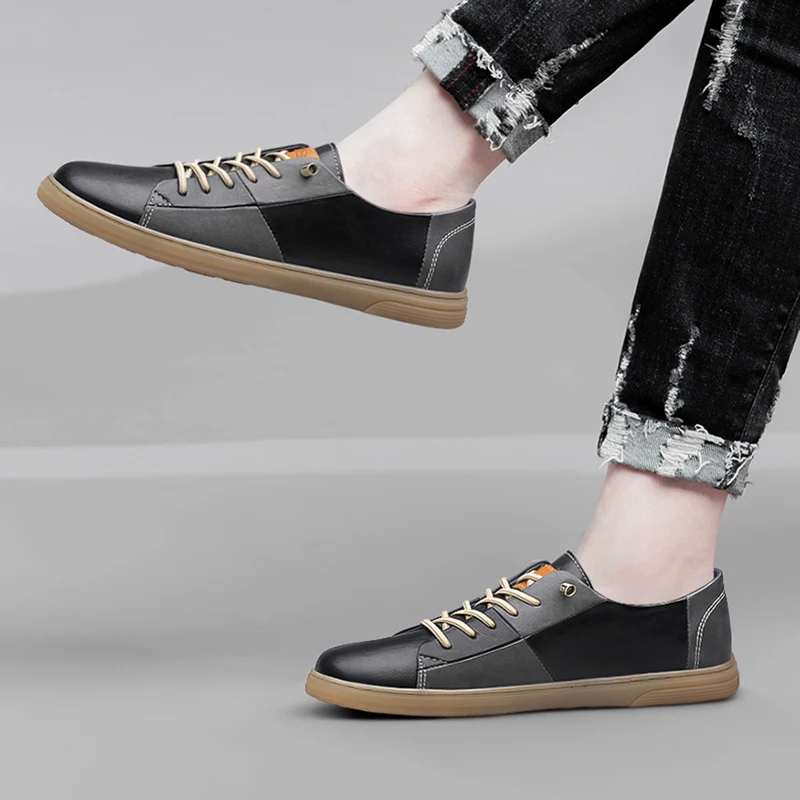 Purpdrank New Genuine Leather Mens Shoes Fashion Male Footwear Black Sneakers Cool Young Mens Casual Shoes Breathable Outdoor Skate Shoes