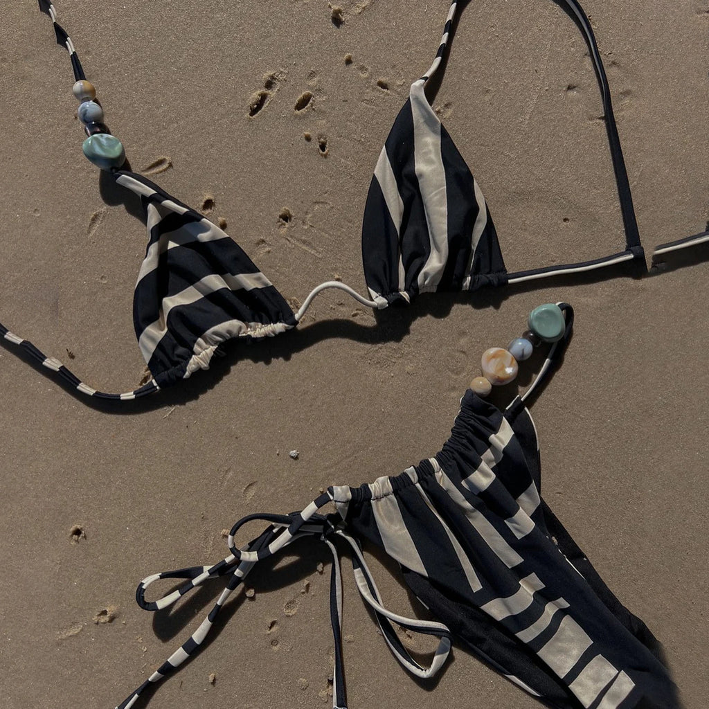 Purpdrank New Halter Bikini Sexy Swimsuit Women Swimwear Triangle Biquini Stripe Swim Suit Button Bodysuit Push Up Bathingsuit Beachwear