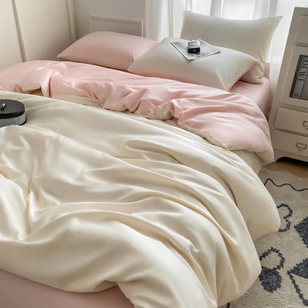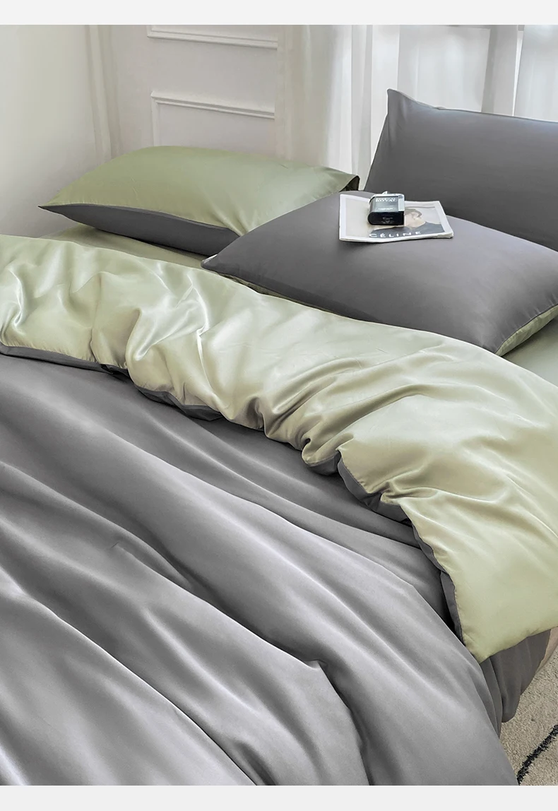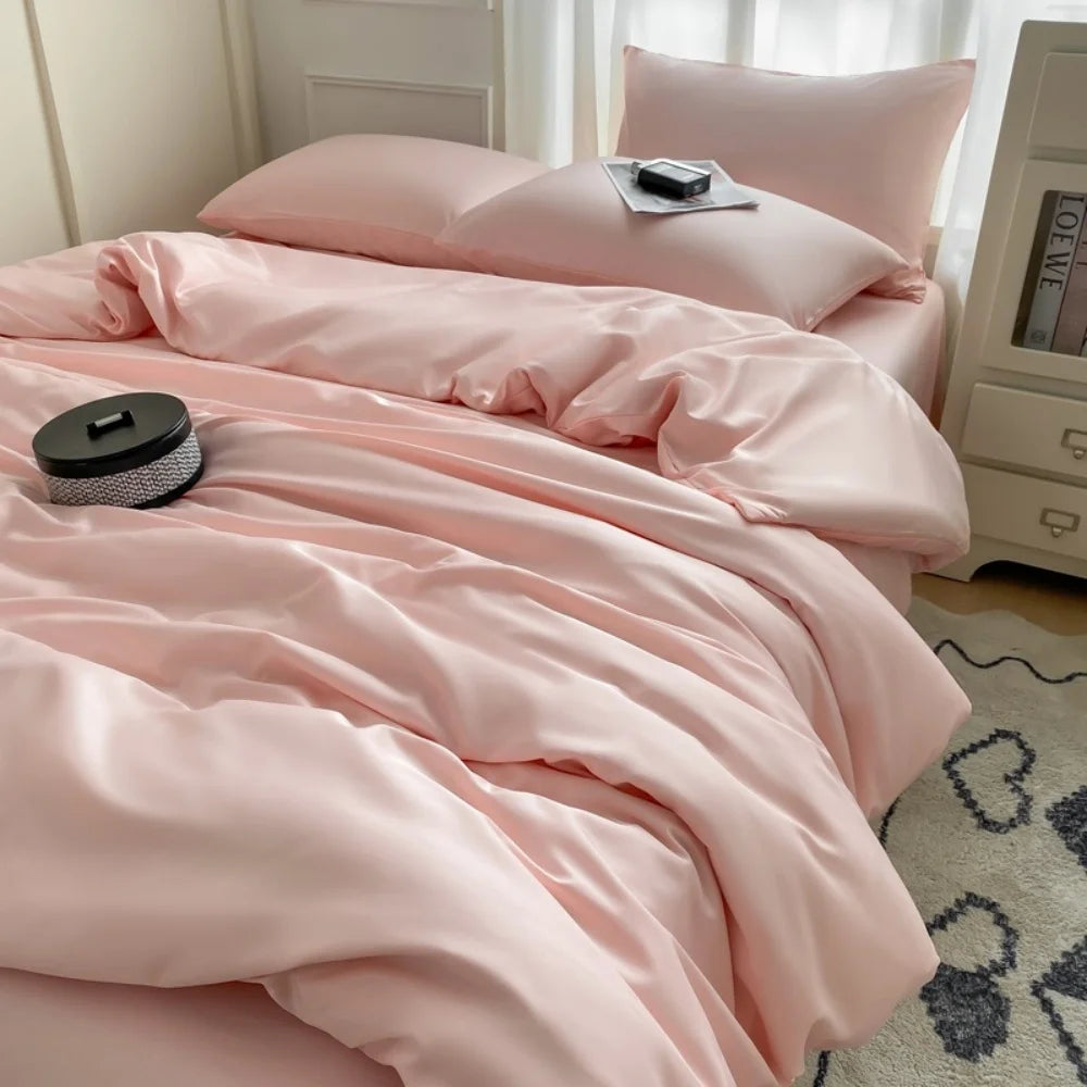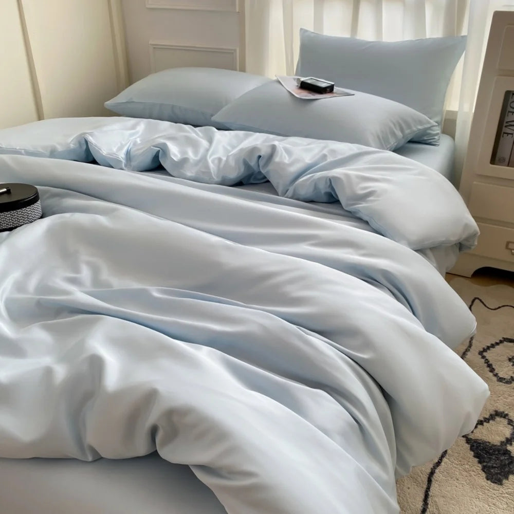 Purpdrank Nordic Summer Washed Ice Silk Bedding Set with Sheet Duvet Cover Pillowcase Single Couple Bedsheet King Queen Double Twin Size