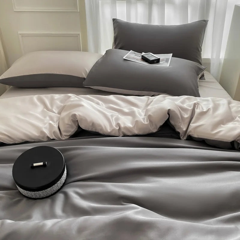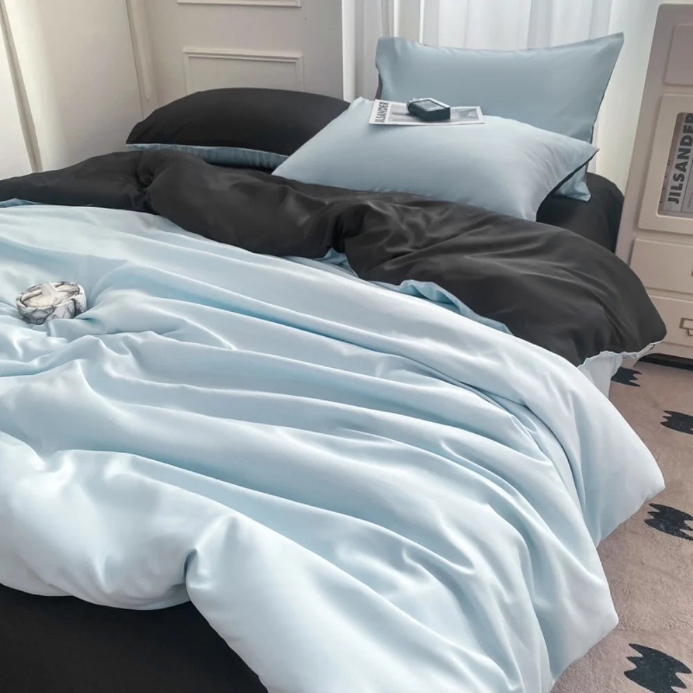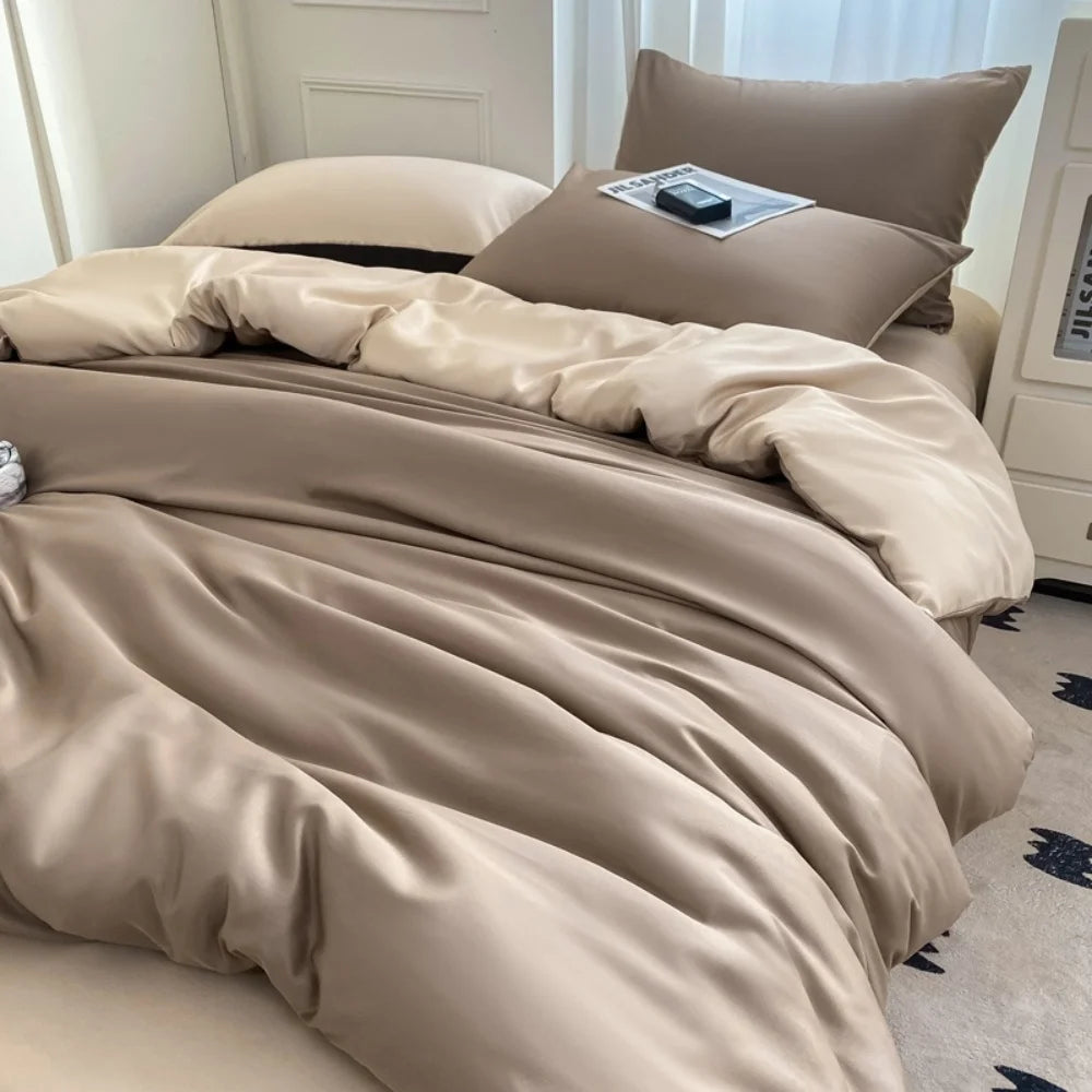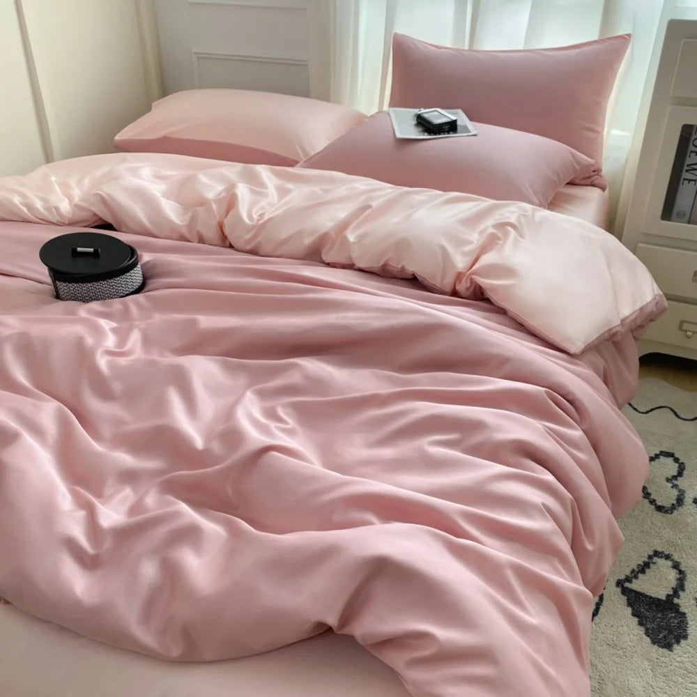 Purpdrank Nordic Summer Washed Ice Silk Bedding Set with Sheet Duvet Cover Pillowcase Single Couple Bedsheet King Queen Double Twin Size